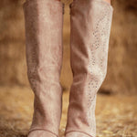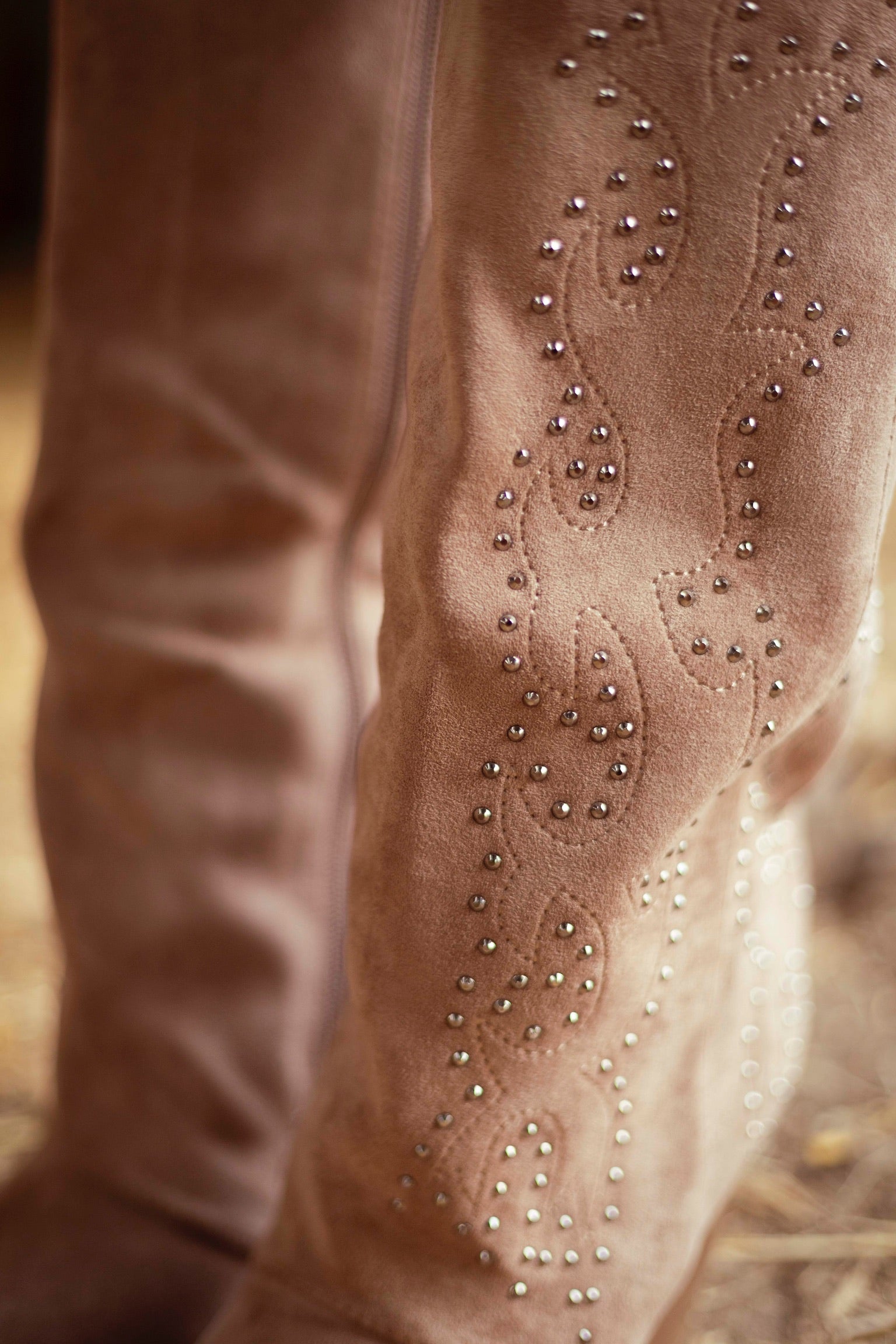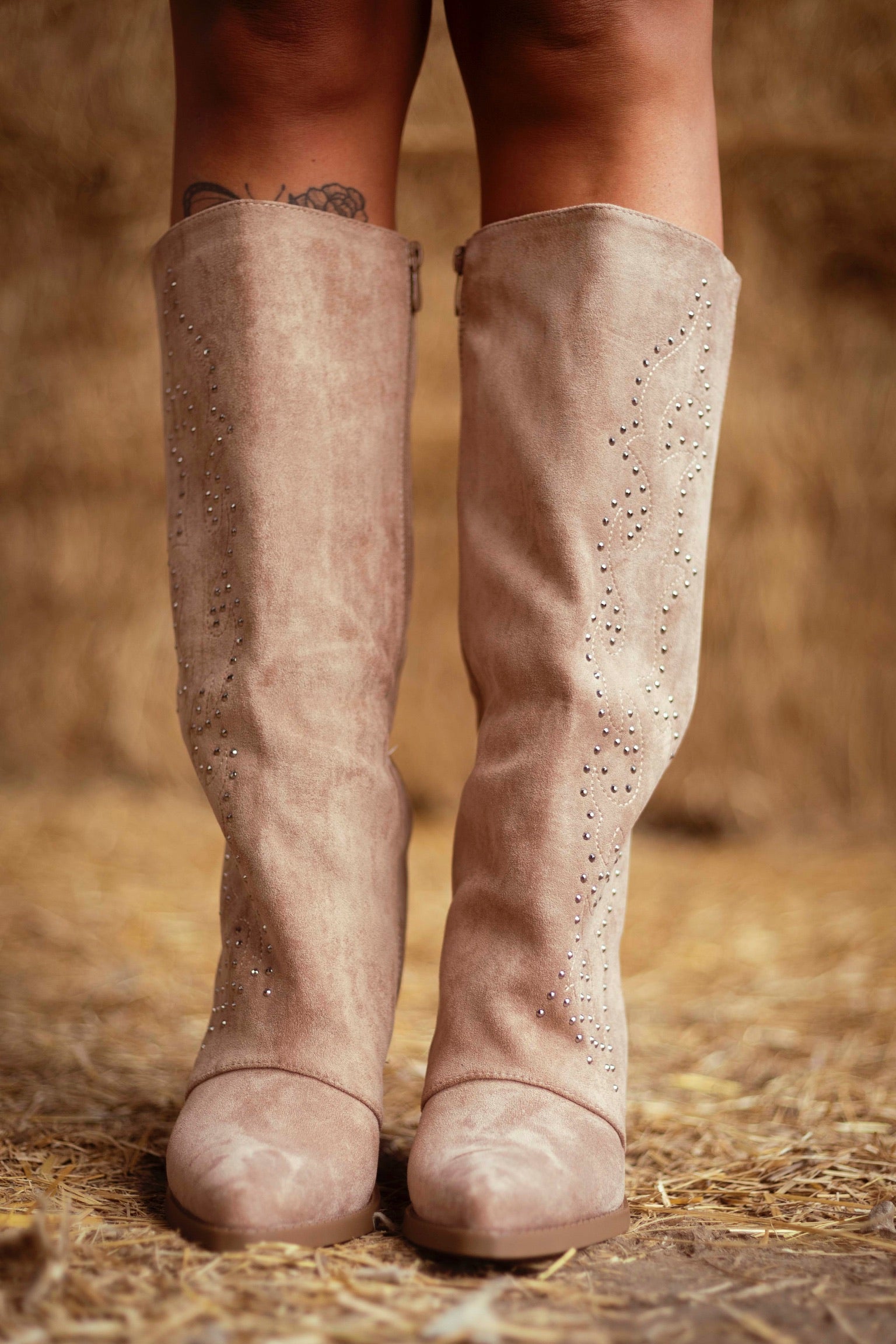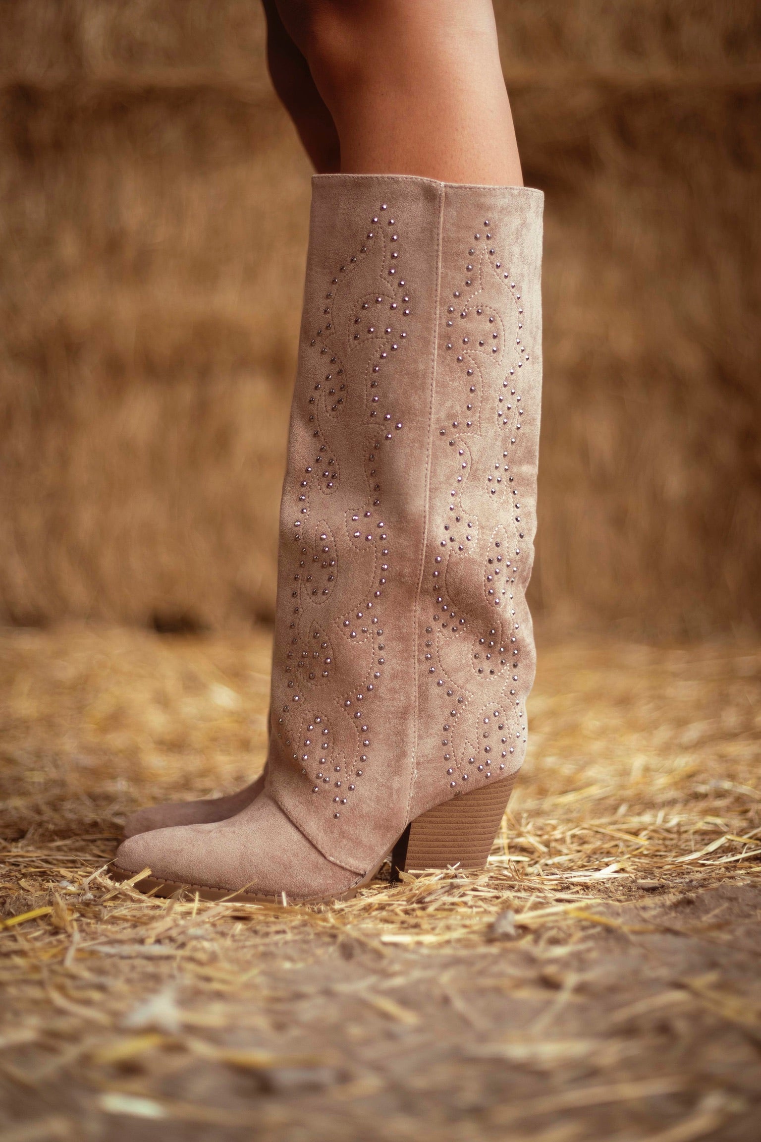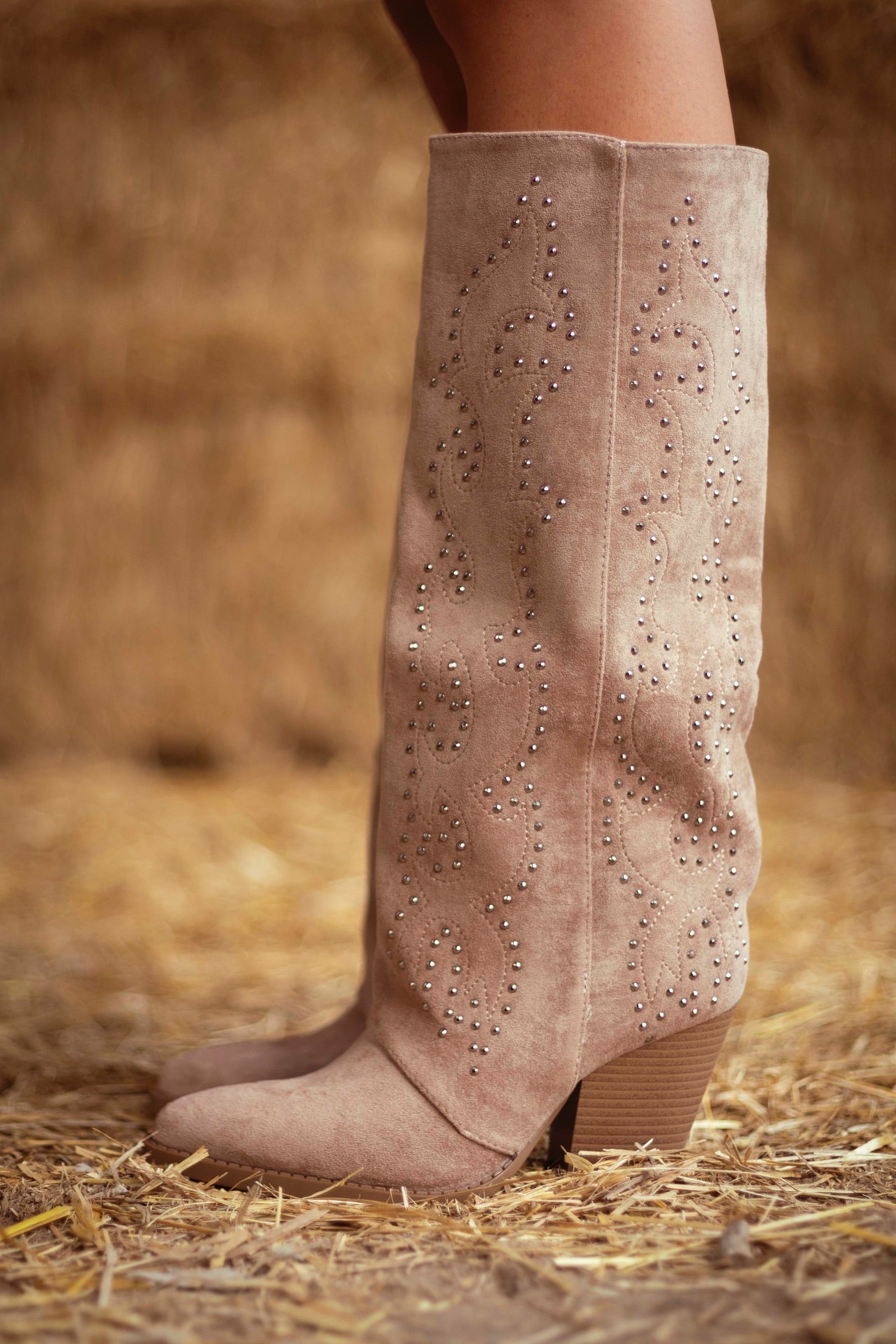 PRISCILLA BEIGE STUDS COWBOY BOOTS