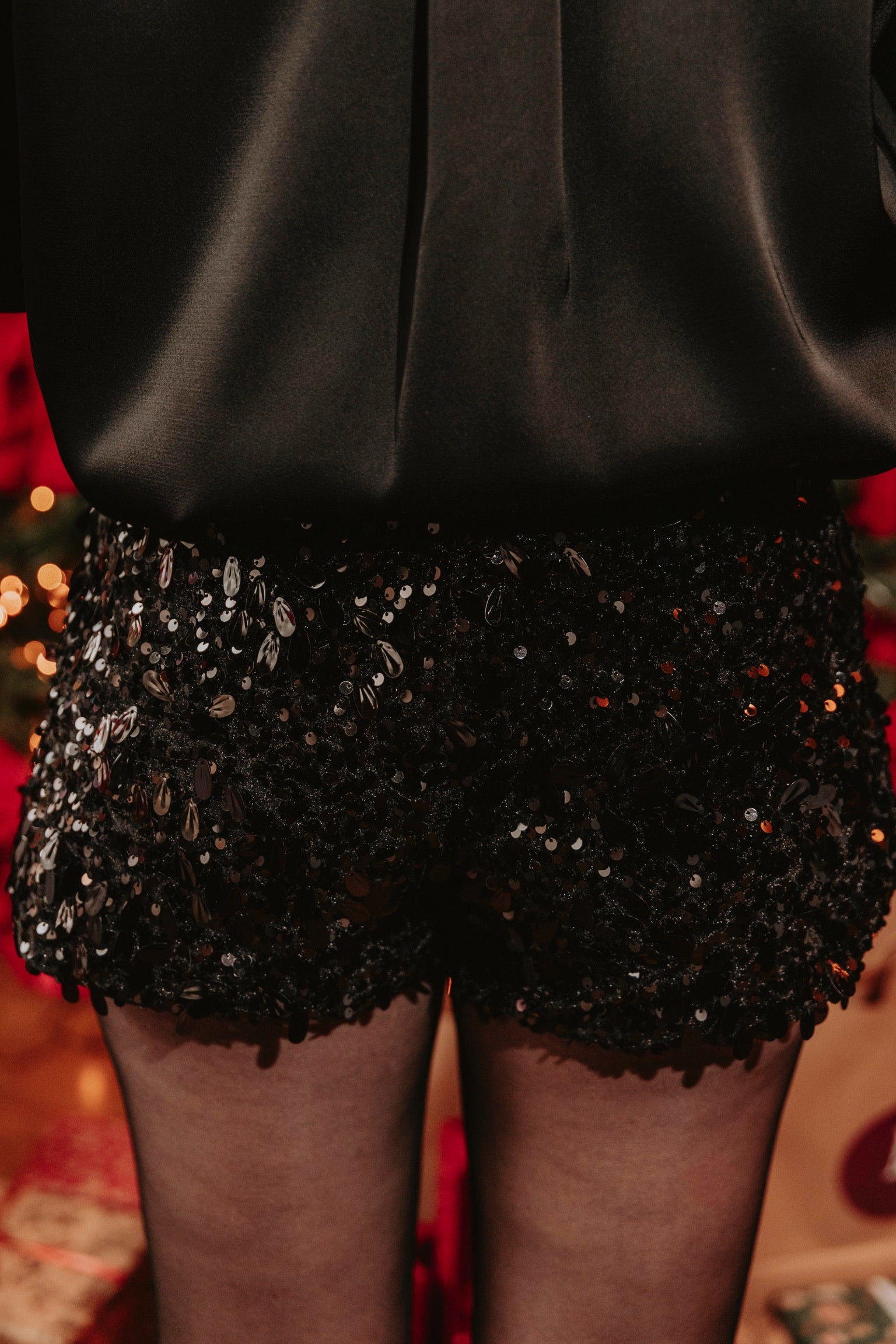 Een korte, glinsterende creatie die direct de feeststemming verhoogt. De sequins vangen het licht bij elke beweging en maken iedere stap sprankelend en opvallend. Perfect om vol energie en plezier de feestdagen te vieren.