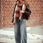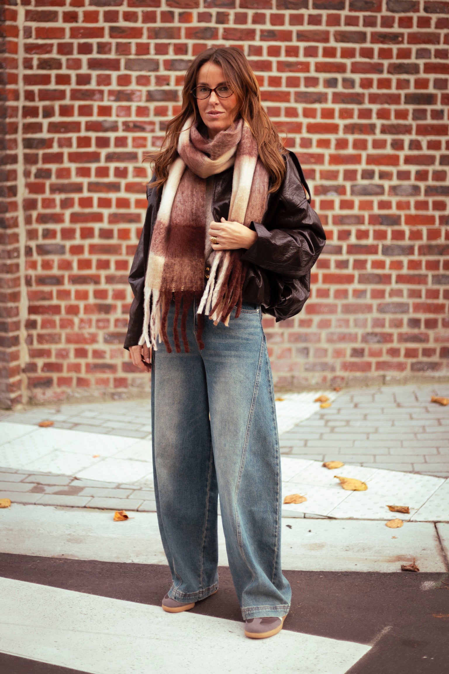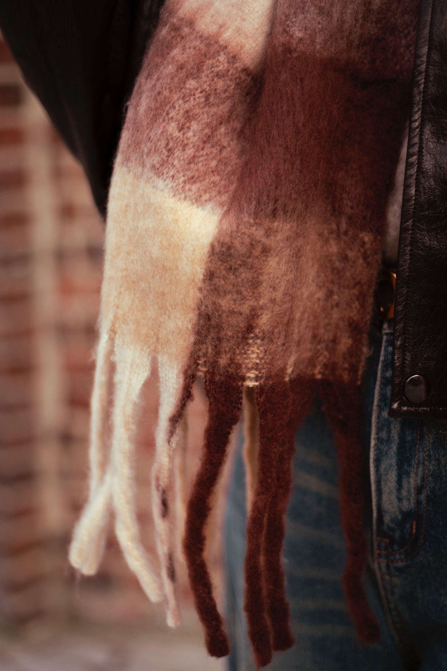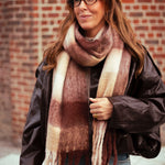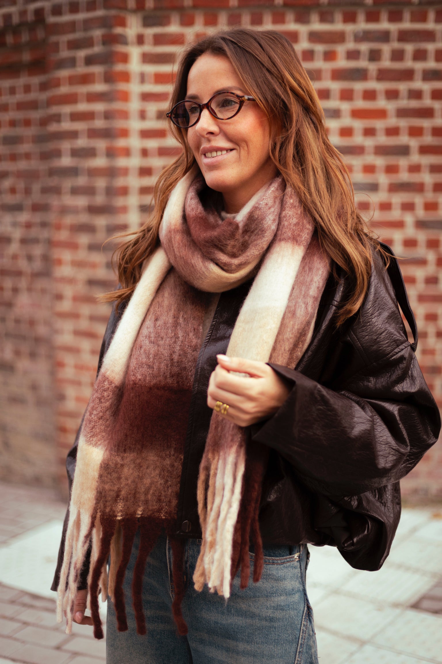 Zachte ruiten in warme bruin- en beigetinten die moeiteloos opgaan in het stadsleven. Ideaal voor frisse herfstdagen, als een knusse omhelzing tijdens een wandeling door bladeren en latte-geuren.