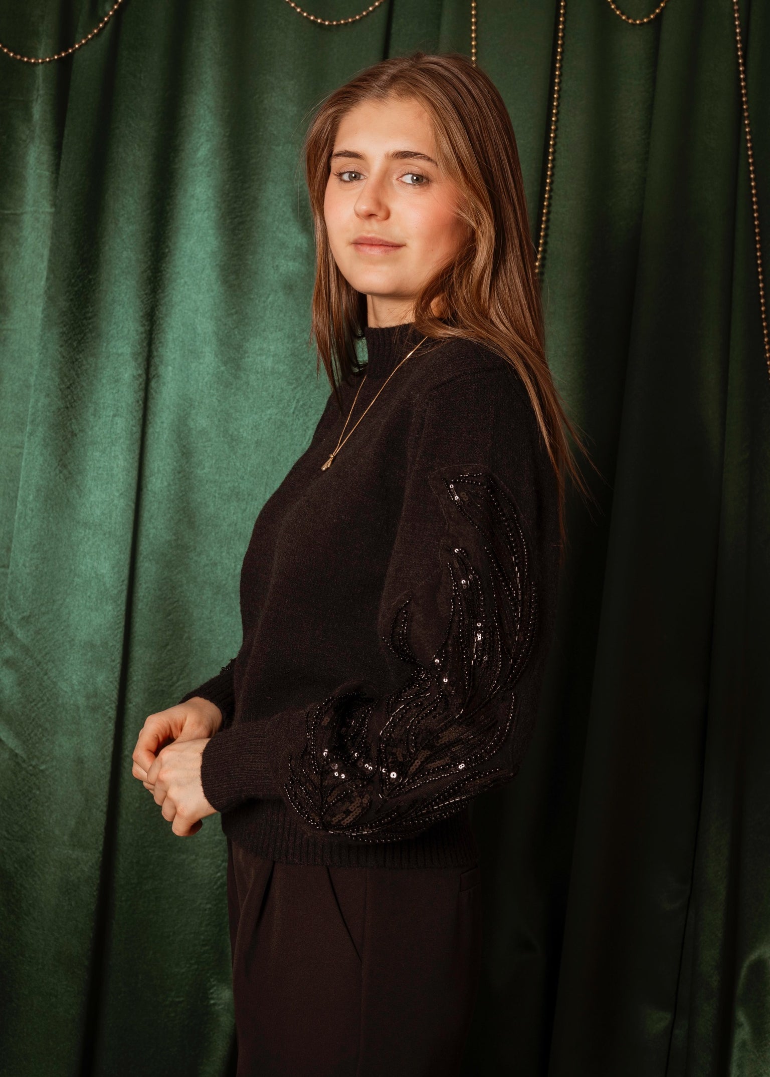 CHEERS & CUDDLES BROWN KNIT SWEATER