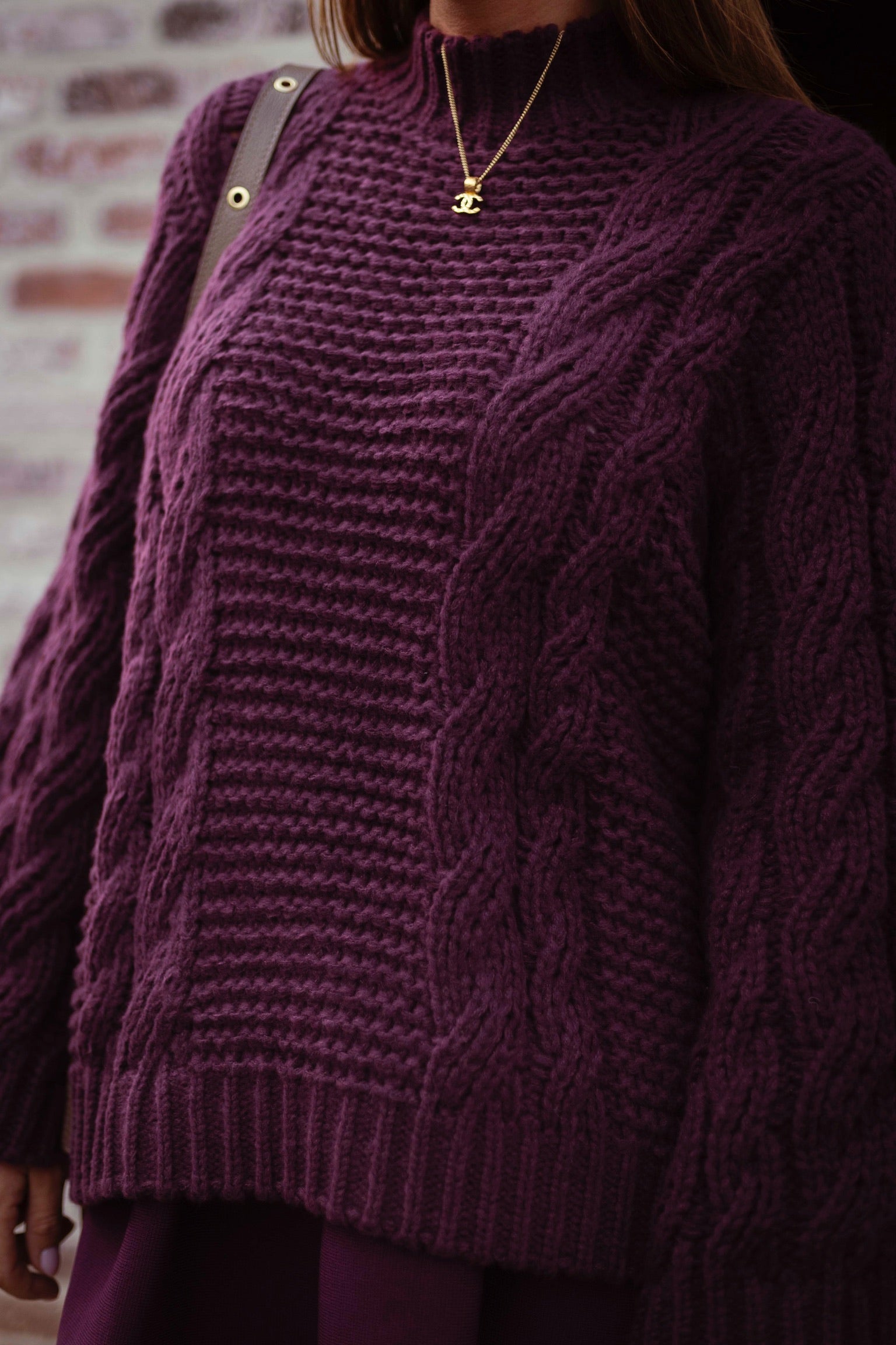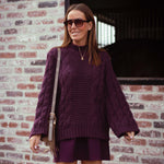 AVERY BURGUNDY CABLE KNIT SWEATER