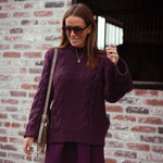 Een warme, burgundy kabeltrui die warmte en textuur perfect combineert voor het herfstseizoen. De diepe kleur en klassieke kabelpatronen maken het een tijdloos stuk dat moeiteloos stijl en comfort toevoegt aan elke look. Ideaal om casual te dragen of juist wat netter te stylen met een blouse eronder.