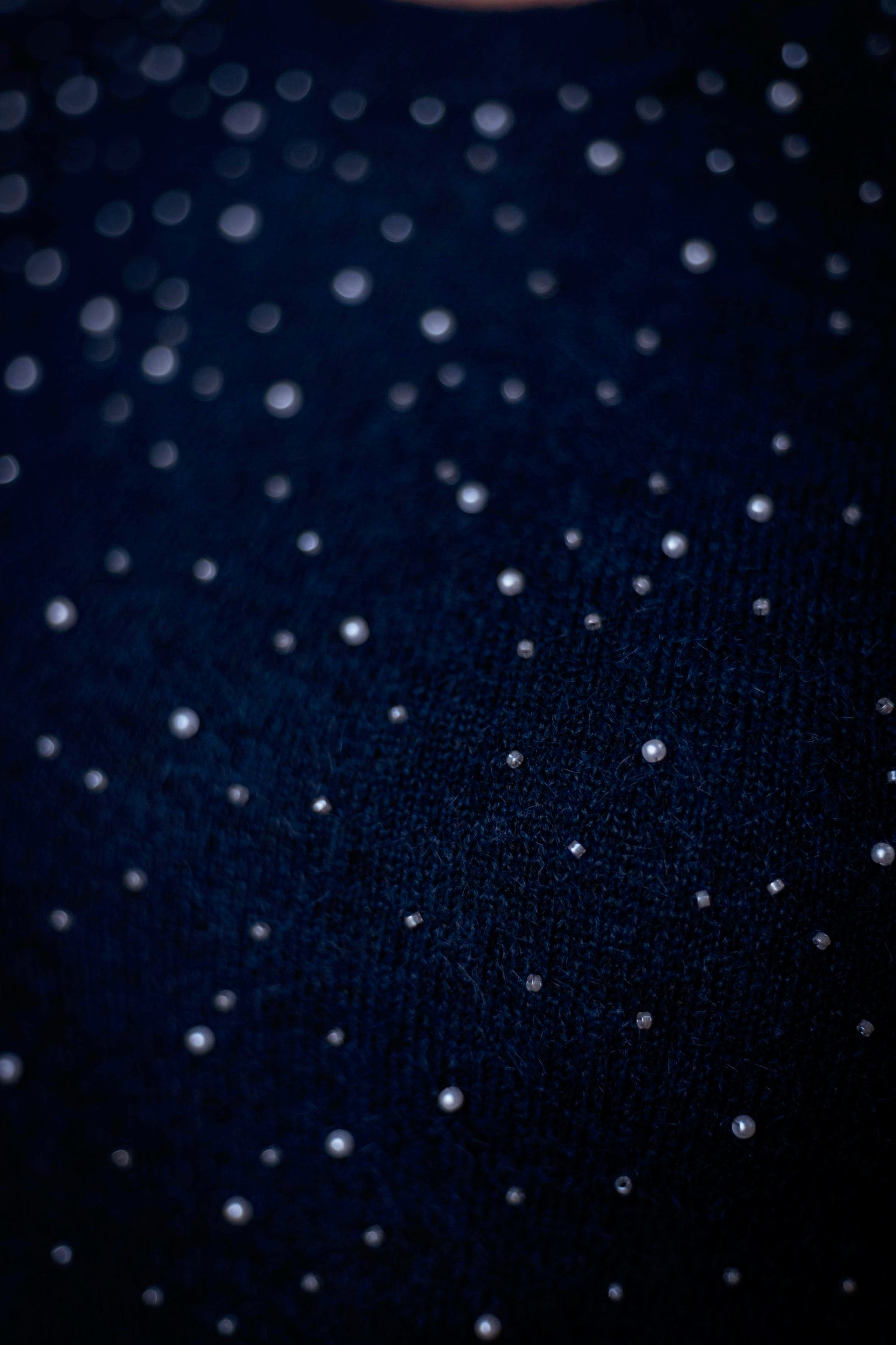De parelknopen geven dit donkerblauwe stuk net dat beetje extra zonder te overdrijven. Ideaal voor het tussenseizoen: stijlvol, makkelijk te combineren en perfect voor laagjes op frisse herfstdagen.