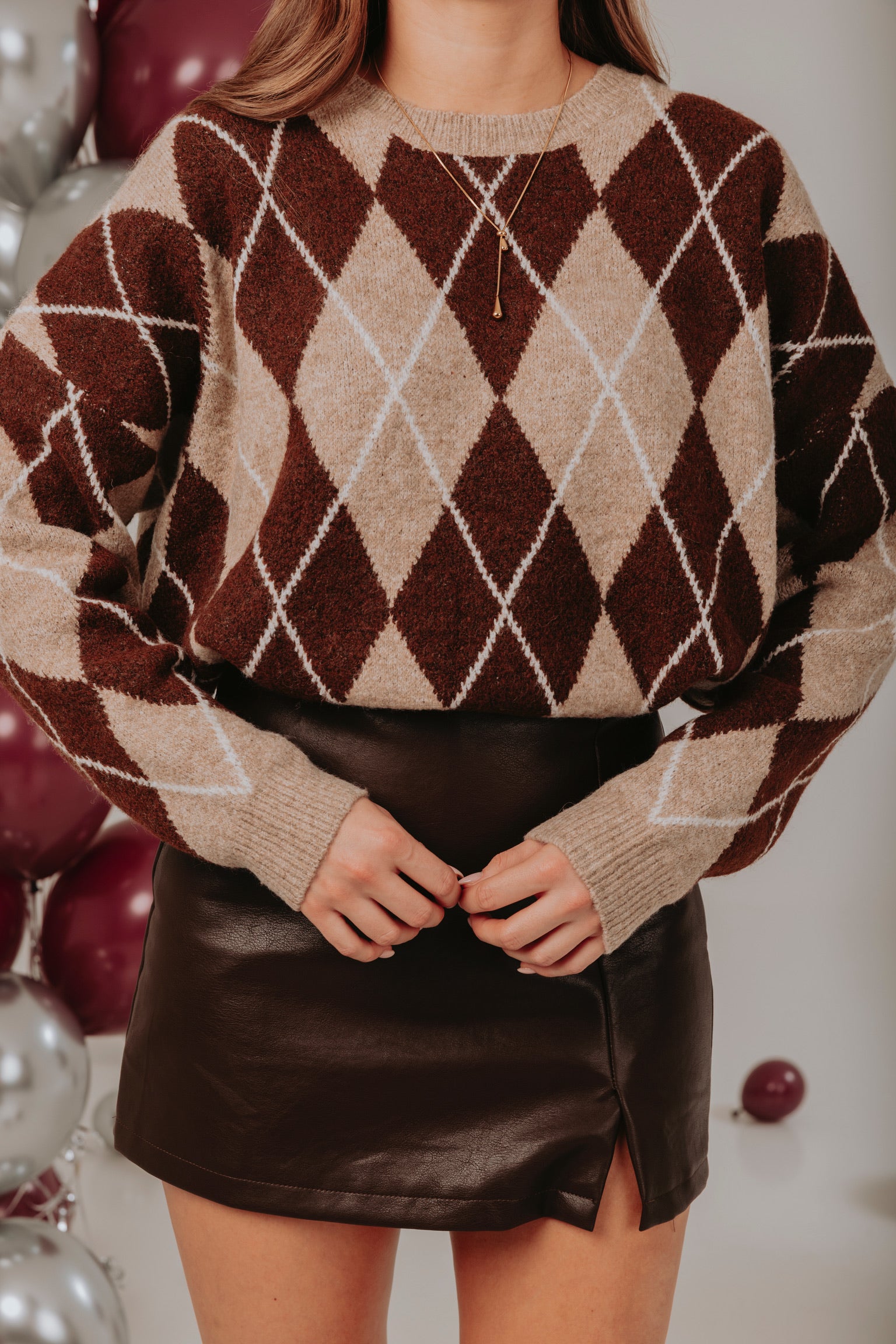 CUDDLE UP BEIGE/BROWN ARGYLE SWEATER – Boetiek Pure Sense
