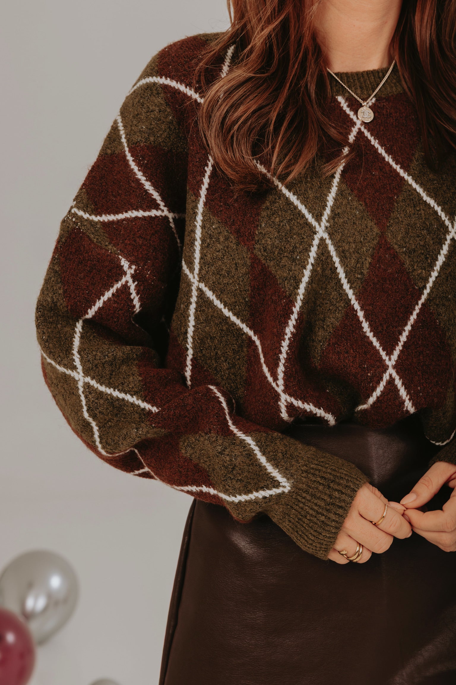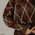 CUDDLE UP KHAKI/BROWN ARGYLE SWEATER