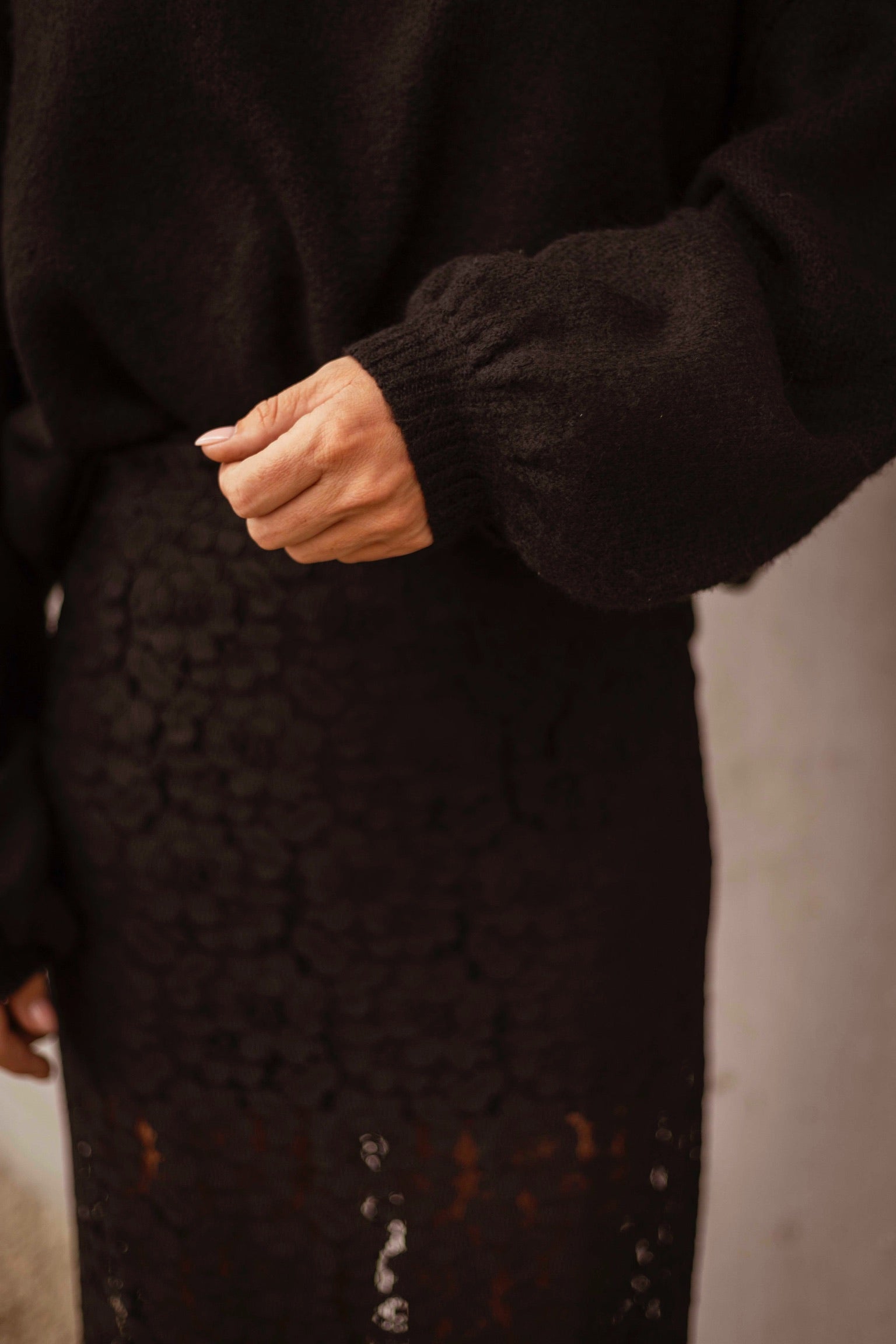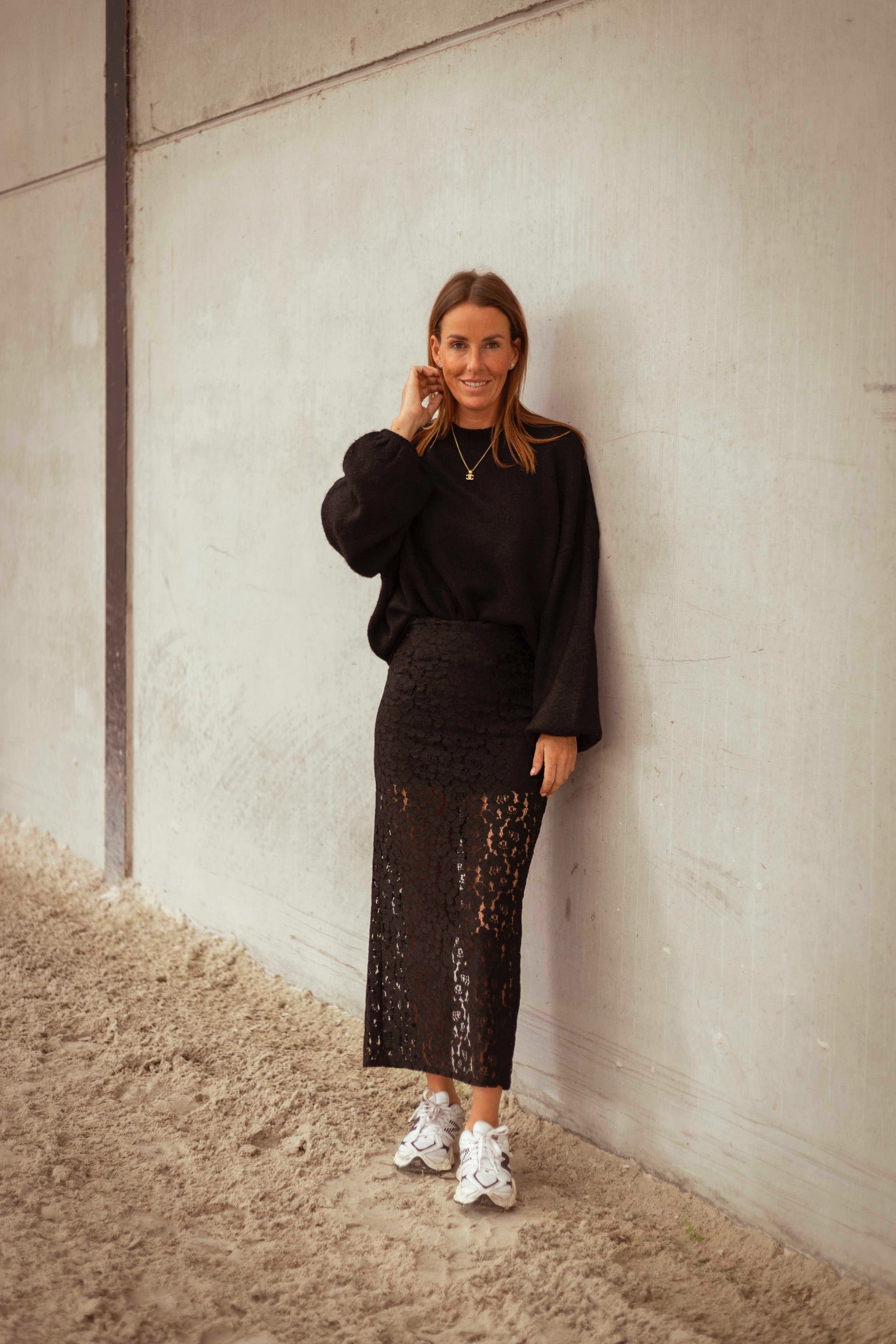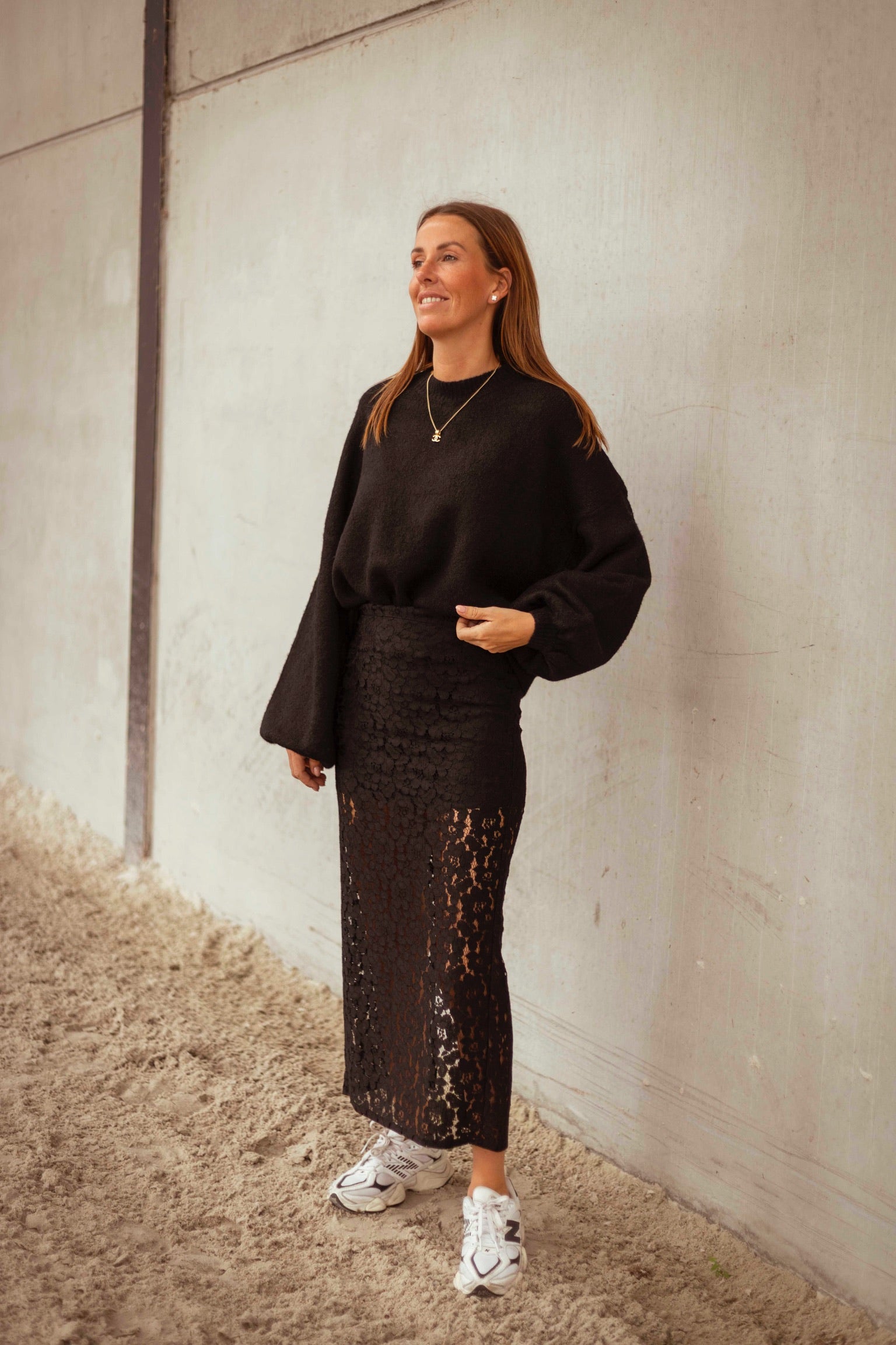 Deze trui heeft een comfortabele, losse pasvorm met iets wijdere mouwen voor extra bewegingsvrijheid. Het zachte breisel voelt warm aan en past perfect bij koelere herfstdagen. Een tijdloze basic met een subtiel speels detail.