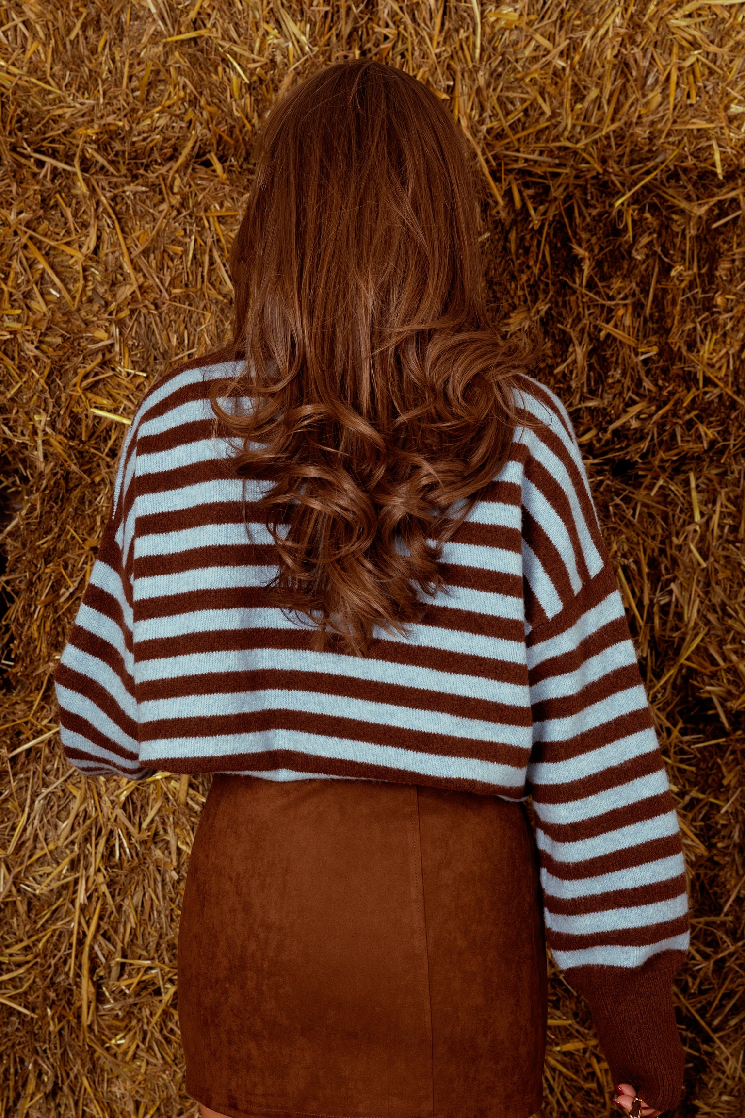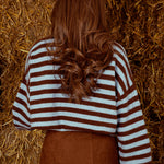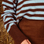 EMALINE BROWN/LIGHT BLUE STRIPED SWEATER