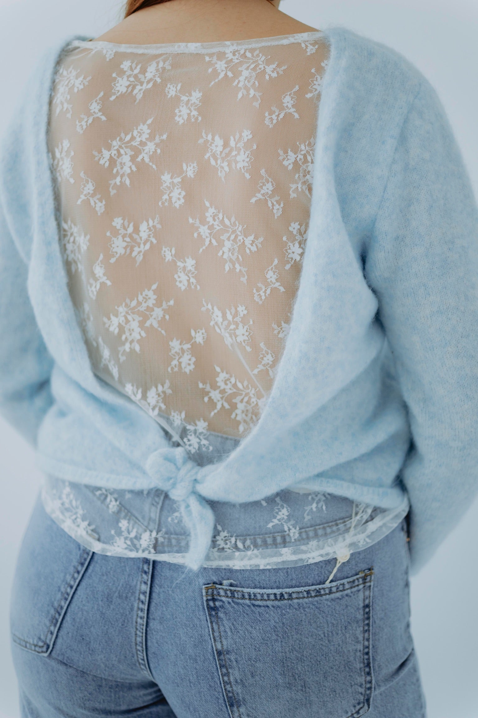 FRANCESCA SOFT BLUE LACE KNIT SWEATER