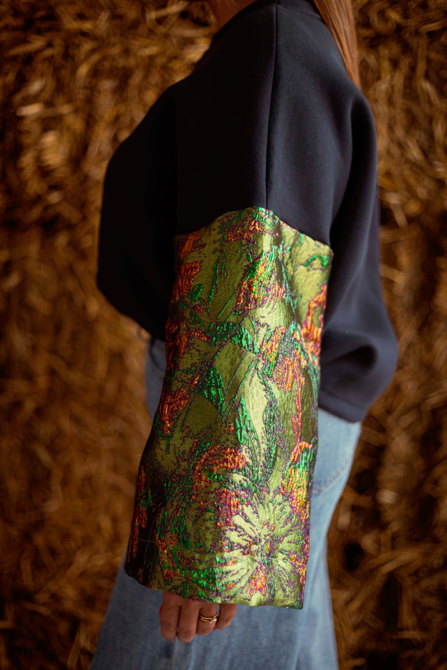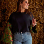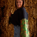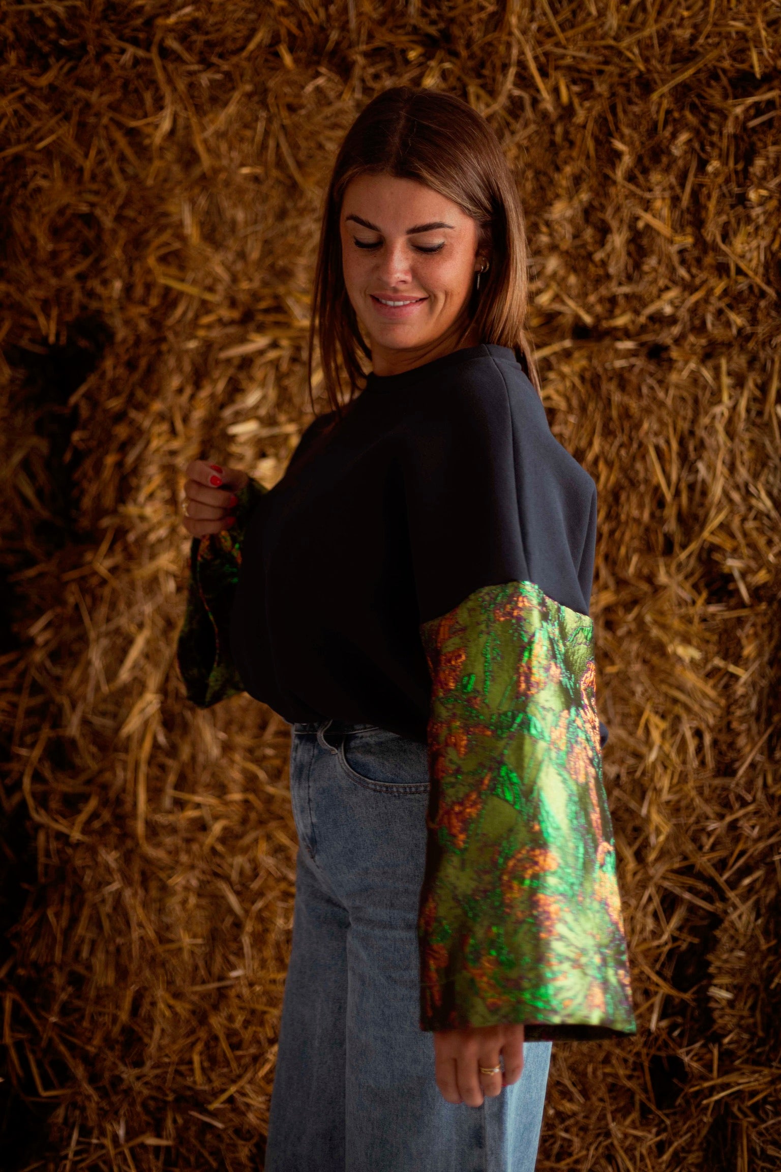 FREYA DARK BLUE SWEATER / OLIVE GREEN SLEEVES