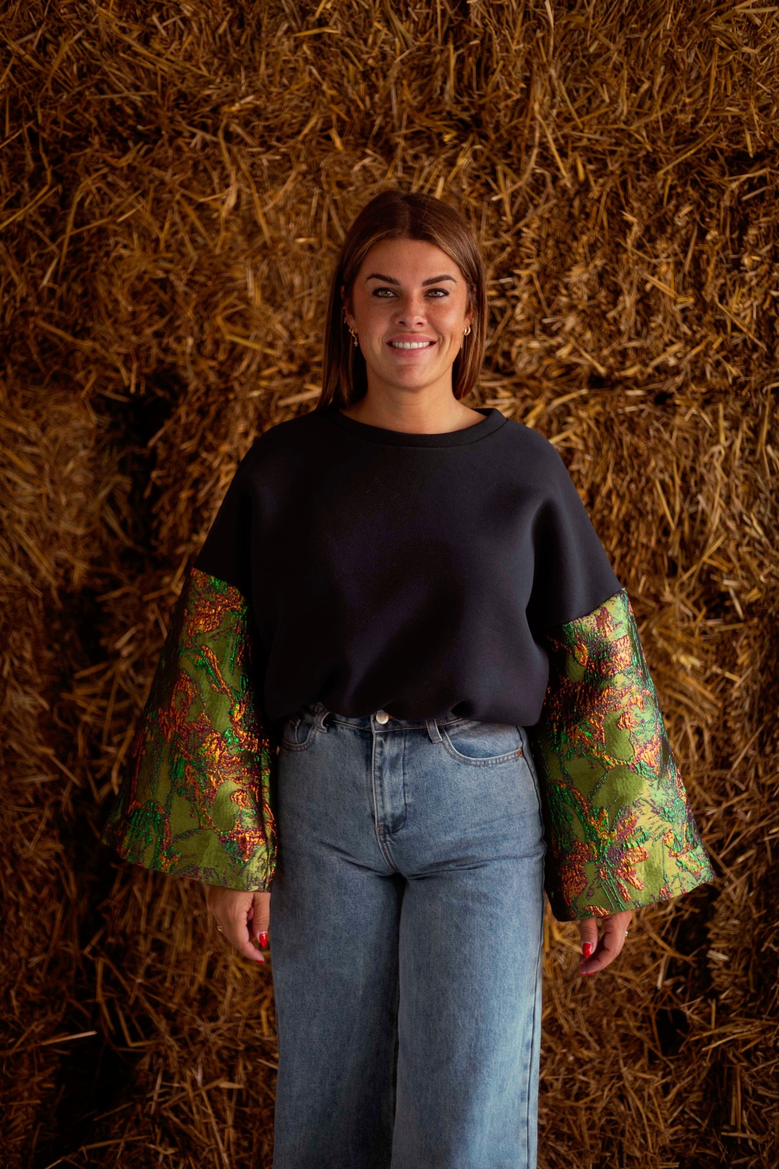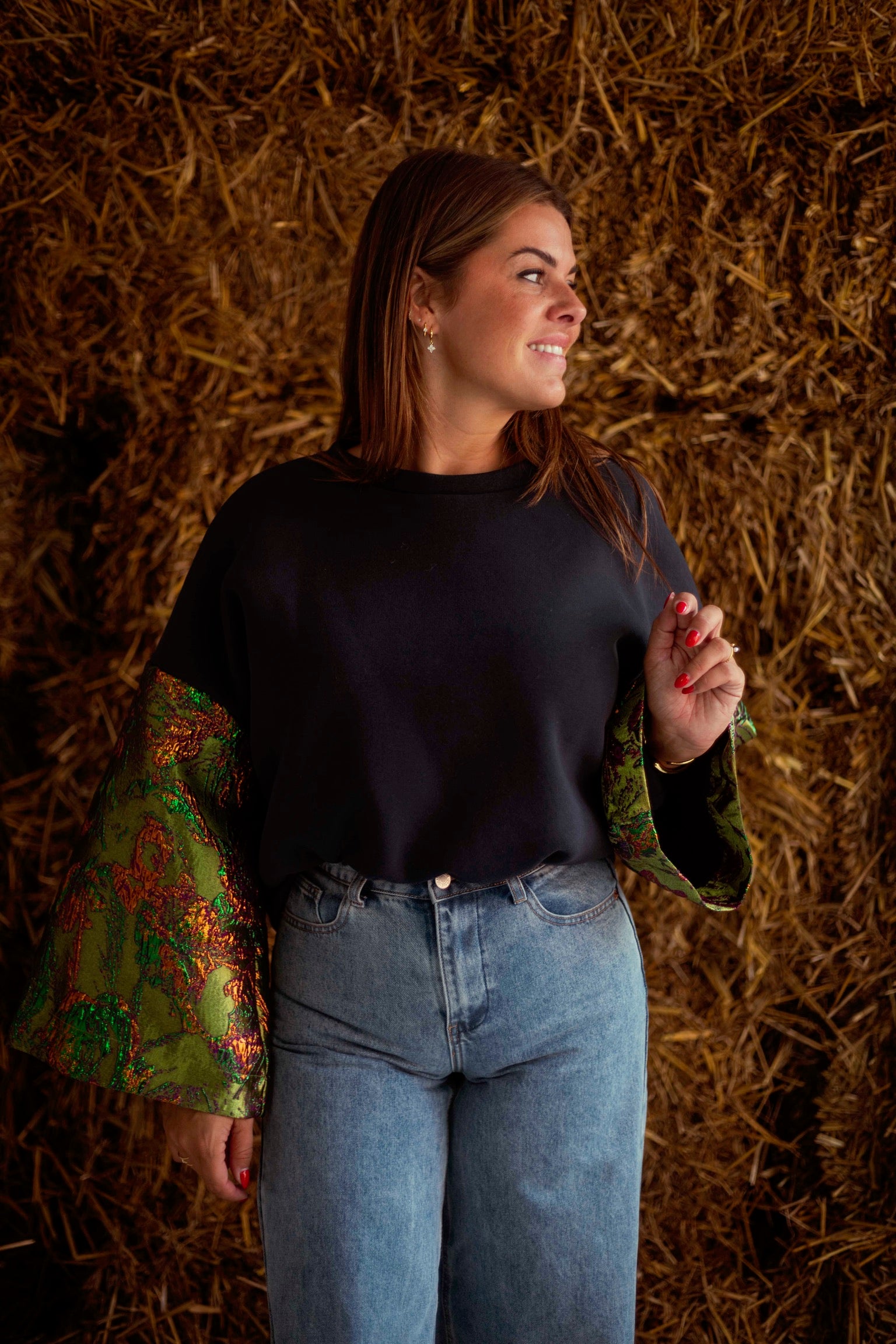 Een zachte trui met opvallend gekleurde, wijdere mouwen die net dat beetje extra geven aan een eenvoudige outfit. De losse pasvorm zorgt voor comfort, terwijl de mouwen zorgen voor karakter zonder te overdrijven. Perfect voor grauwe herfstdagen waar je look wel wat kleur kan gebruiken.