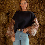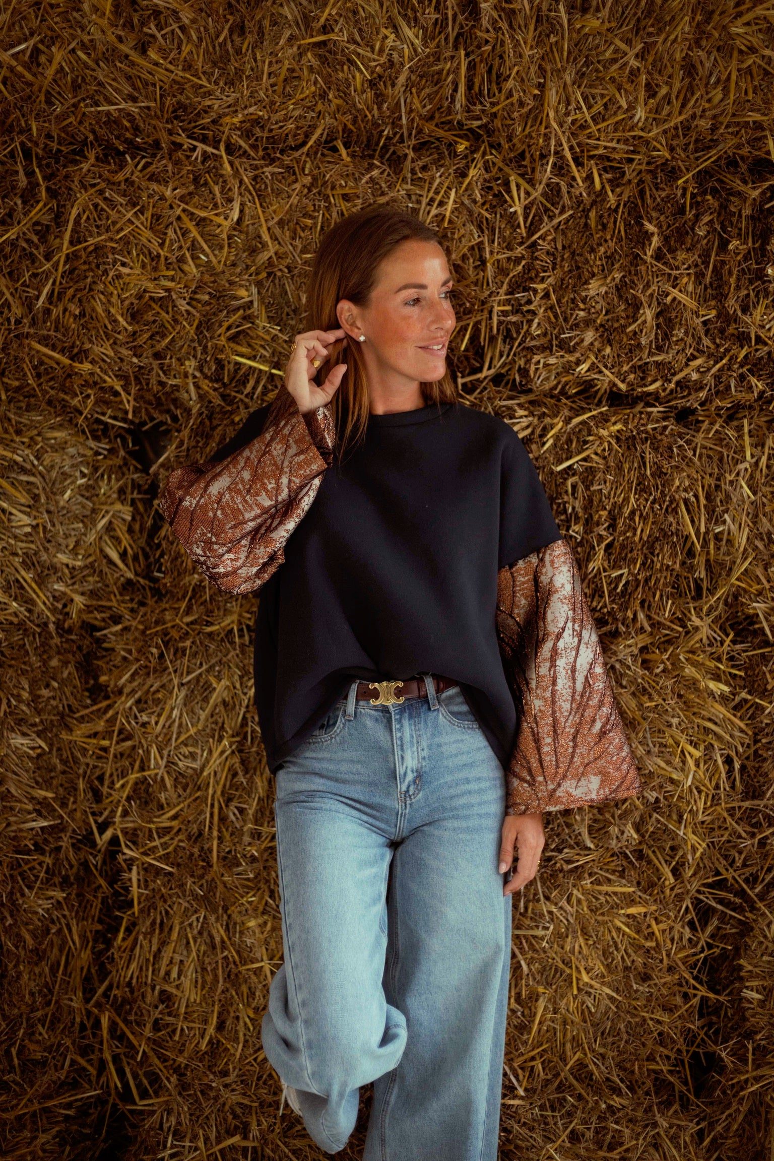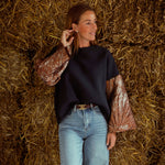 FREYA DARK BLUE SWEATER / BROWN SLEEVES