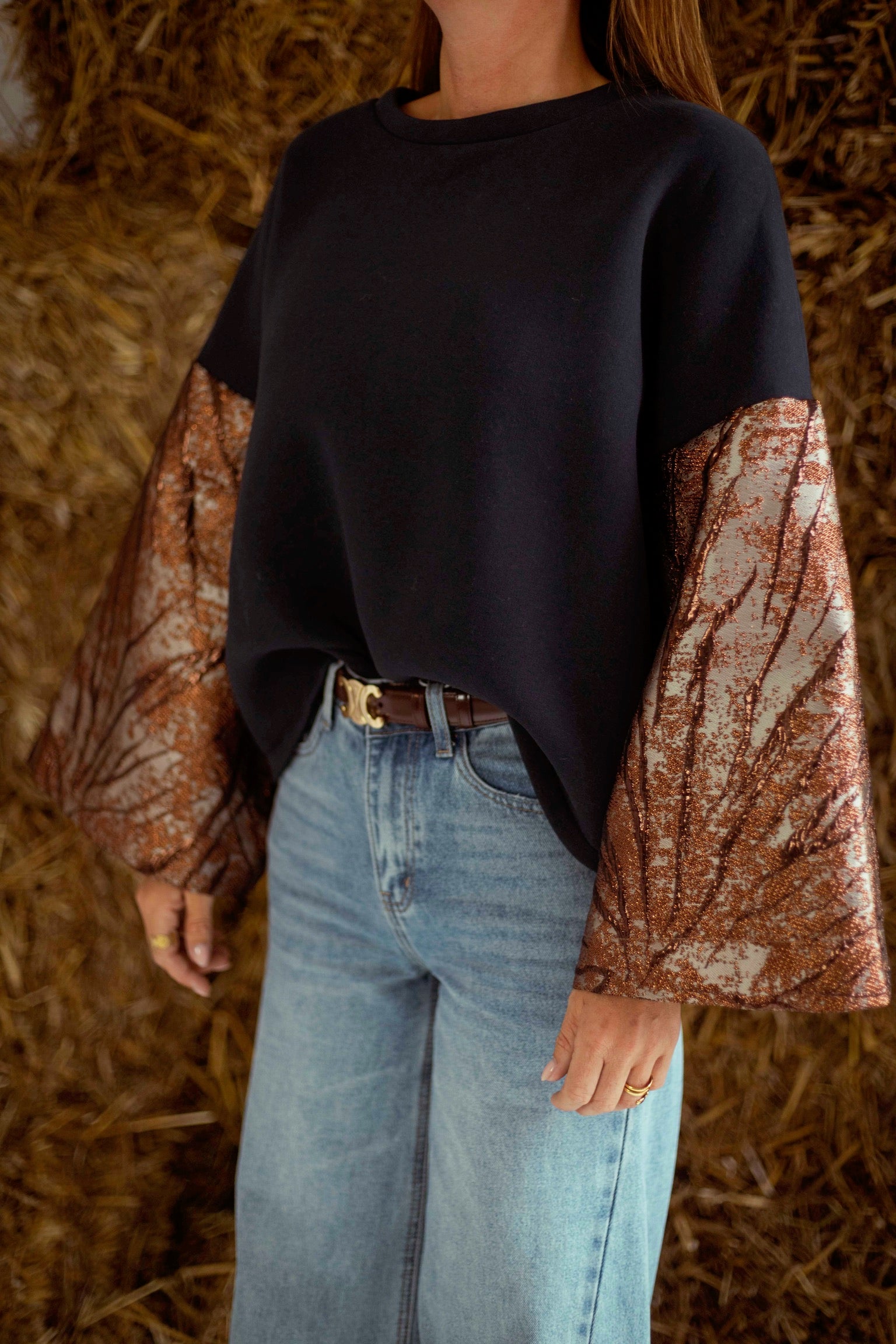 Een zachte trui met opvallend gekleurde, wijdere mouwen die net dat beetje extra geven aan een eenvoudige outfit. De losse pasvorm zorgt voor comfort, terwijl de mouwen zorgen voor karakter zonder te overdrijven. Perfect voor grauwe herfstdagen waar je look wel wat kleur kan gebruiken.