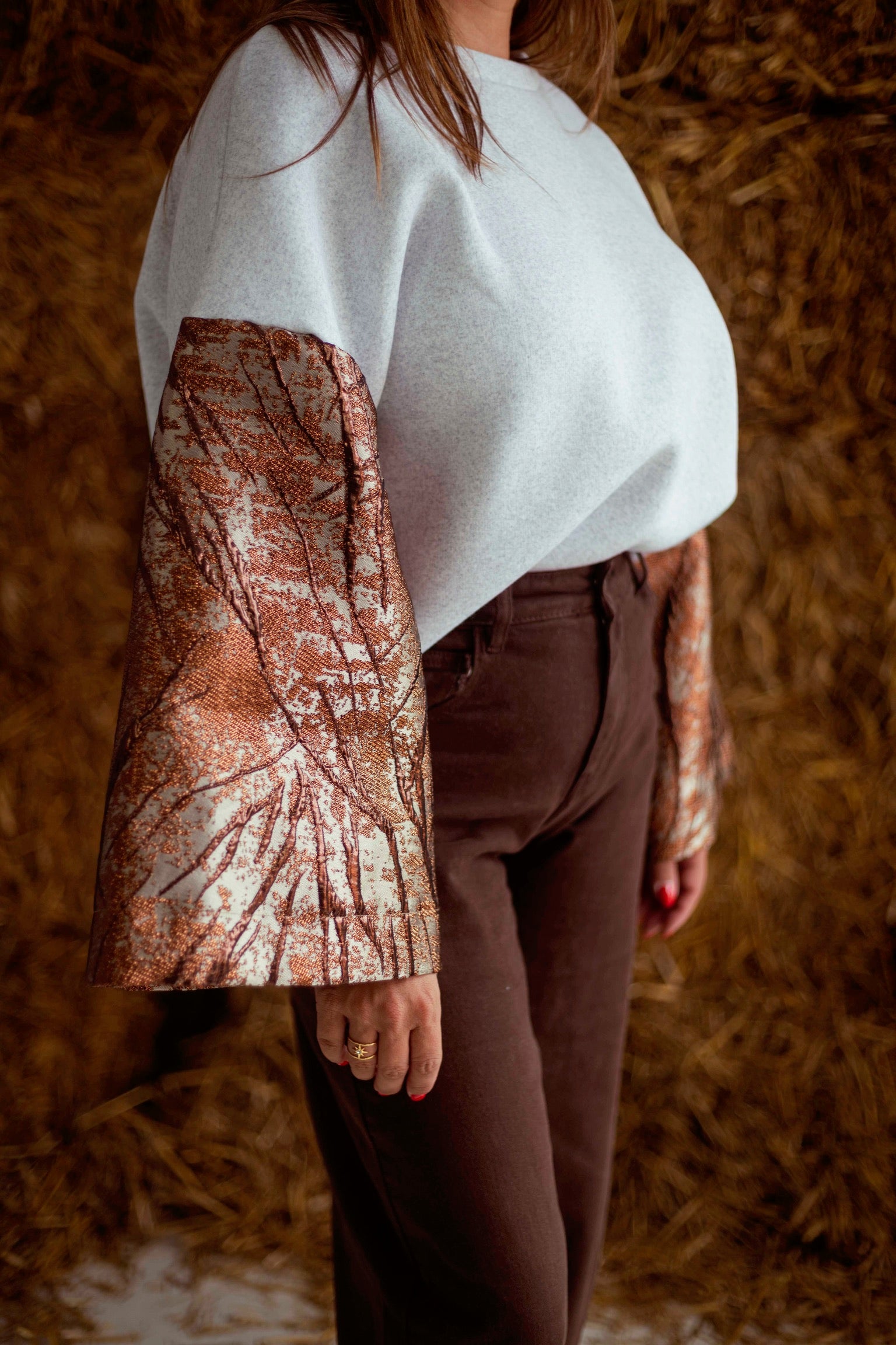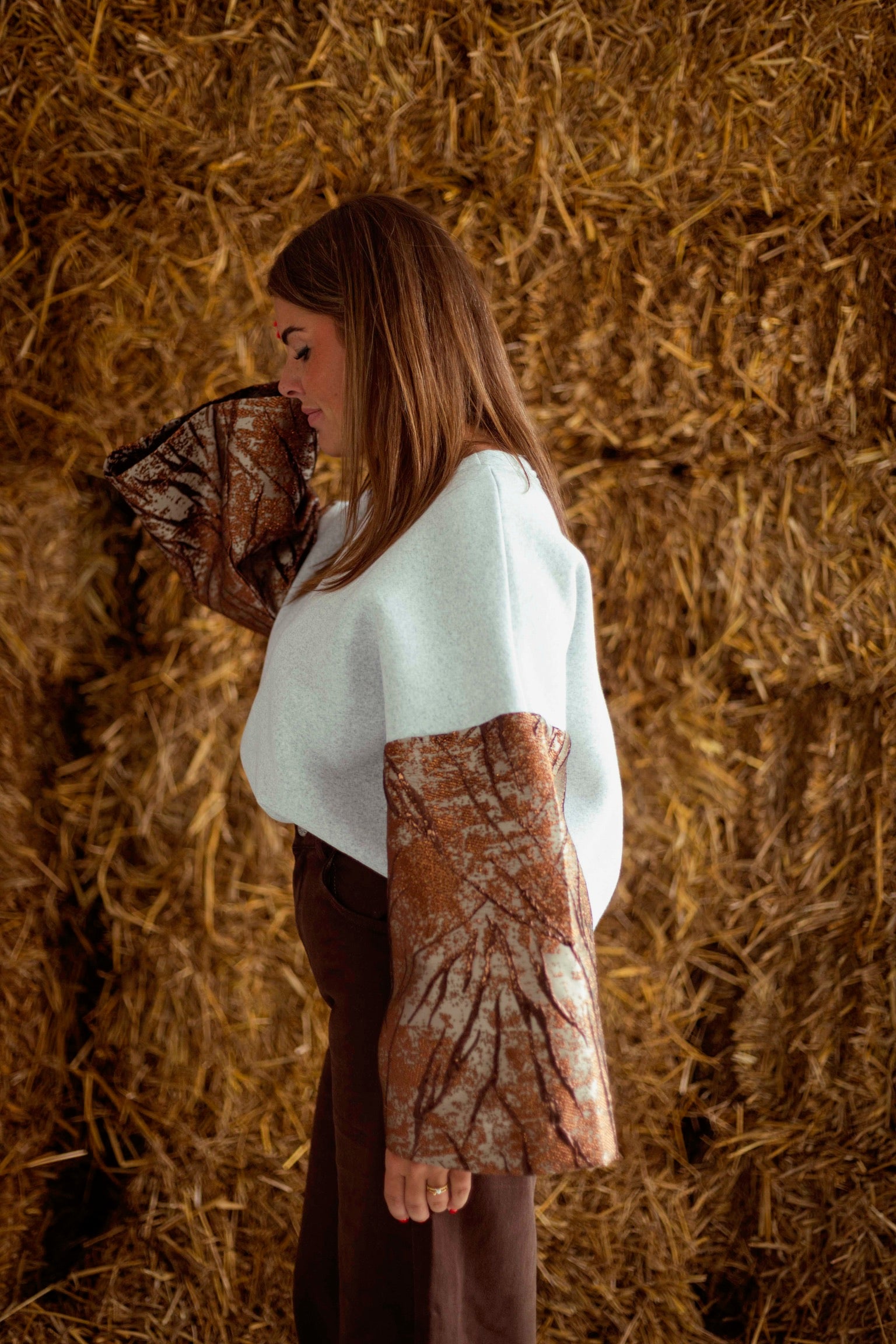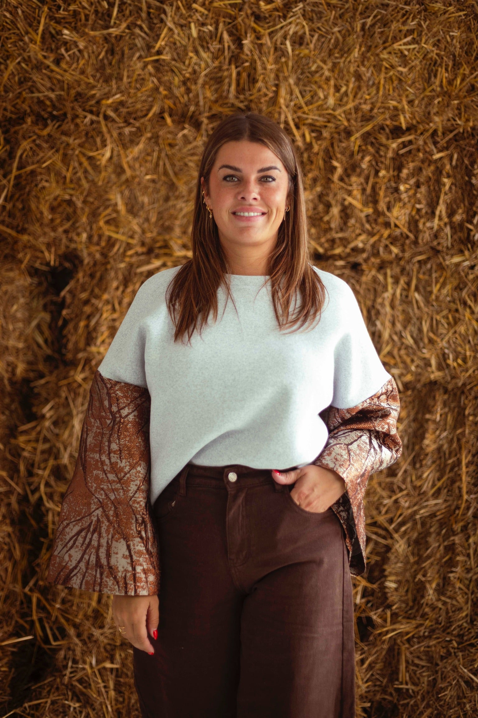 Een zachte trui met opvallend gekleurde, wijdere mouwen die net dat beetje extra geven aan een eenvoudige outfit. De losse pasvorm zorgt voor comfort, terwijl de mouwen zorgen voor karakter zonder te overdrijven. Perfect voor grauwe herfstdagen waar je look wel wat kleur kan gebruiken.
