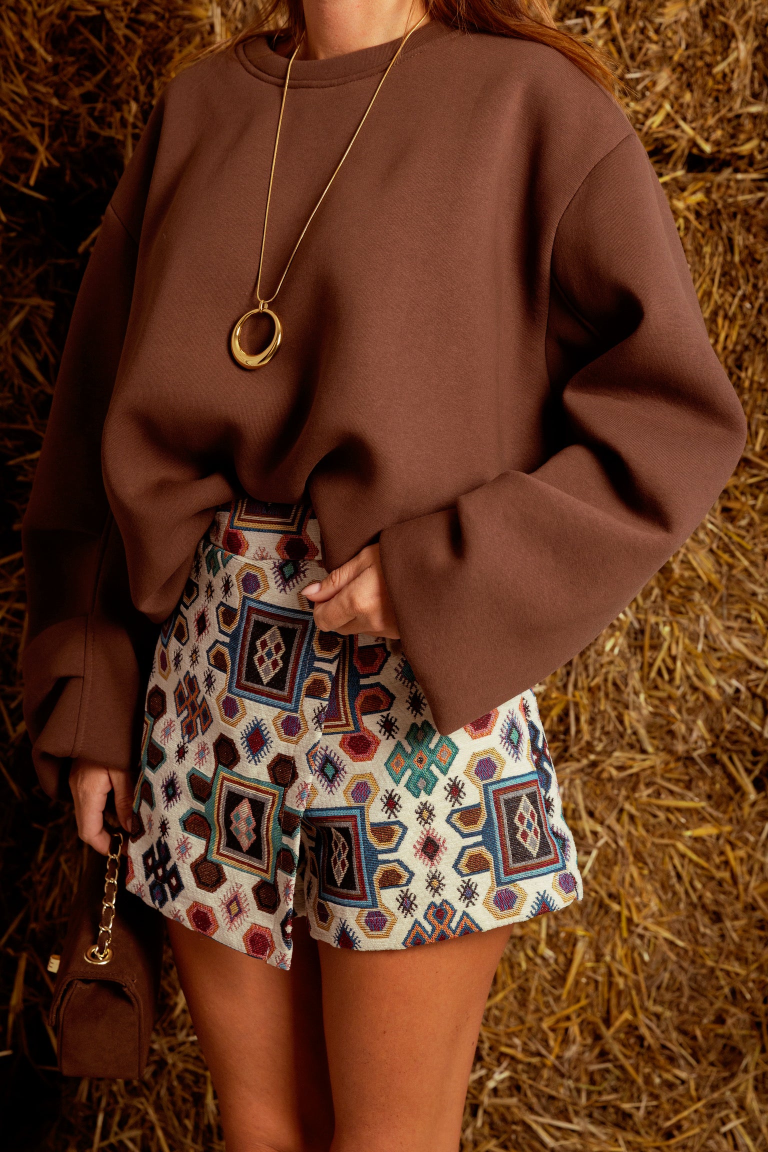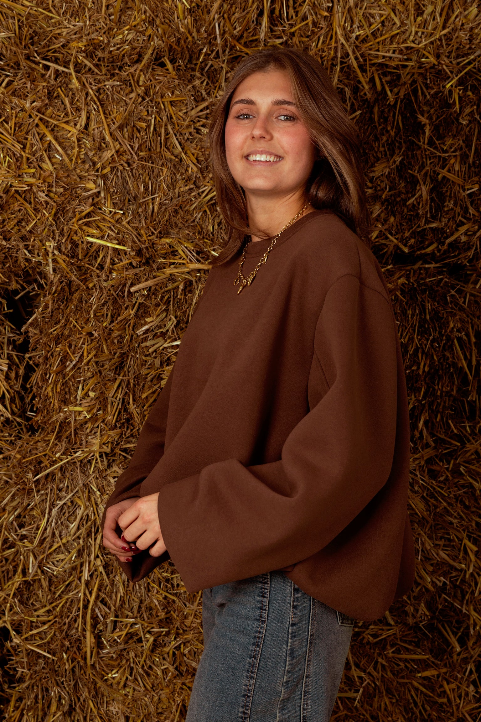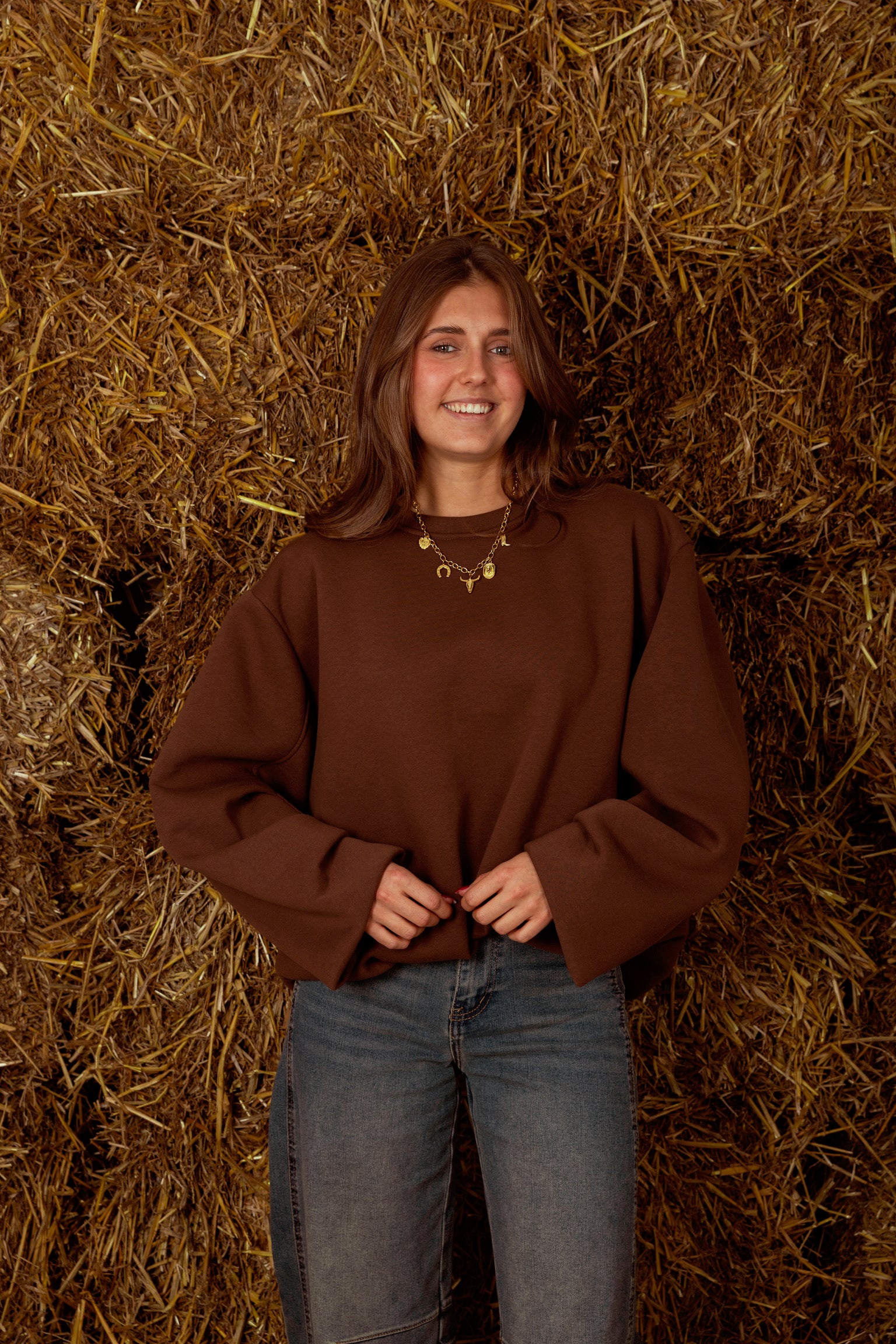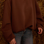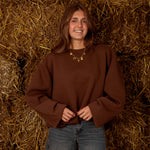 Een oversized trui in rijke bruintonen die je omhult als een warme deken op frisse herfstdagen. De losse pasvorm straalt moeiteloze nonchalance uit, ideaal voor gelaagde looks met een comfortabele, stijlvolle touch.