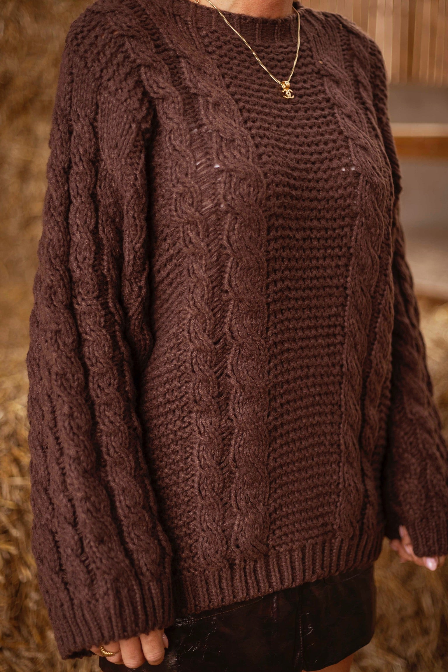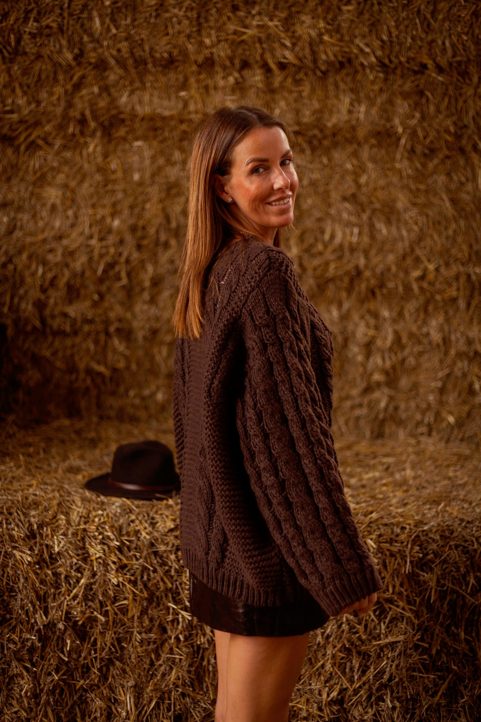 Met zijn rijke, aardse kleur en klassieke kabelpatroon is deze trui een herfstfavoriet die je keer op keer wilt dragen. De zware knit voelt behaaglijk aan en maakt elke outfit warmer, zonder in te leveren op stijl of elegantie.