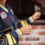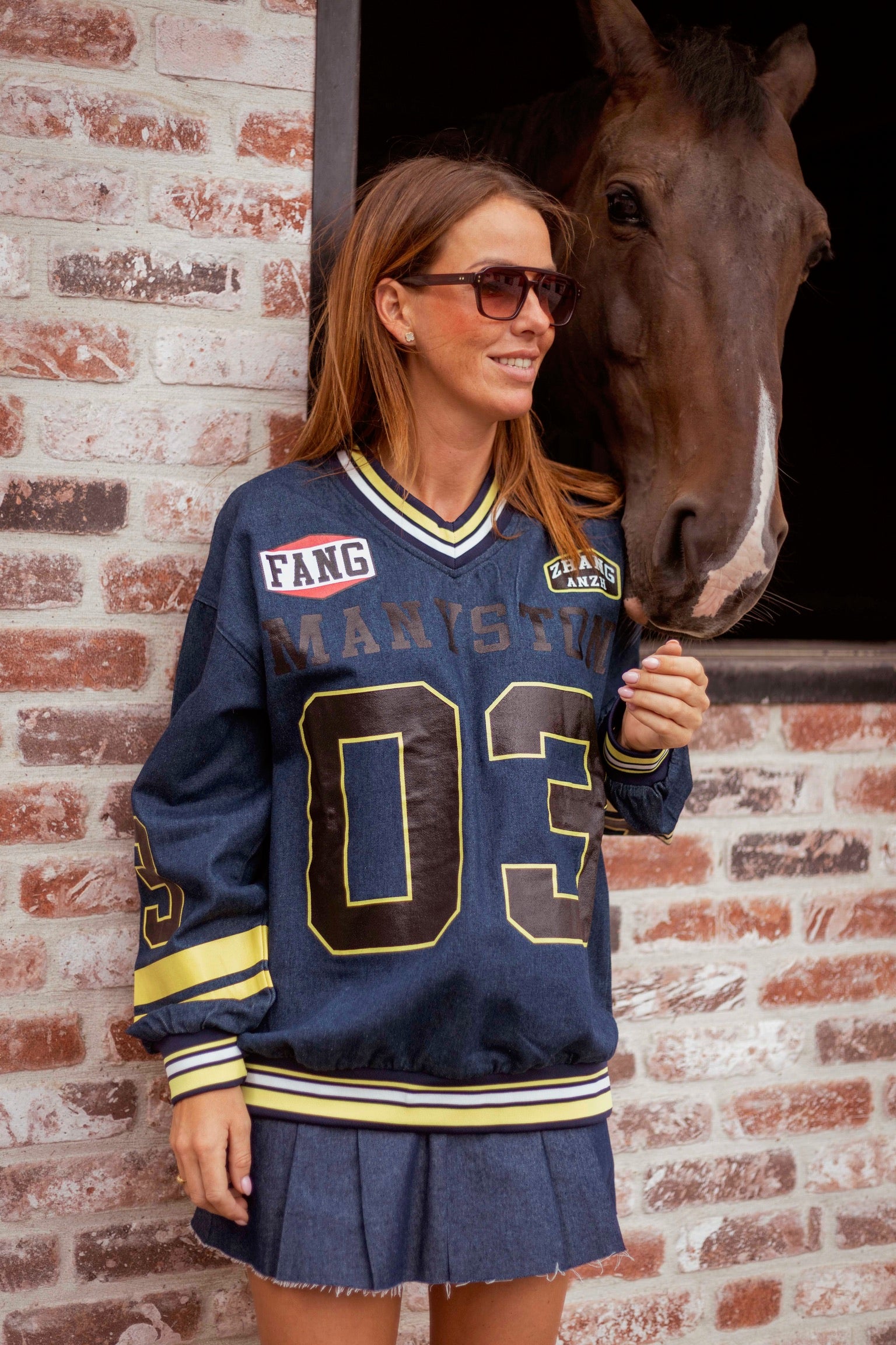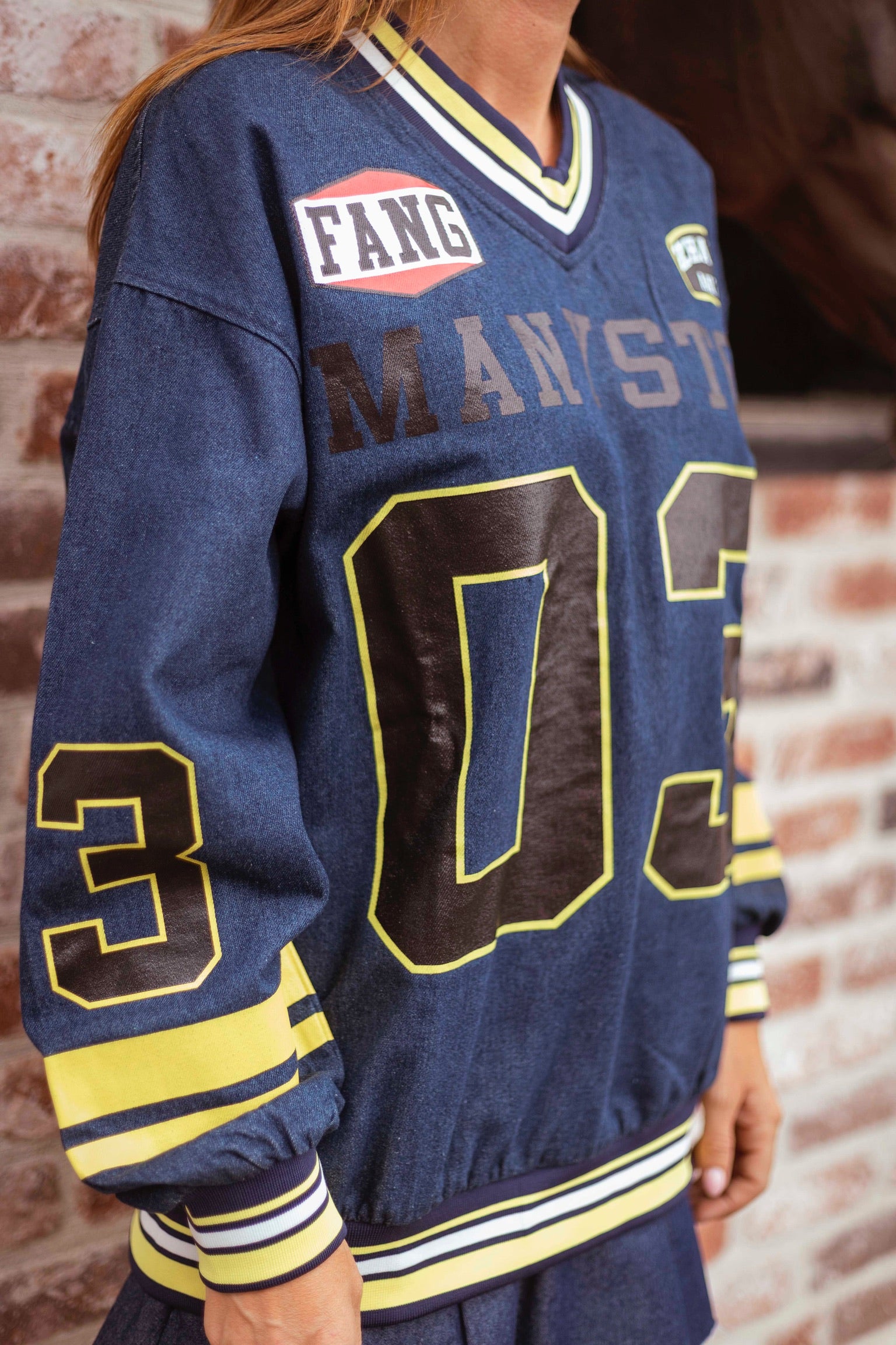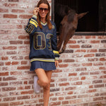 Deze donkerblauwe trui combineert herfstige warmte met een opvallende race-rally uitstraling, dankzij grafische lijnen die energie en beweging oproepen. Perfect voor wie durft op te vallen terwijl je toch comfortabel en stijlvol blijft tijdens frisse dagen buiten.