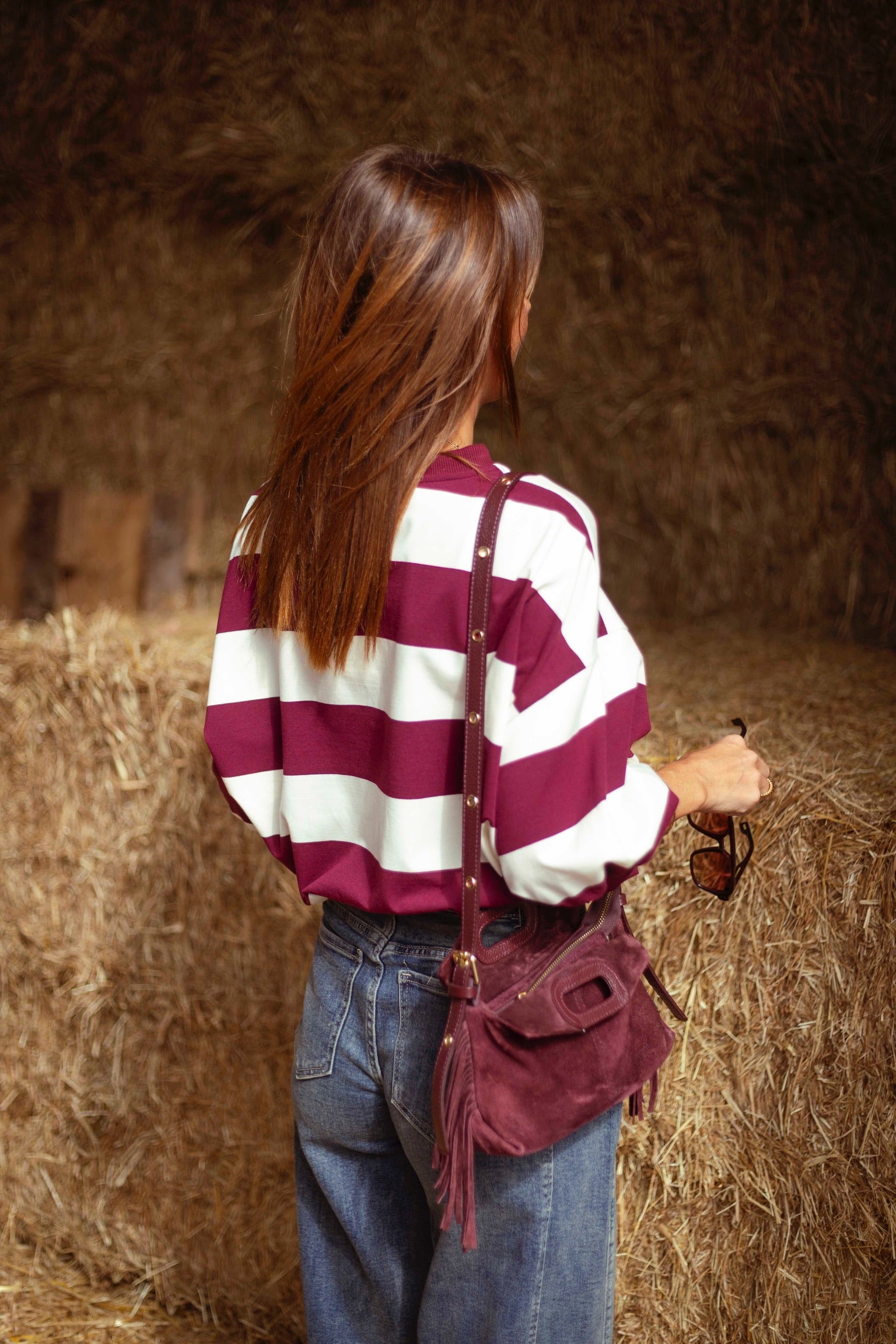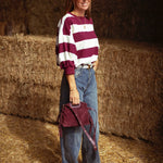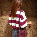 PRE-ORDER MARABETH BURGUNDY STRIPED SWEATER