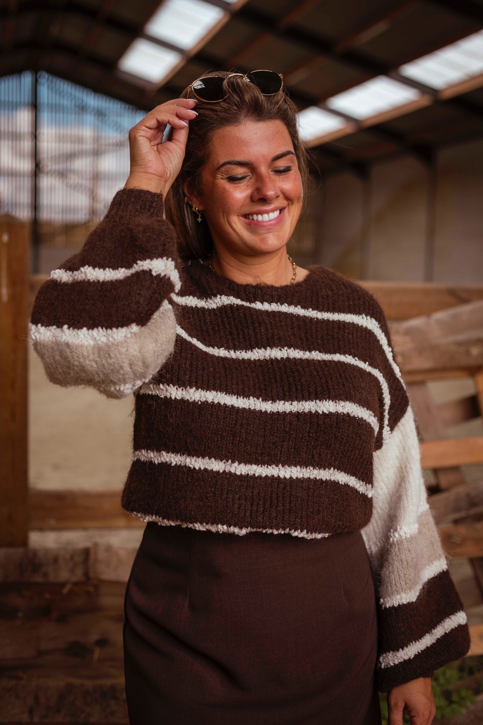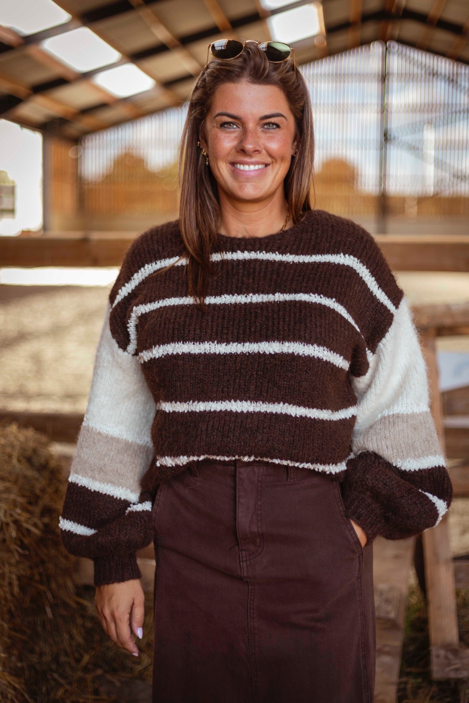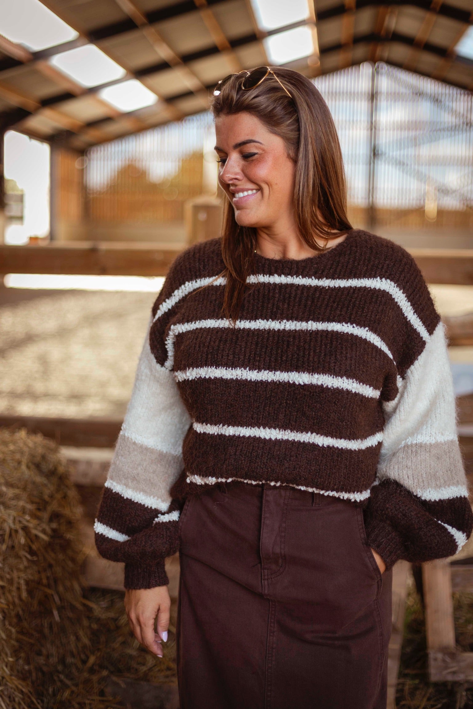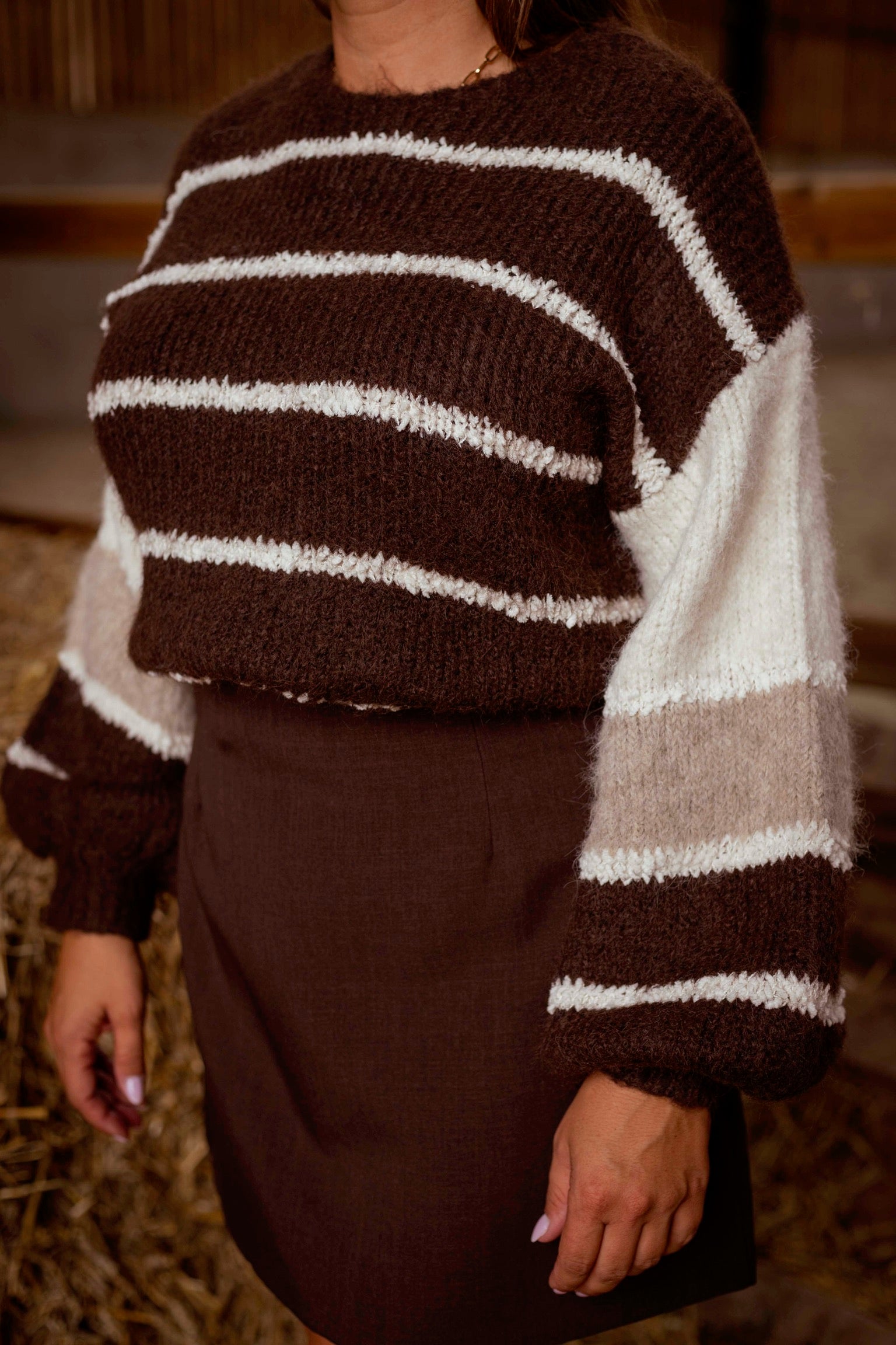 POSEY BROWN STRIPED SWEATER
