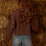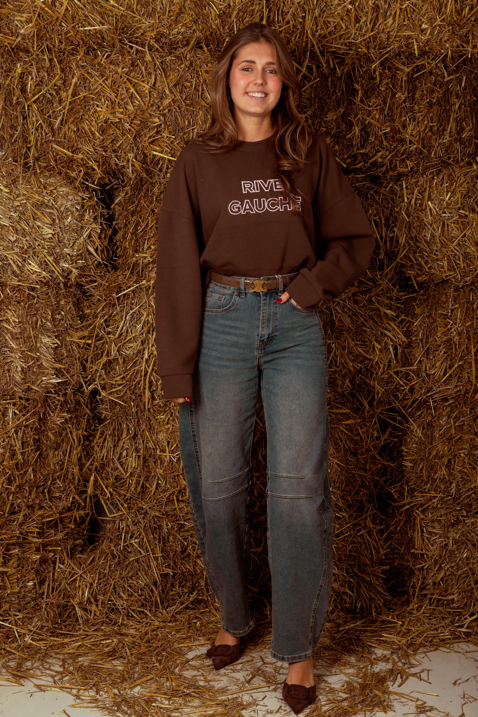 Een tijdloze trui met een zachte stof en relaxte pasvorm die uitnodigt tot knusse herfstmomenten. Het subtiele opschrift voegt een stoere, eigentijdse touch toe aan elke outfit.