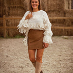 WINIFRED ECRU FRINGE SWEATER