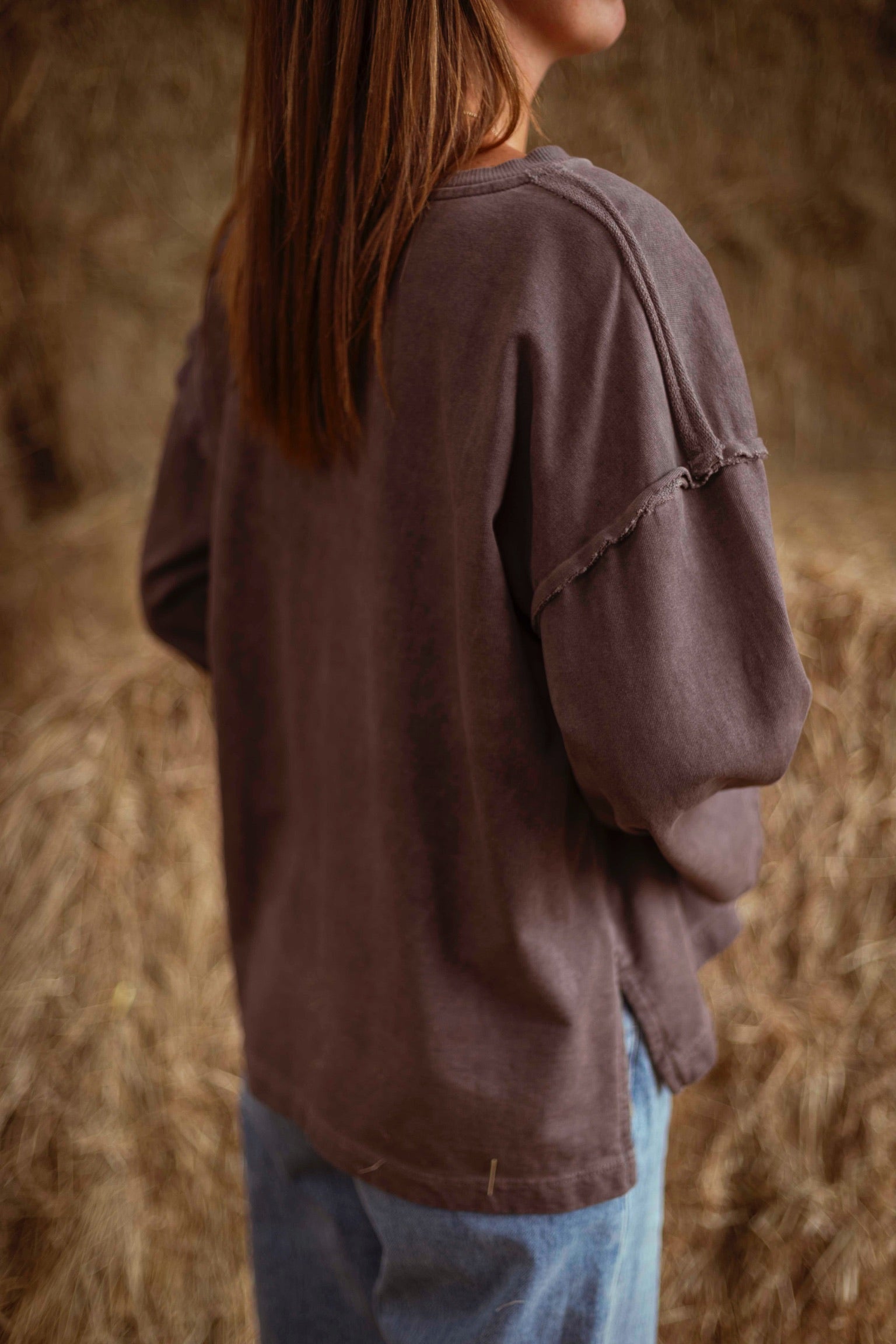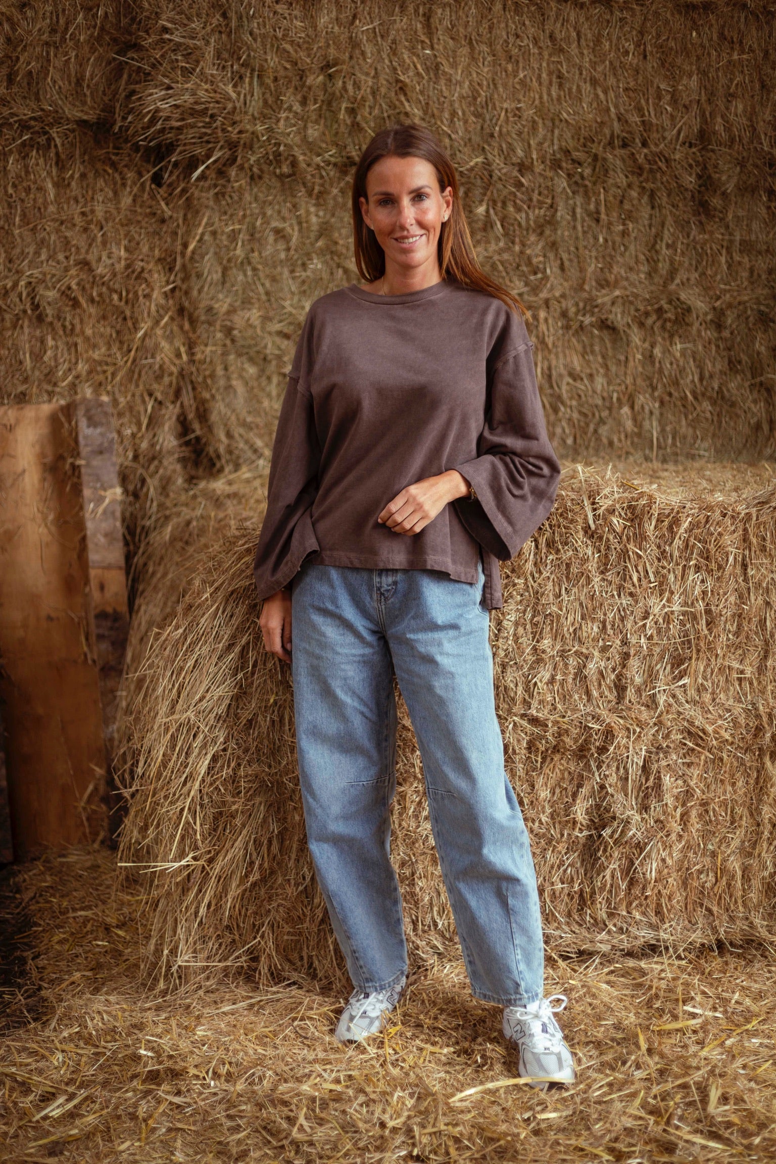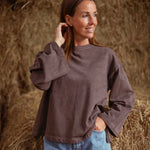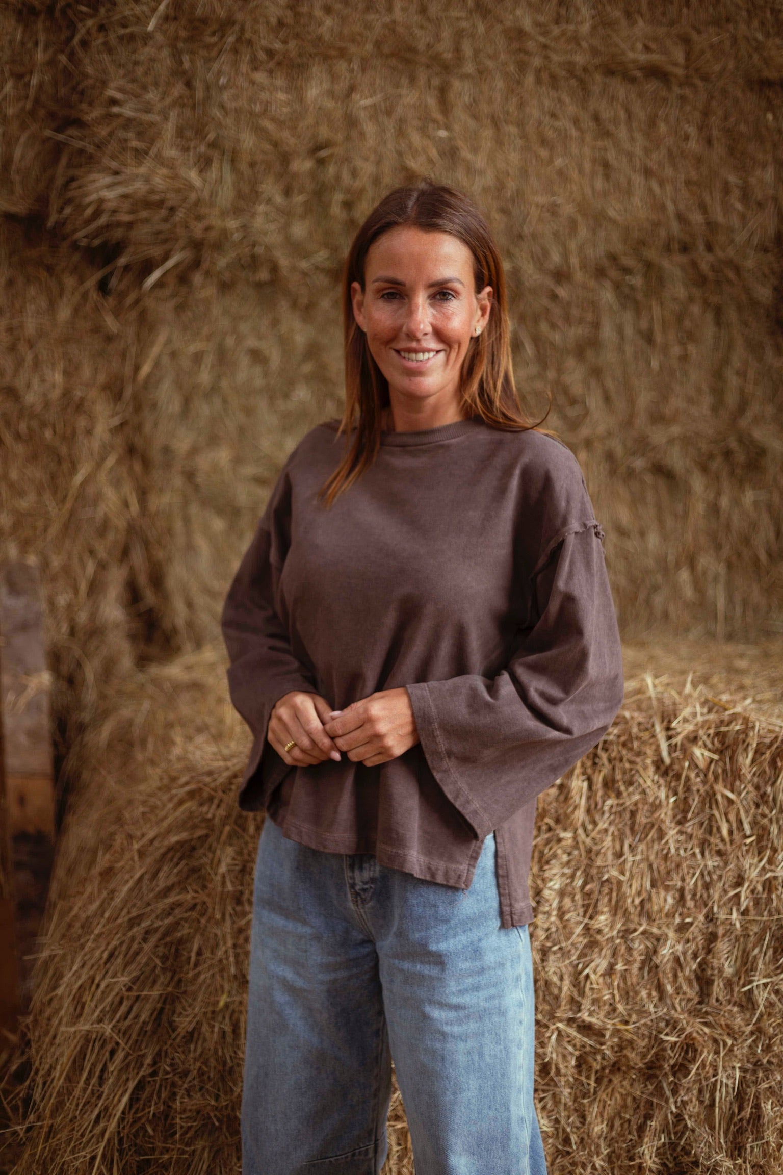 Deze bruine trui met iets wijdere mouwen geeft een eigentijdse draai aan een klassieker. Comfortabel en stijlvol tegelijk, perfect voor frisse herfstdagen waarop je net iets extra’s wilt.