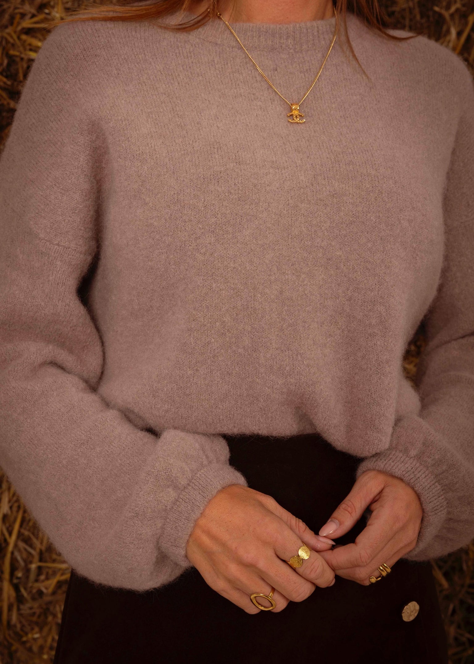 AURIELLE BROWN KNITTED ZIP SWEATER