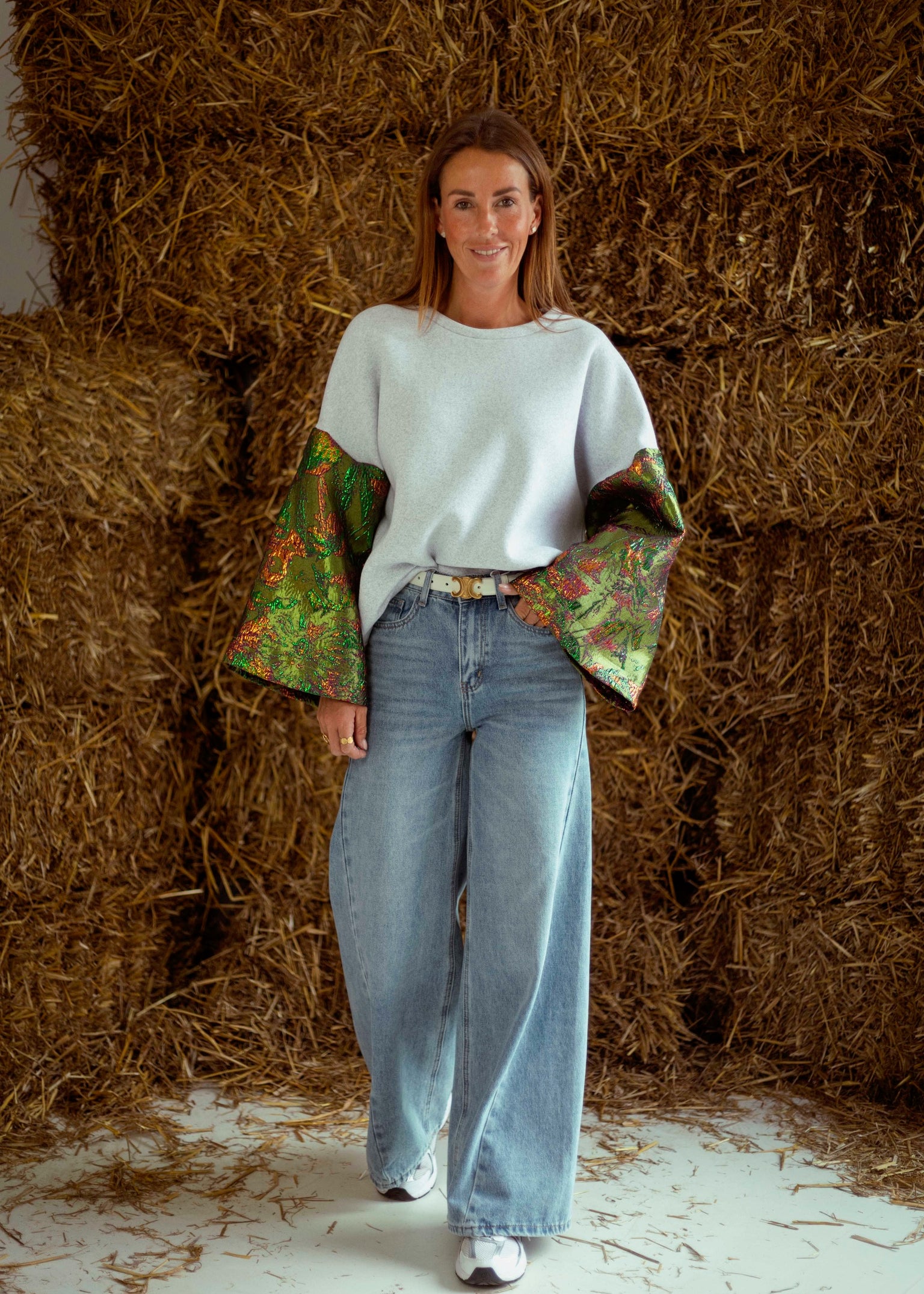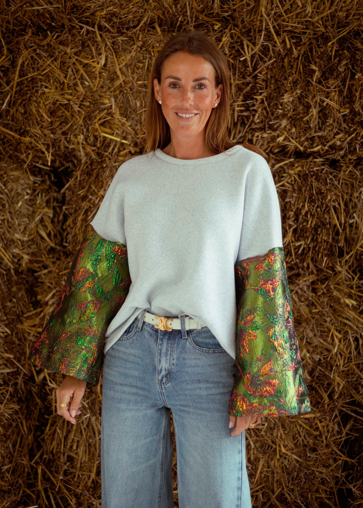 FREYA GREY SWEATER / OLIVE GREEN SLEEVES