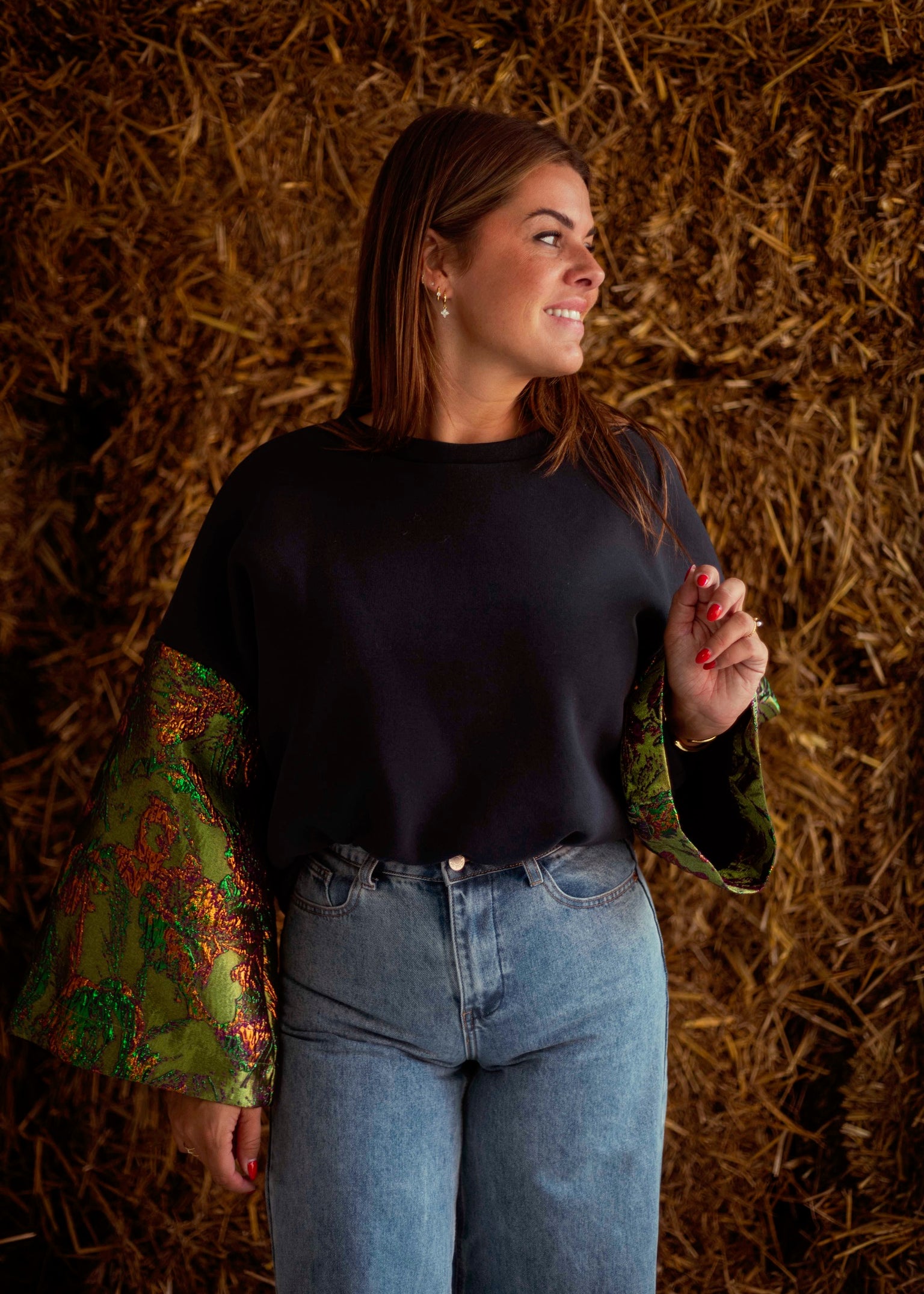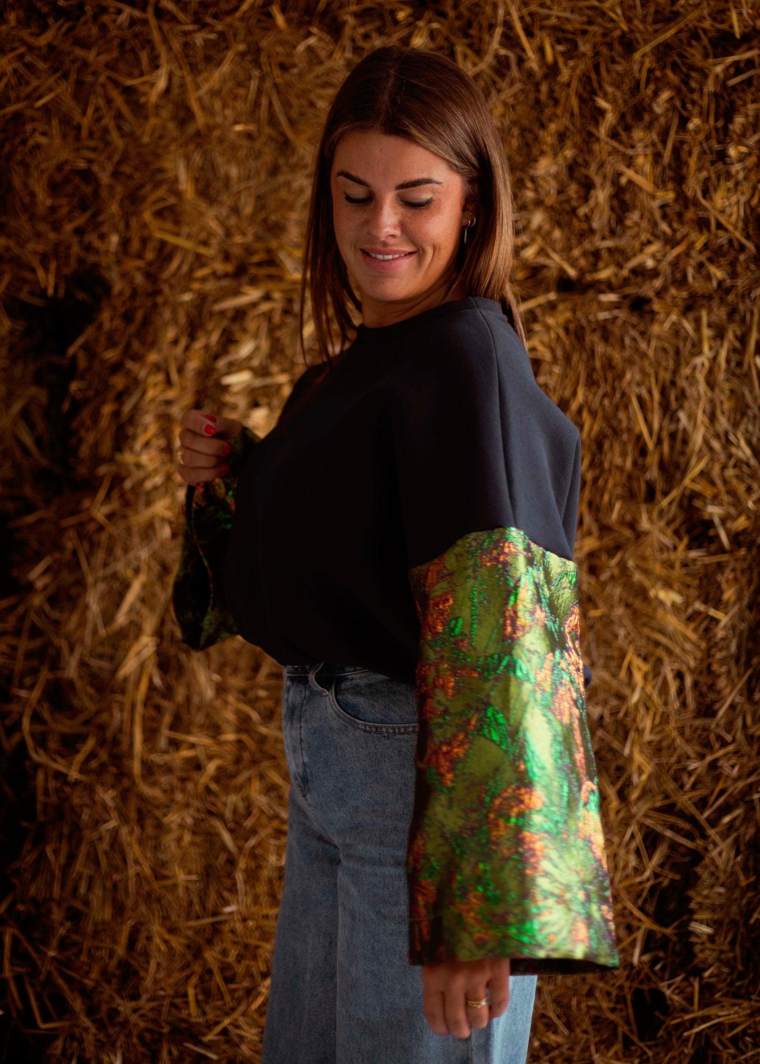 FREYA DARK BLUE SWEATER / OLIVE GREEN SLEEVES
