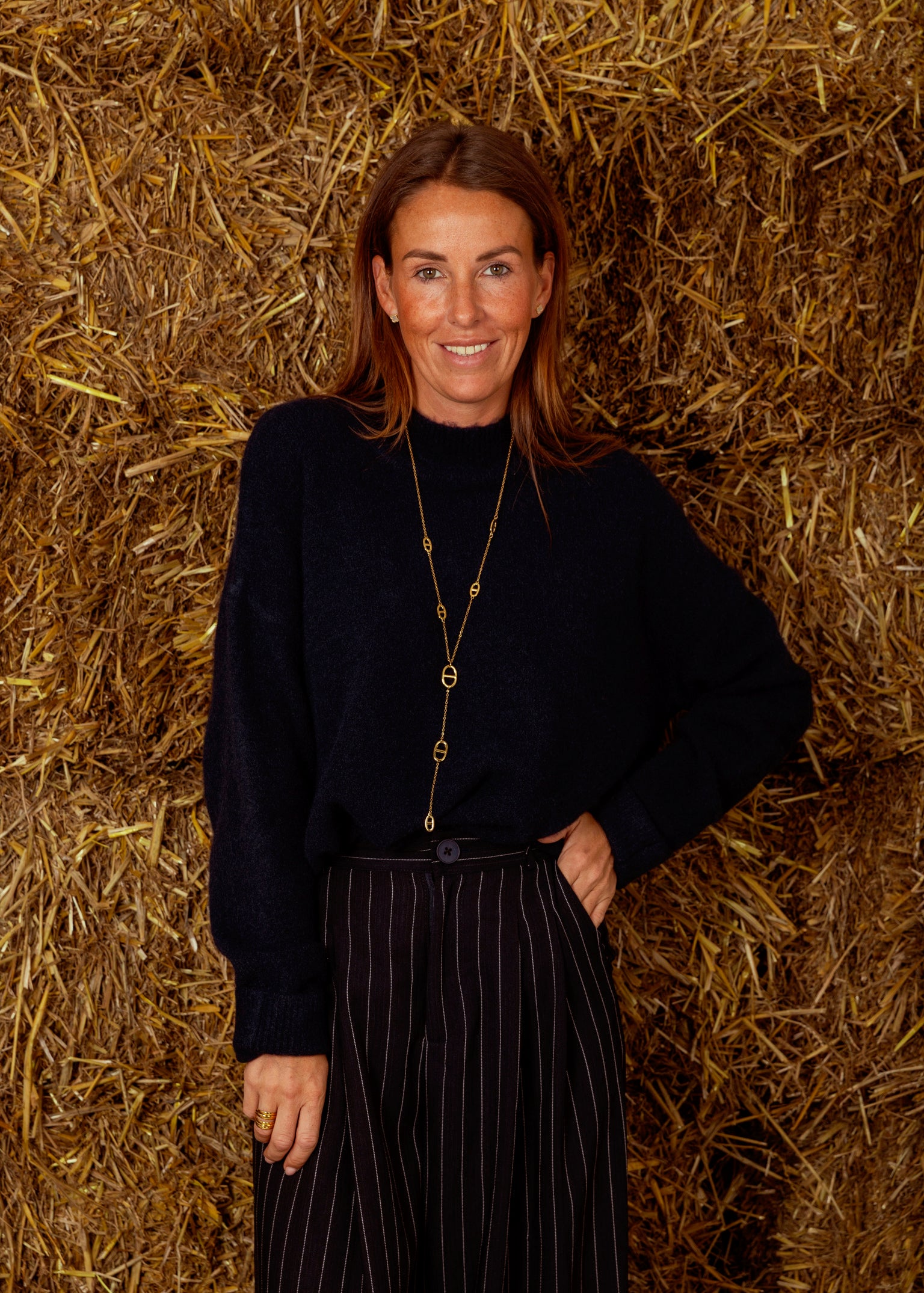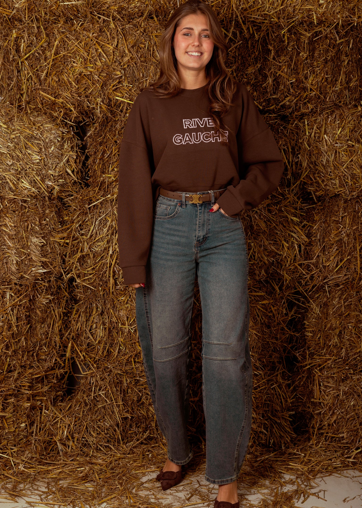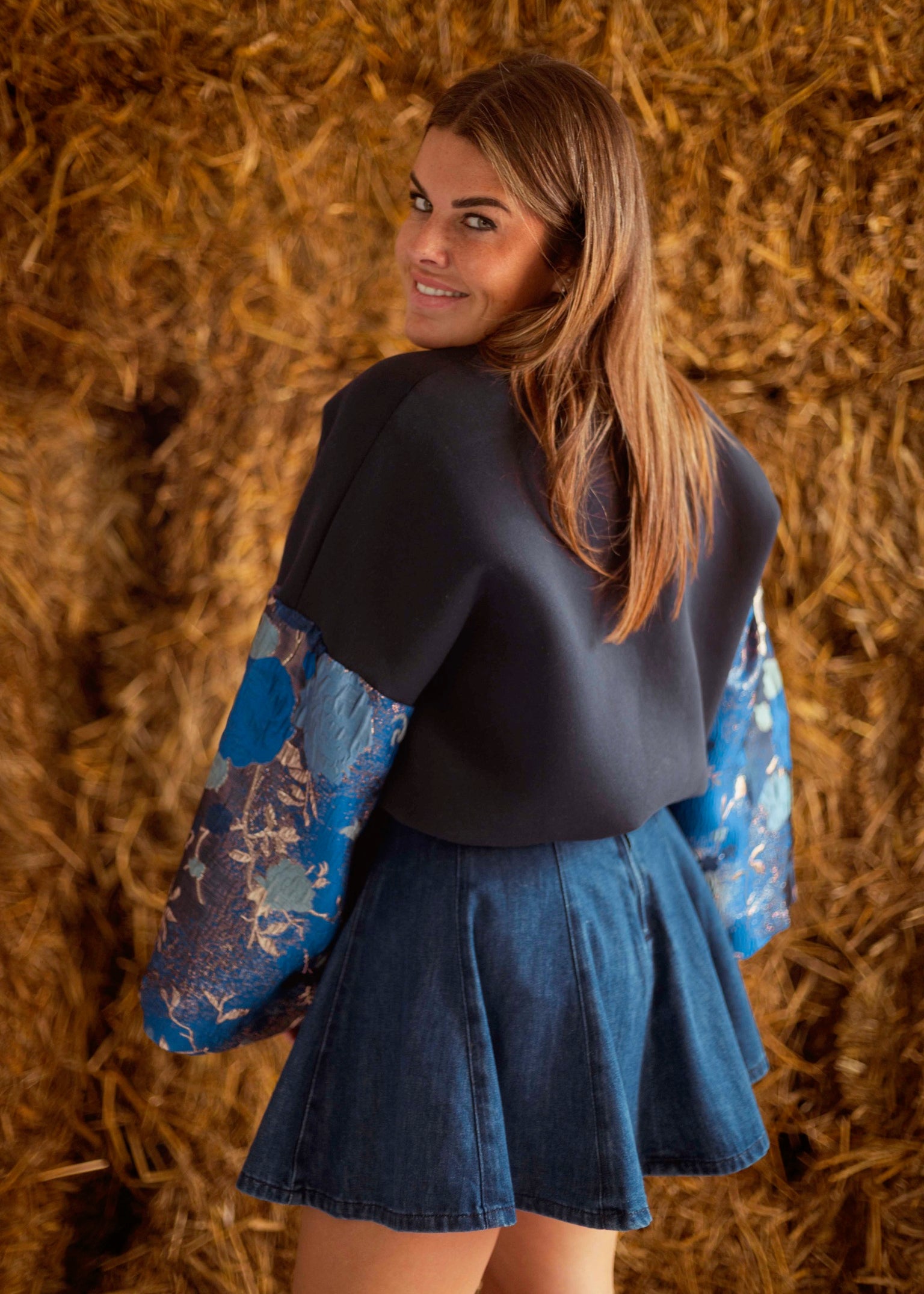 FREYA DARK BLUE SWEATER / BROWN SLEEVES