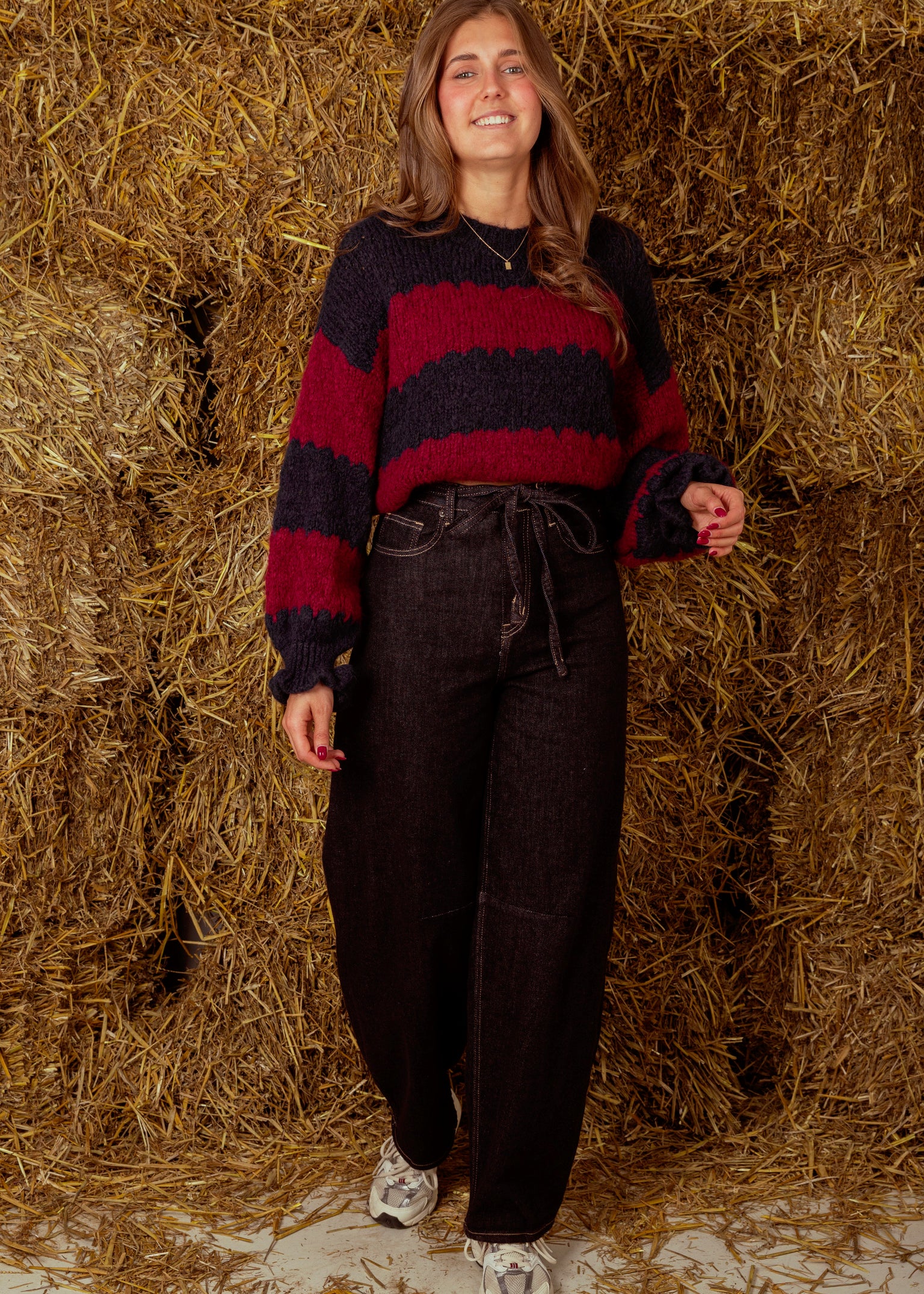 SERENNA DARK BLUE/BORDEAUX STRIPED KNIT SWEATER
