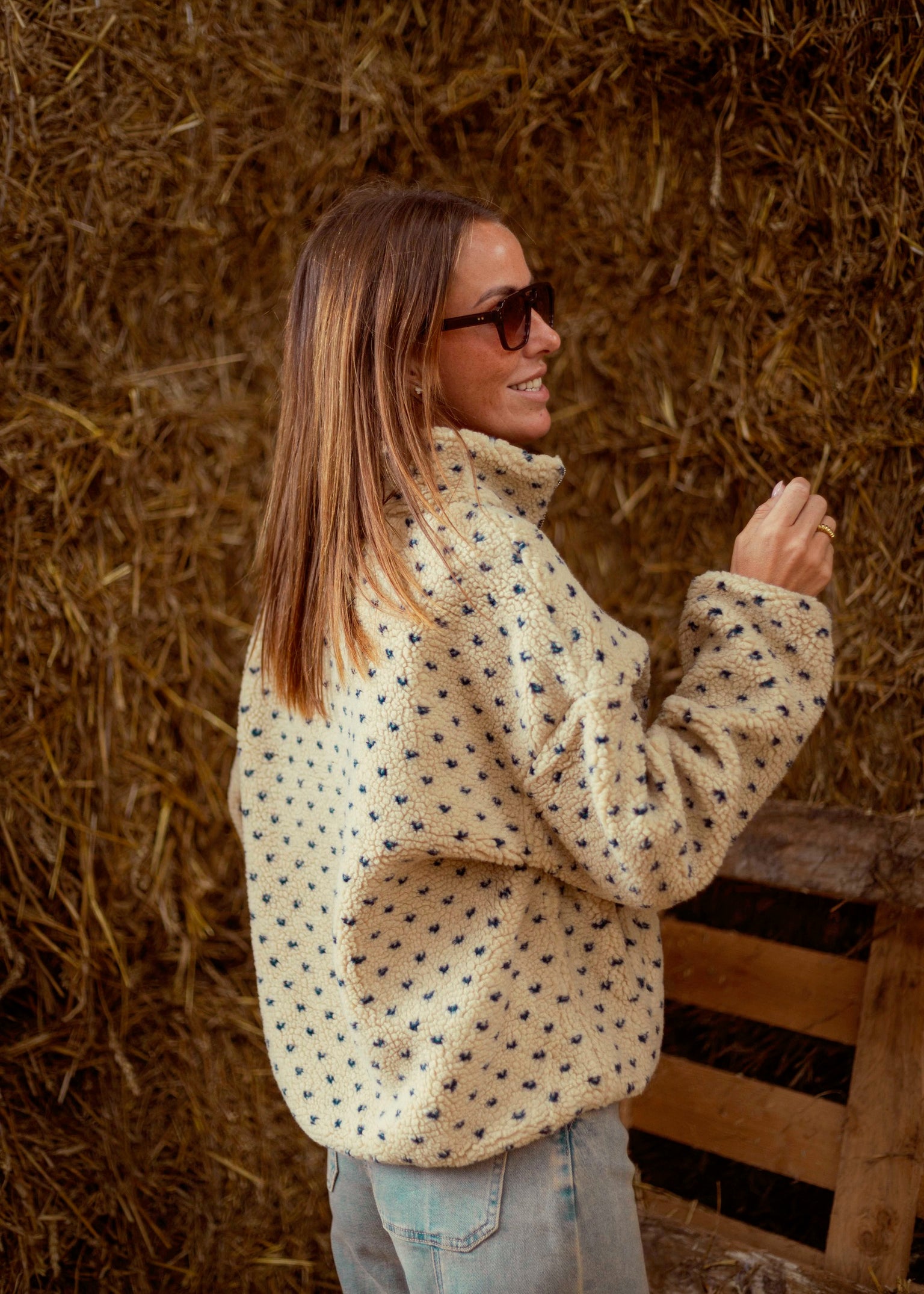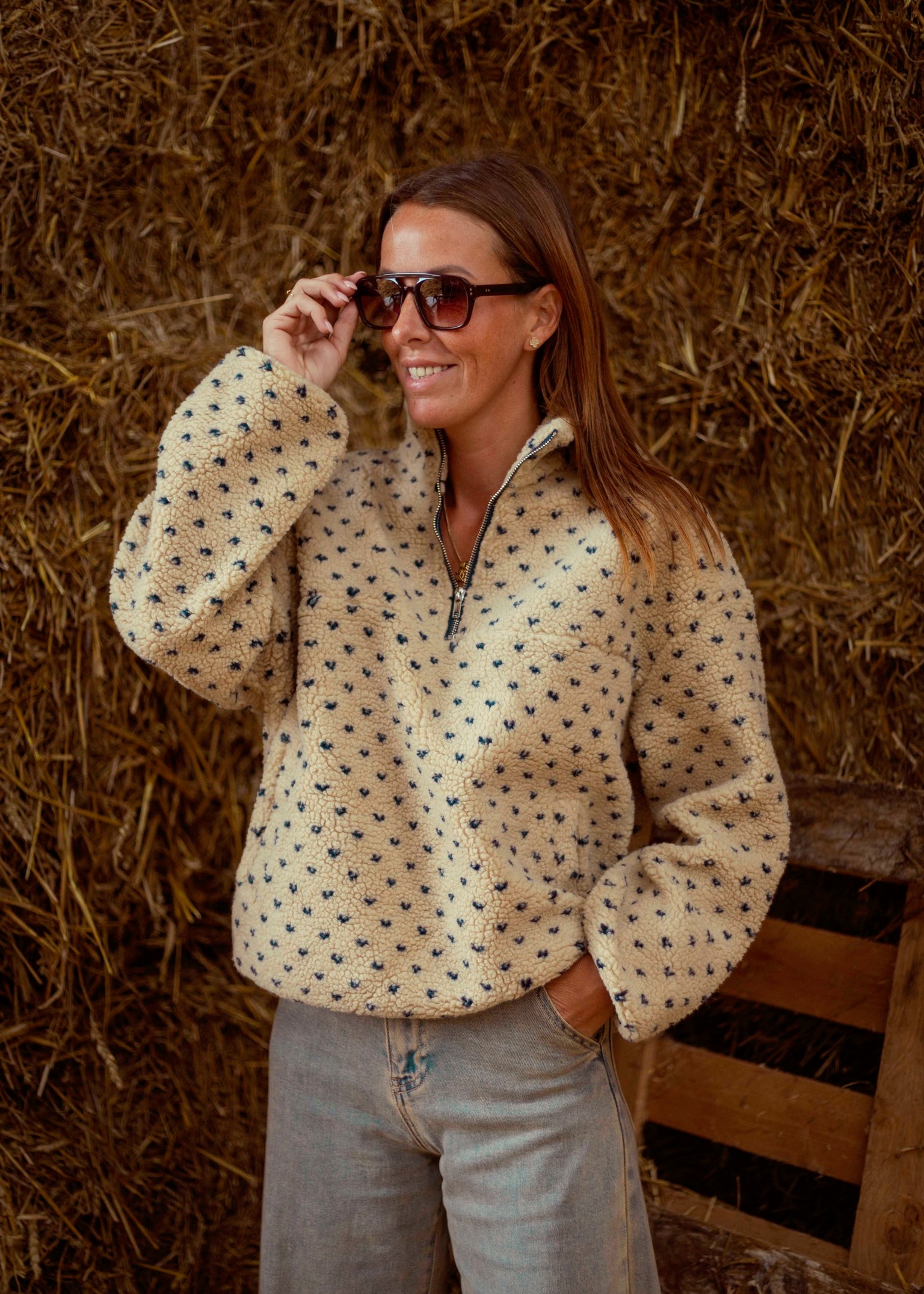 DAWSIE BEIGE SOFT POLKADOTS TEDDY SWEATER