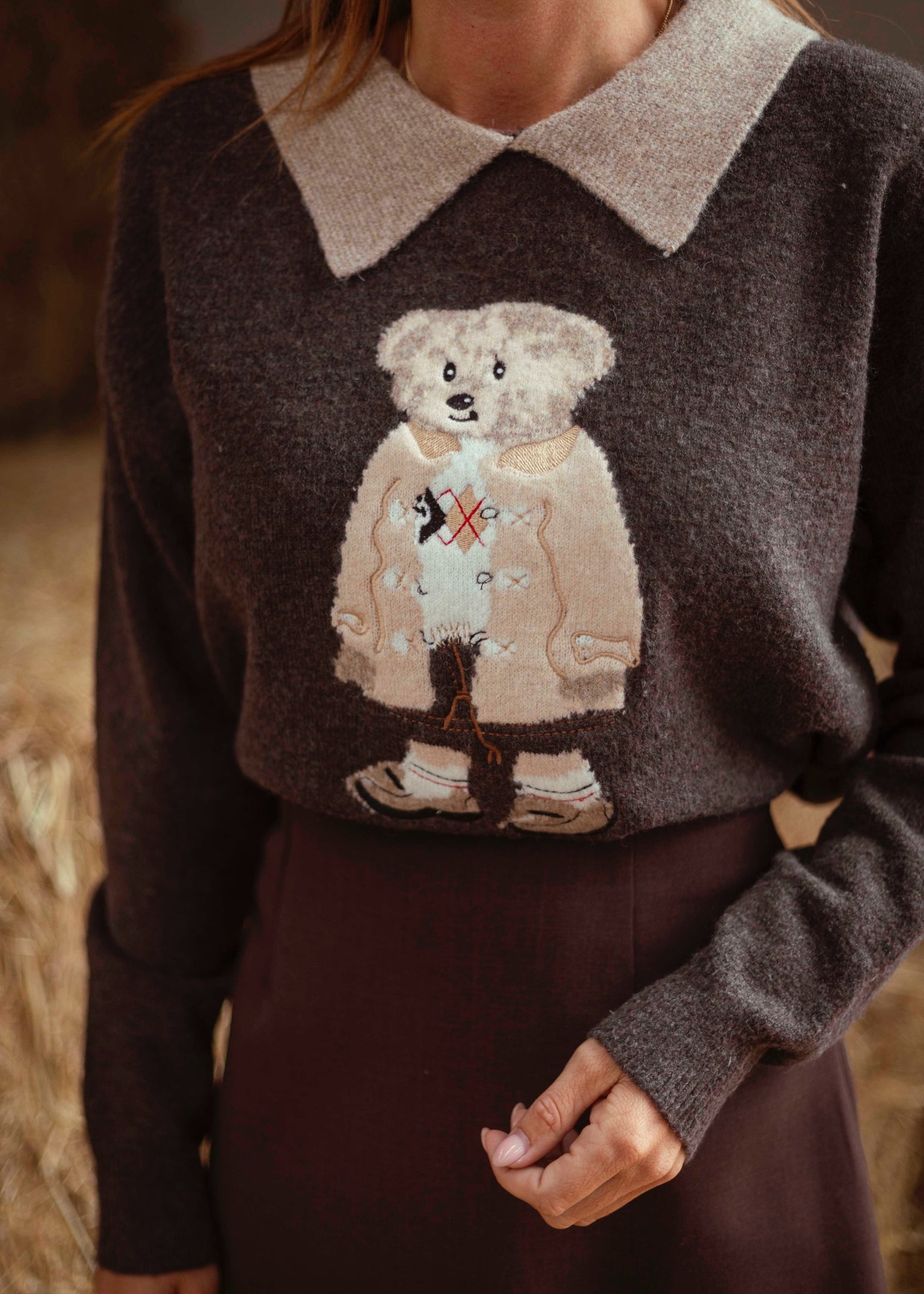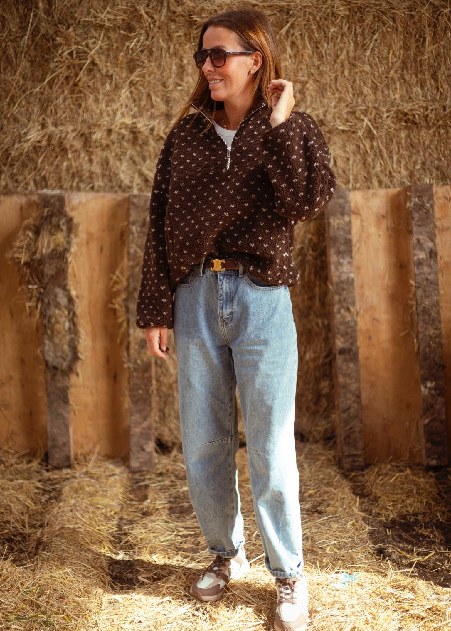 DAWSIE BROWN SOFT POLKADOTS TEDDY SWEATER