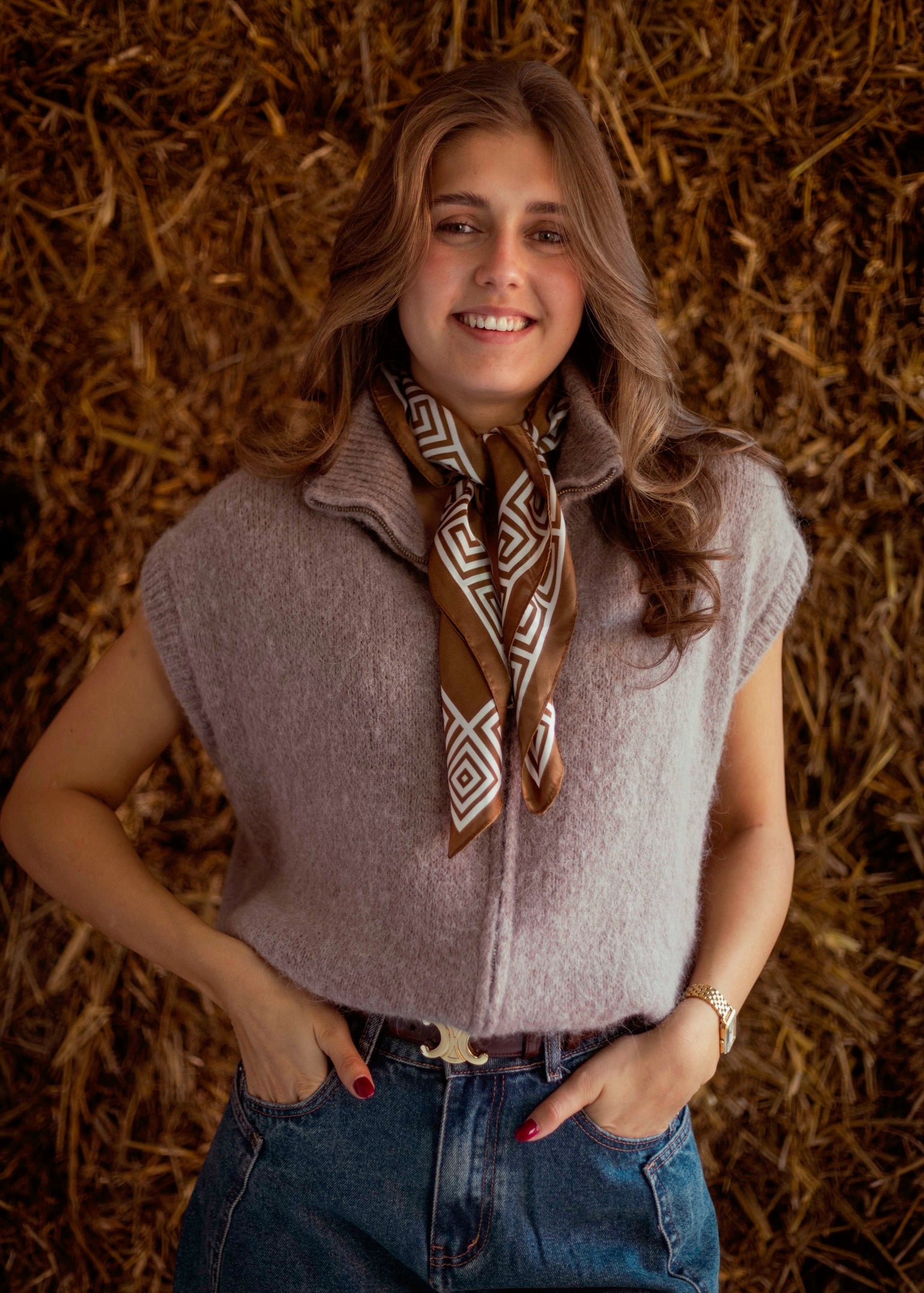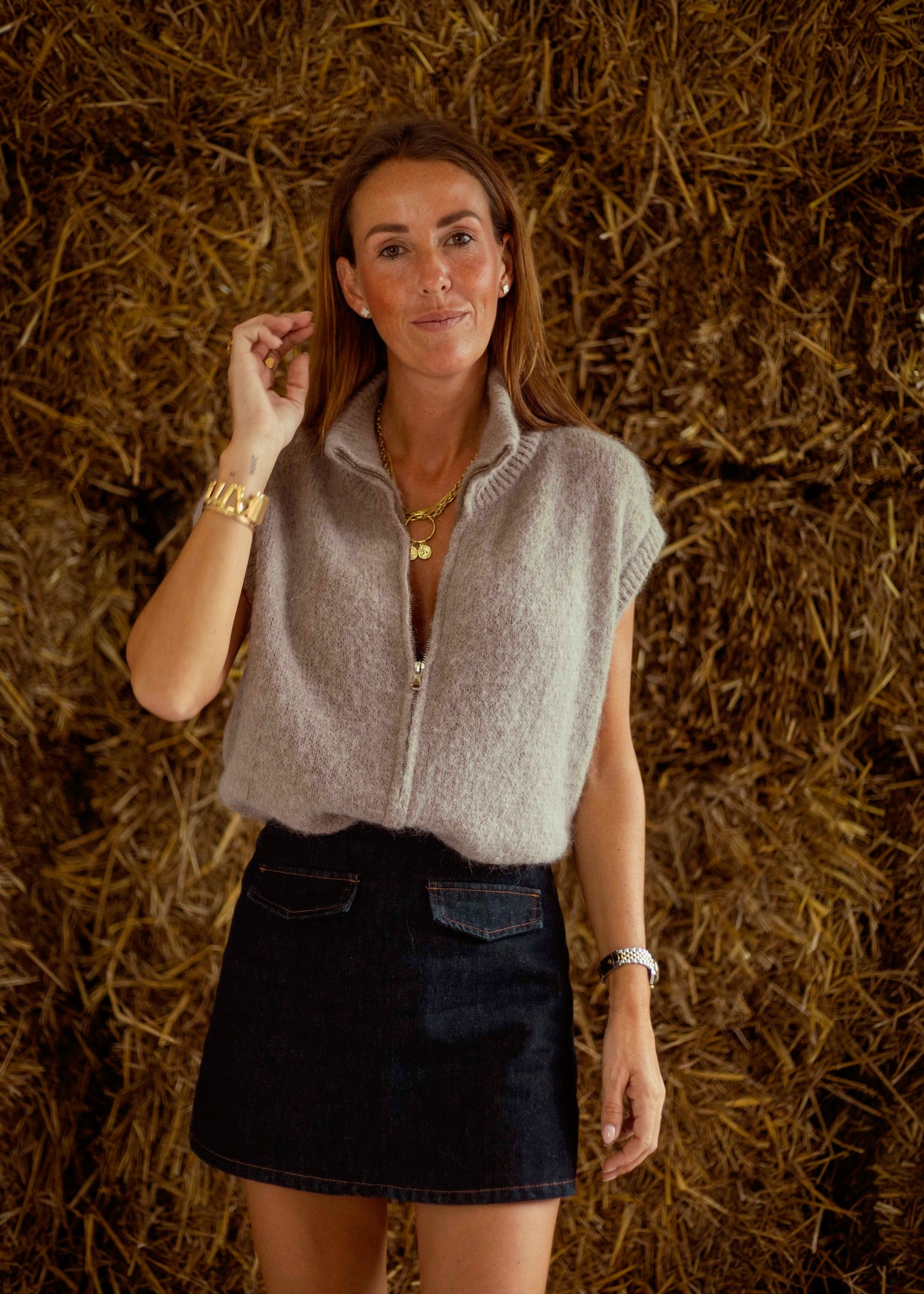 AURIELLE TAUPE KNITTED ZIP SWEATER