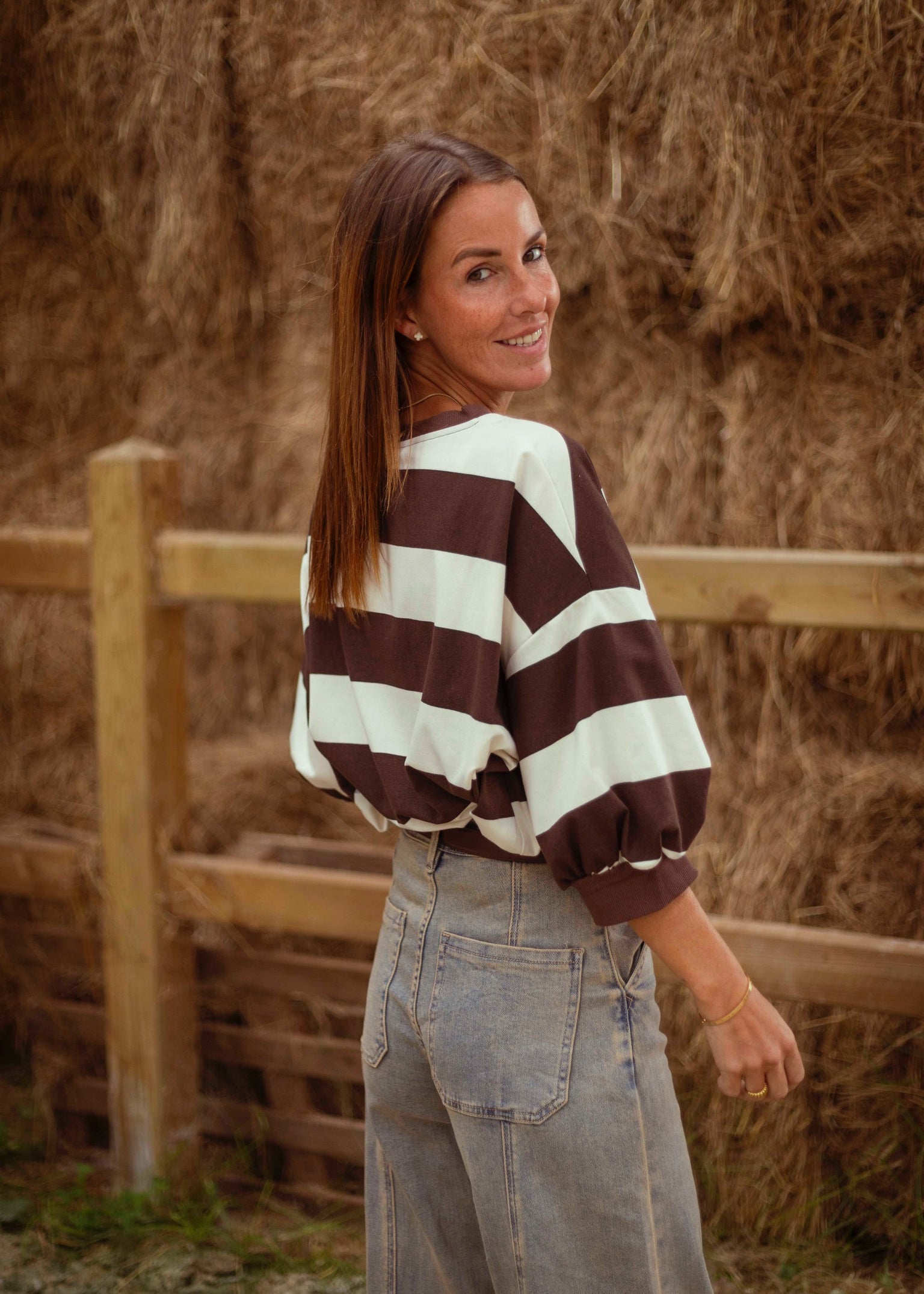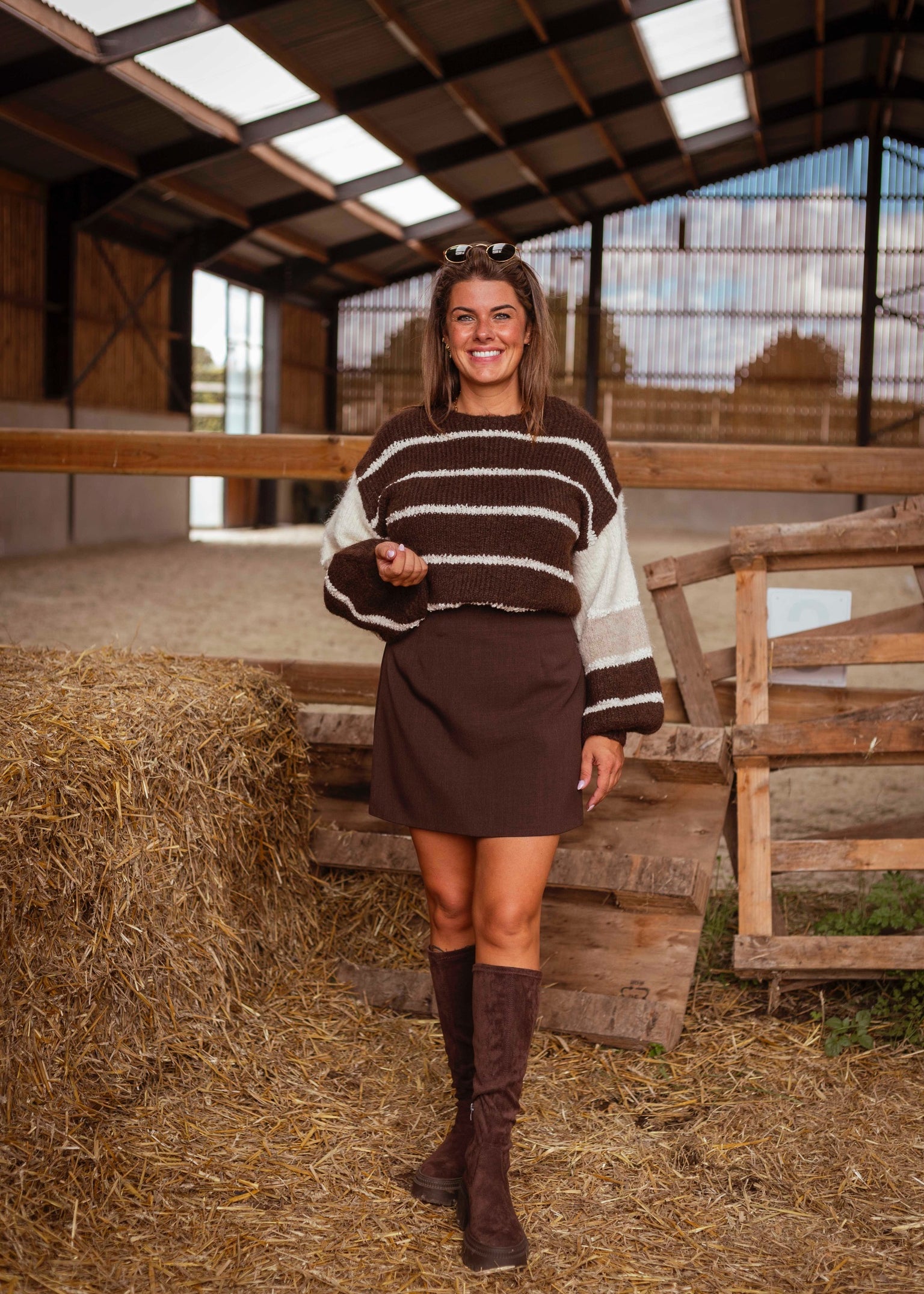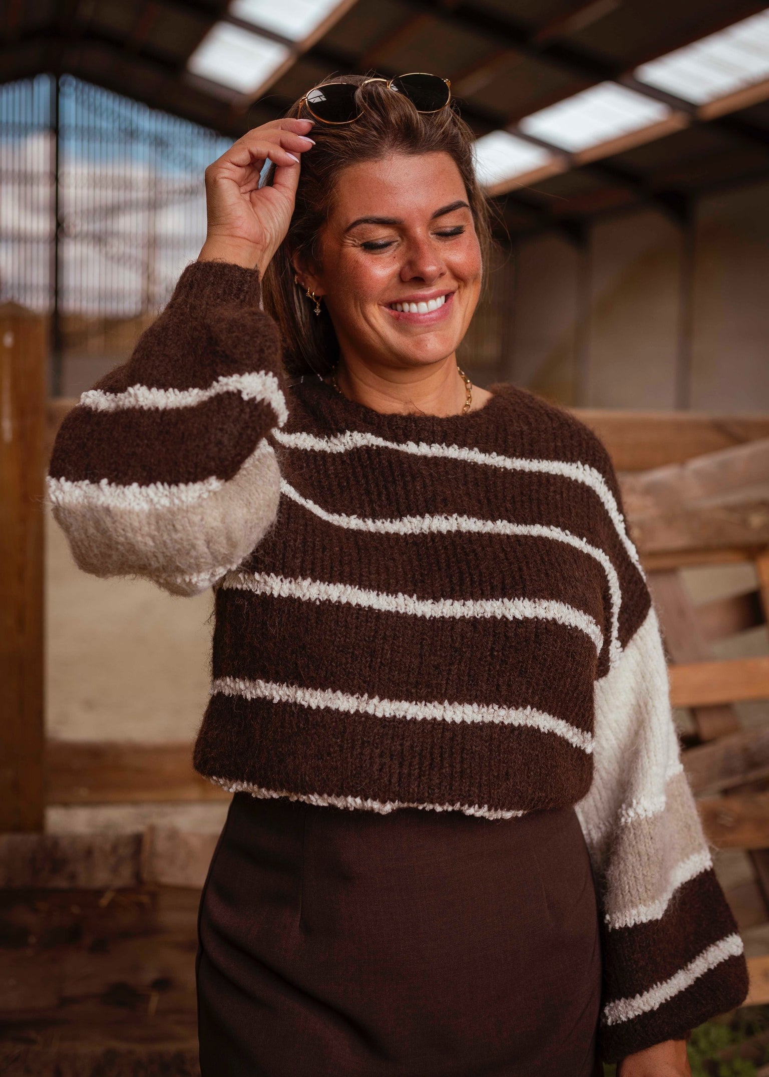 PRE-ORDER MARABETH BROWN STRIPED SWEATER