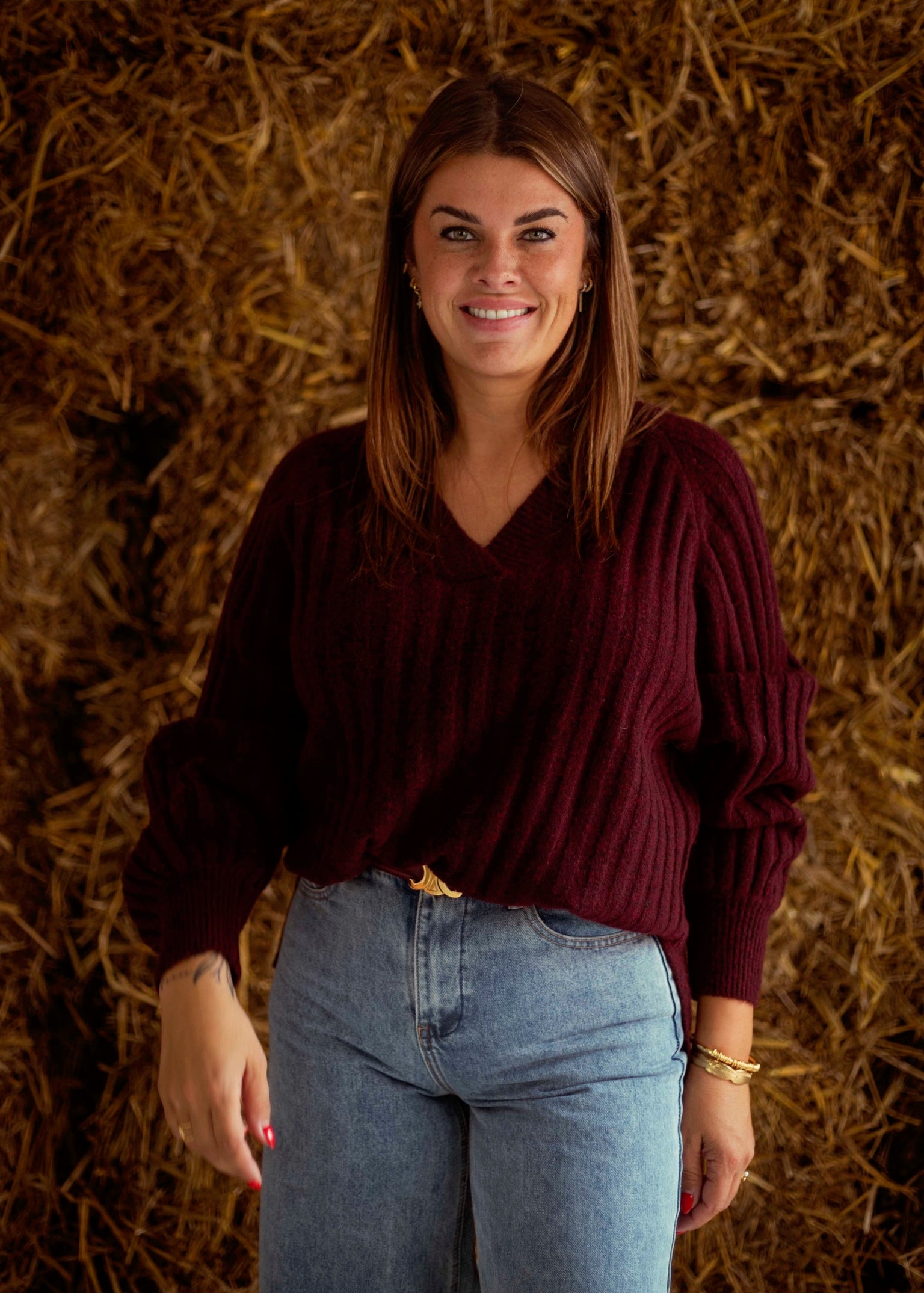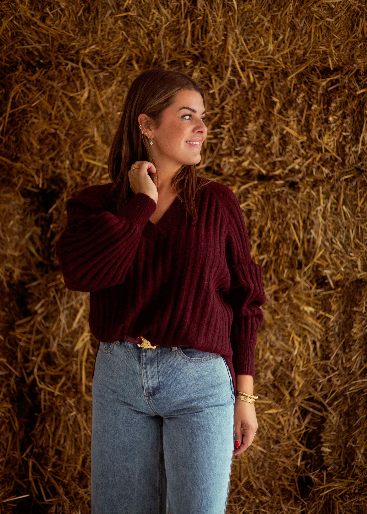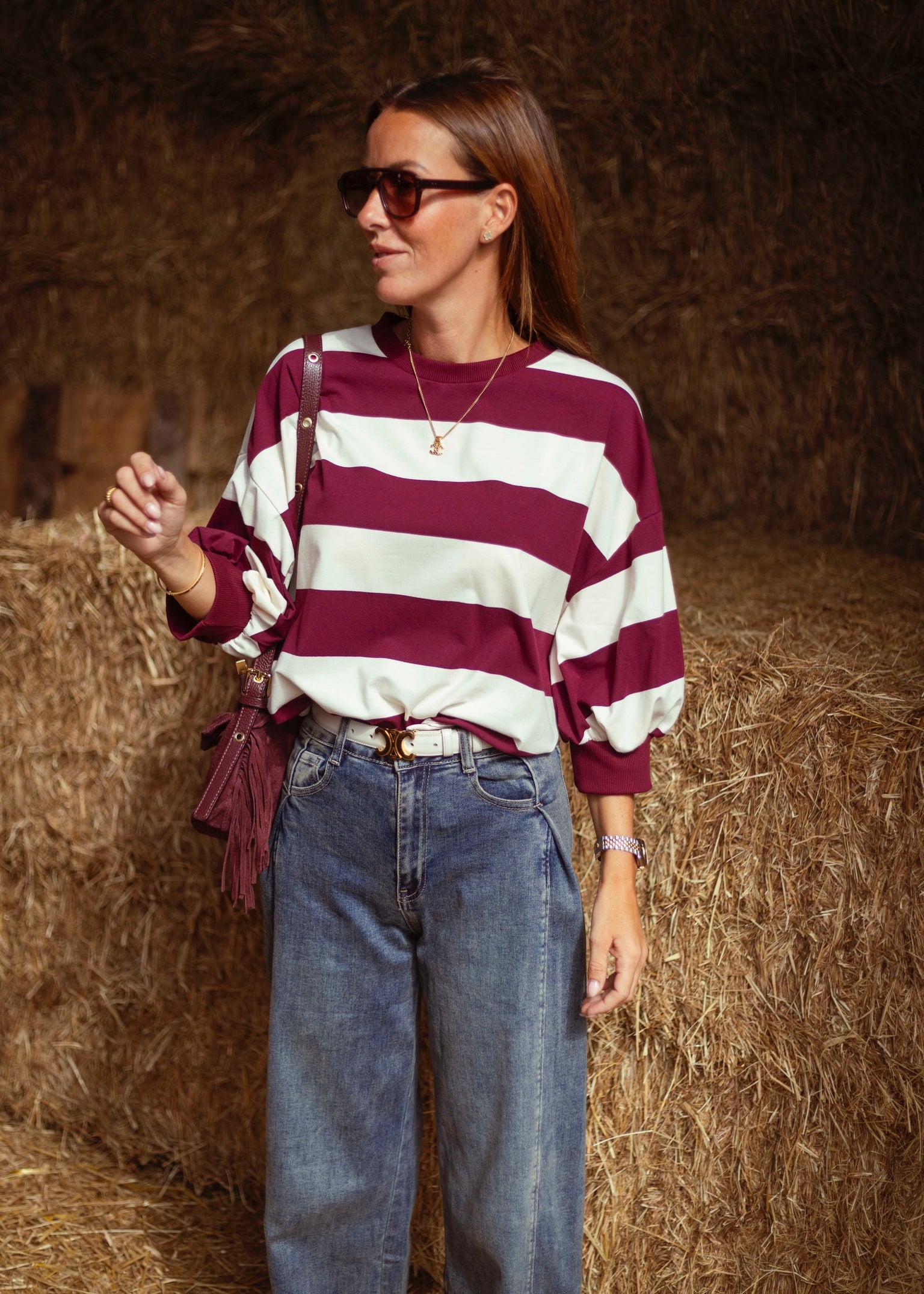 PRE-ORDER MARABETH BURGUNDY STRIPED SWEATER