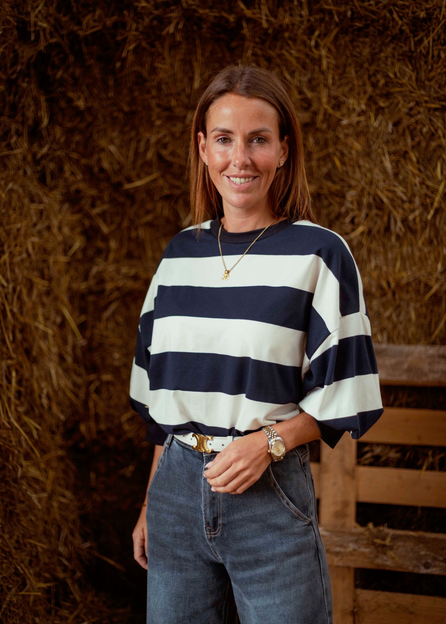 PRE-ORDER MARABETH DARK BLUE STRIPED SWEATER