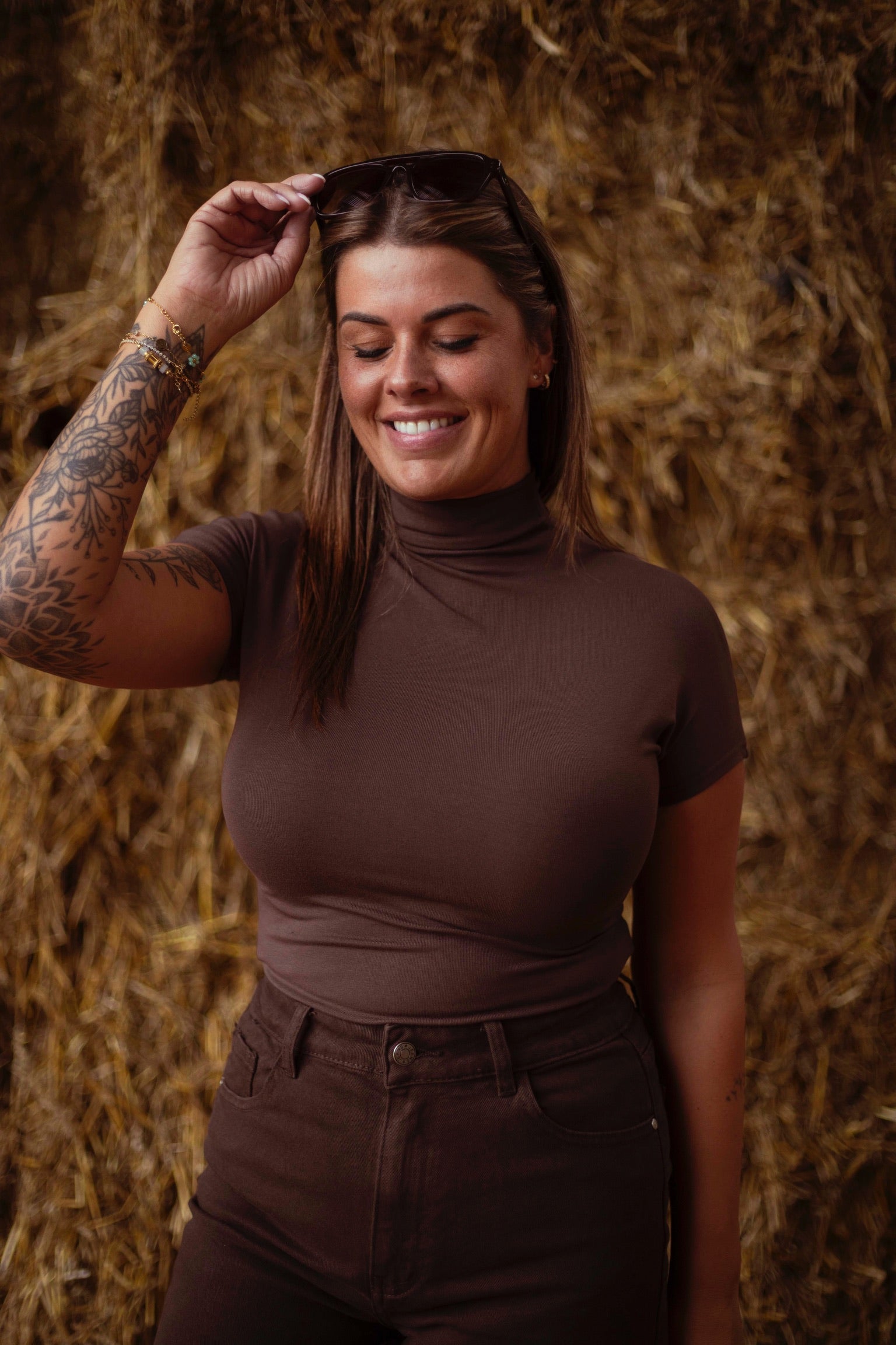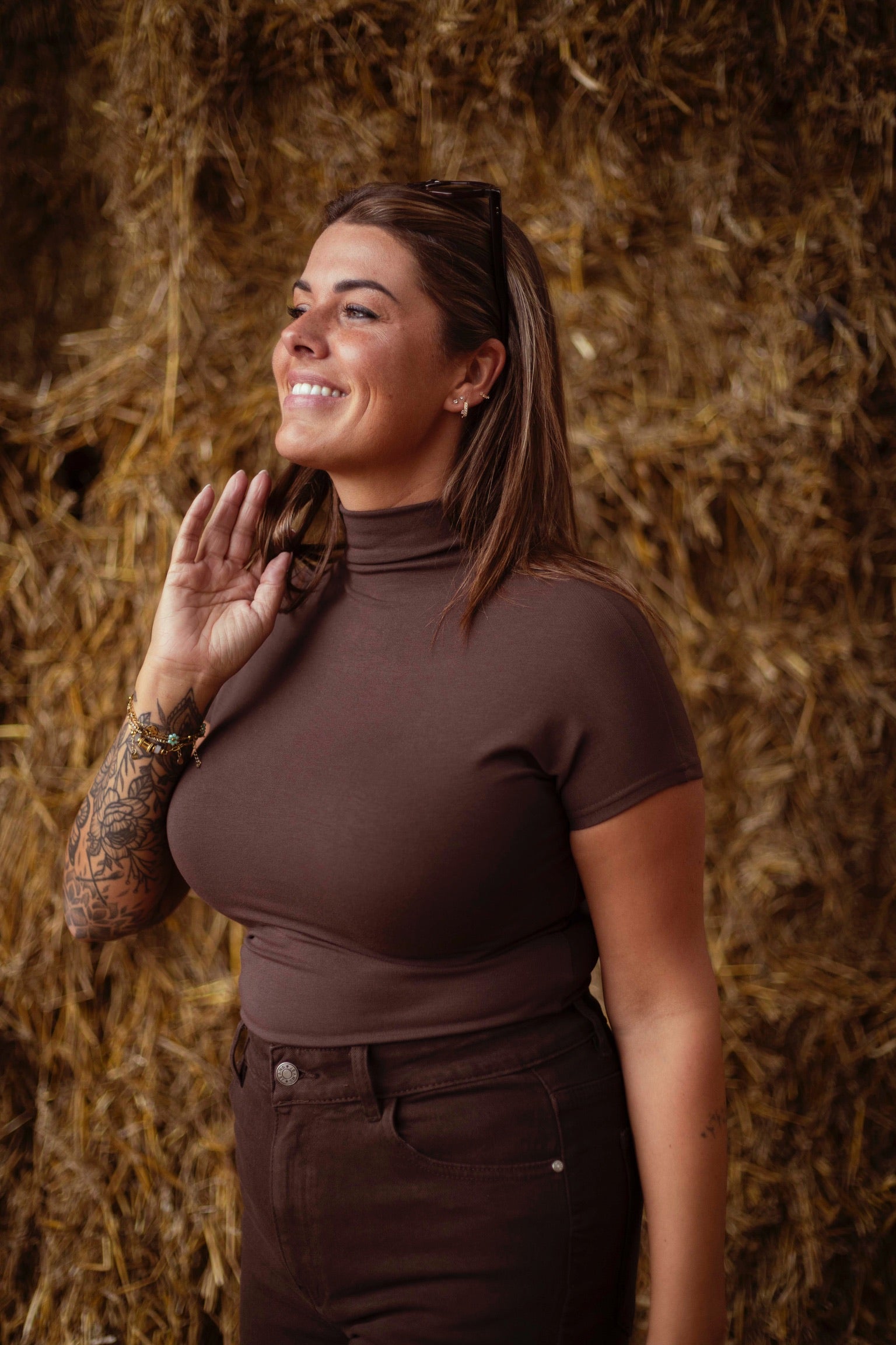ABIGAIL BROWN TURTLENECK SHORTSLEEVE TOP