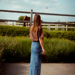 Anoushka is 1m70 groot en draagt maat S/M. Anoushka draagt steeds de kleinste maat.
