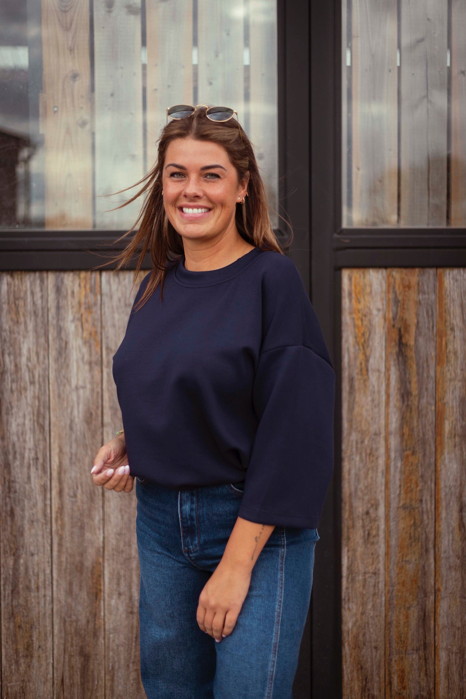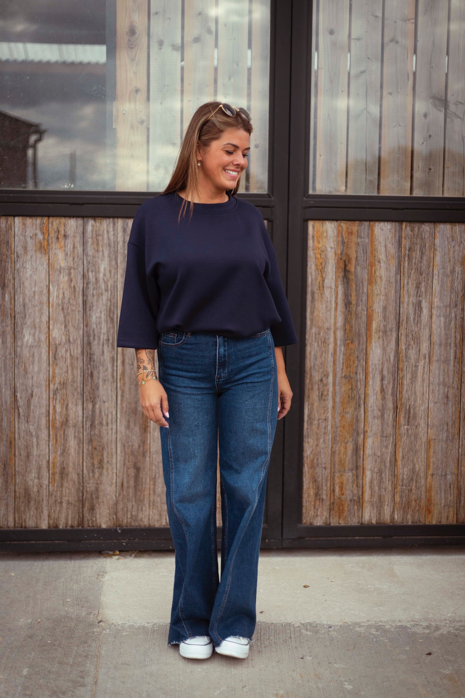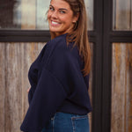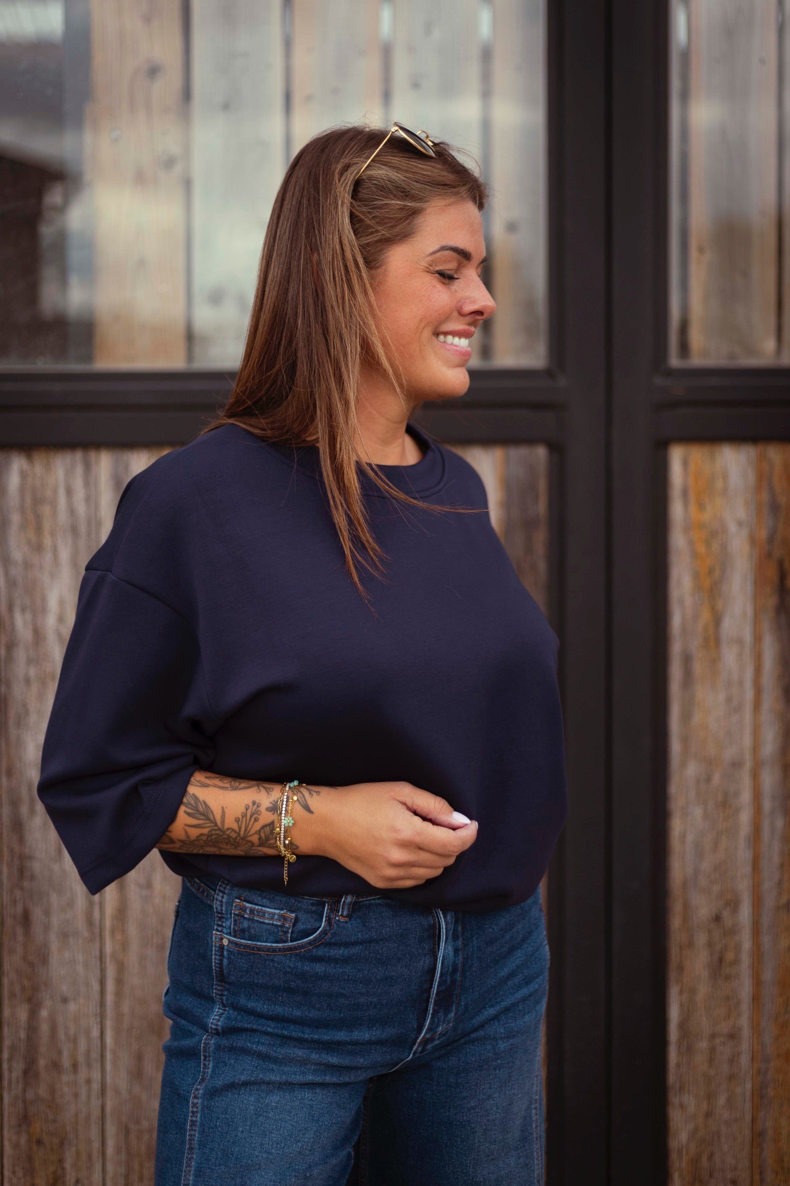 Een heerlijk zacht donkerblauw T-shirt dat comfort en stijl moeiteloos combineert. Dankzij de tijdloze kleur en relaxte pasvorm is het de ideale basis voor laagjes tijdens frisse herfstdagen. Perfect om casual te dragen of te combineren met een blazer voor een nettere look.