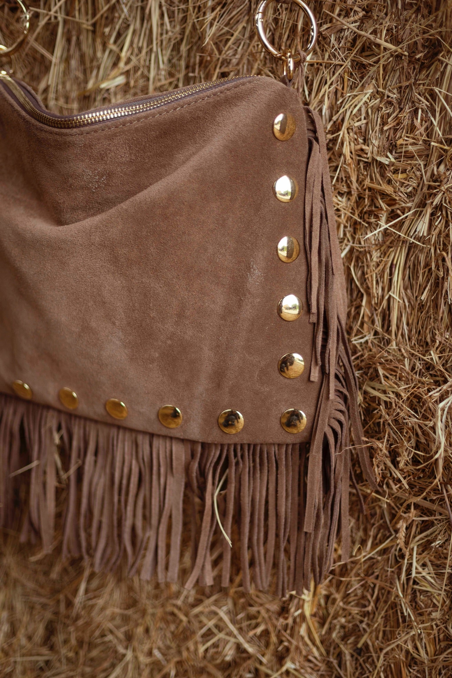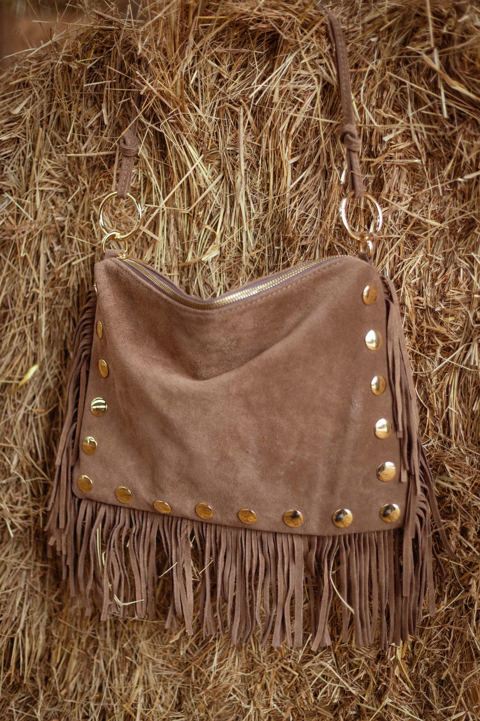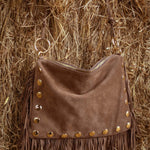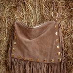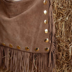 ZILLAH TAUPE FRINGE STUDS BAG