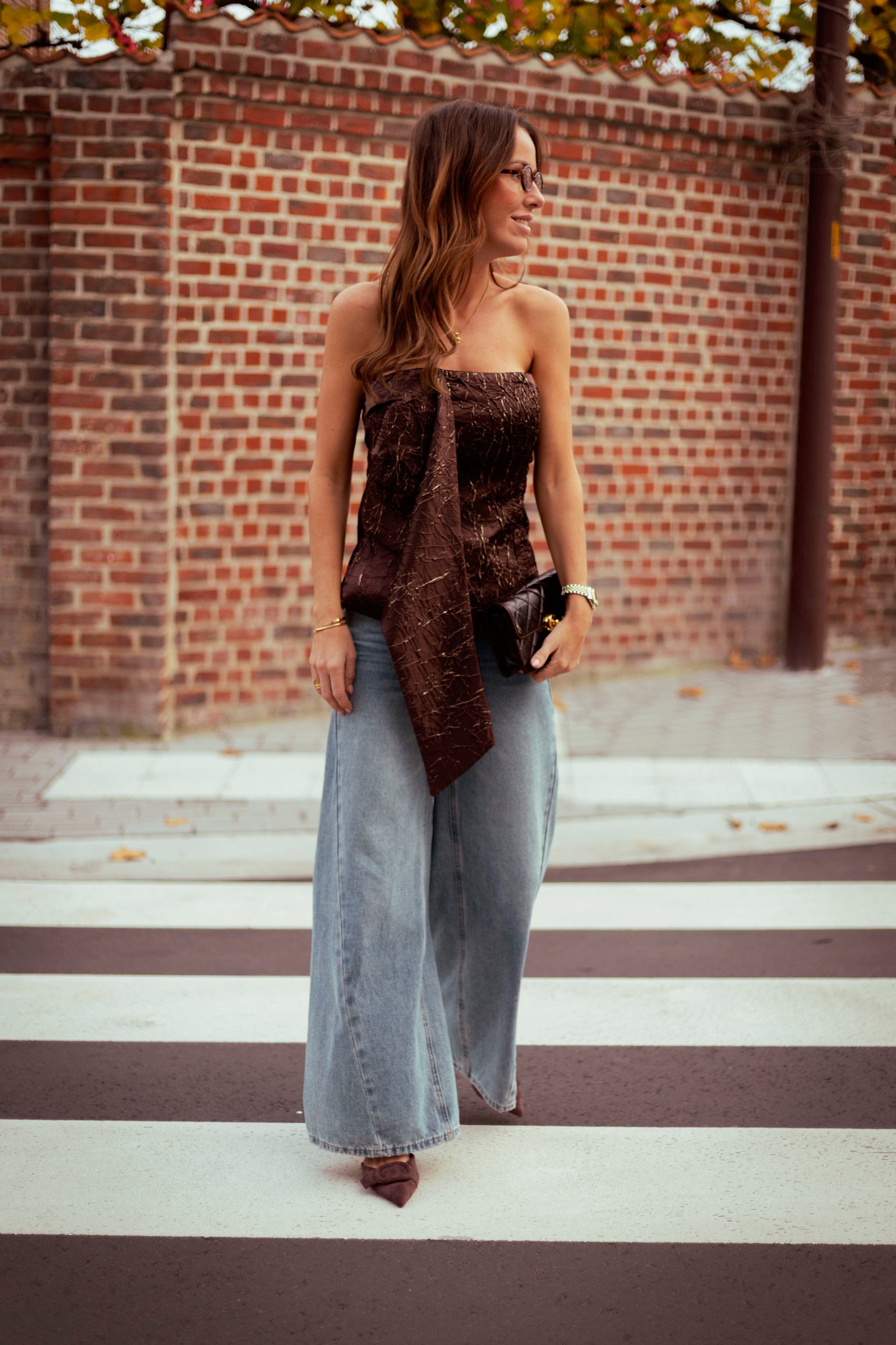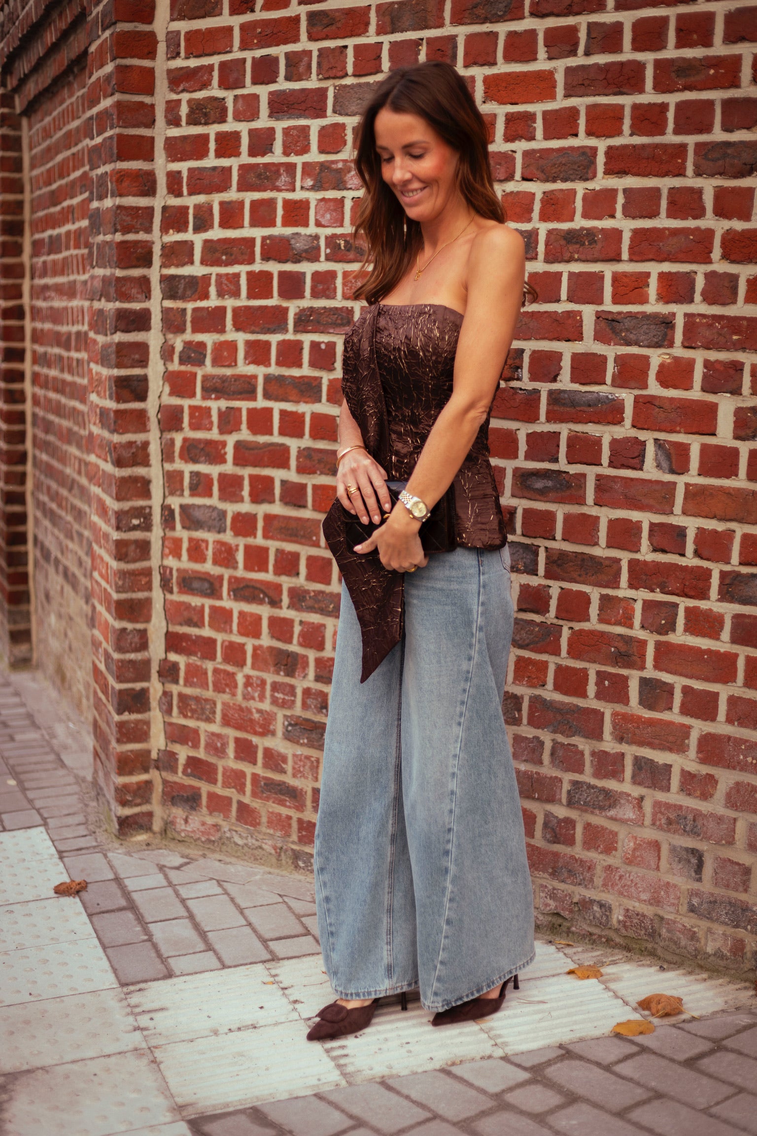 Een warme bruine tint die doet denken aan een late herfstavond in de stad, met gouden accenten die net genoeg glans geven voor een subtiele luxe. Perfect voor onder een blazer tijdens een koffiedate of solo gedragen bij avondlicht, wanneer de stad langzaam goud kleurt.