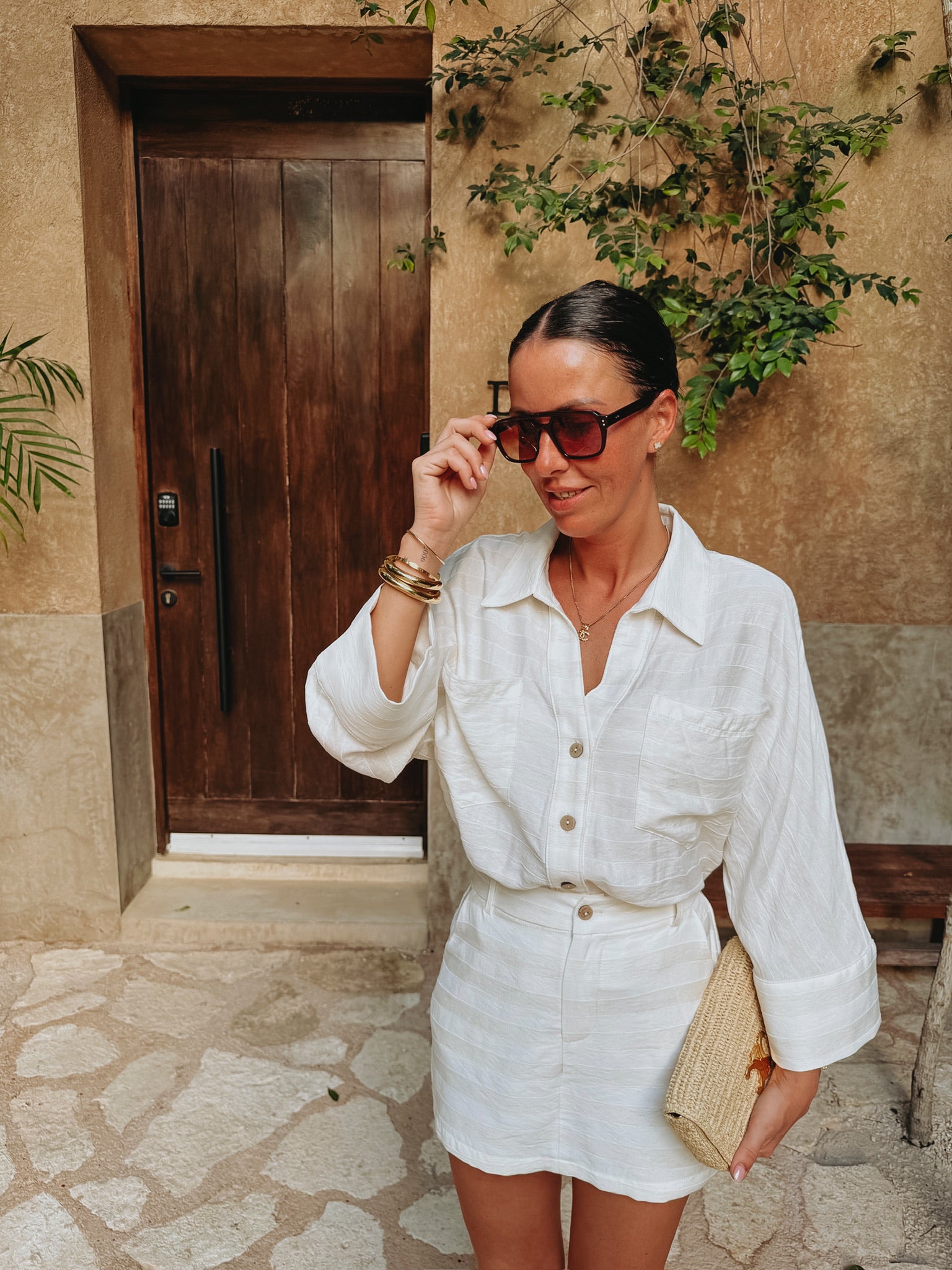 ANDALE ECRU STRIPED SKORT