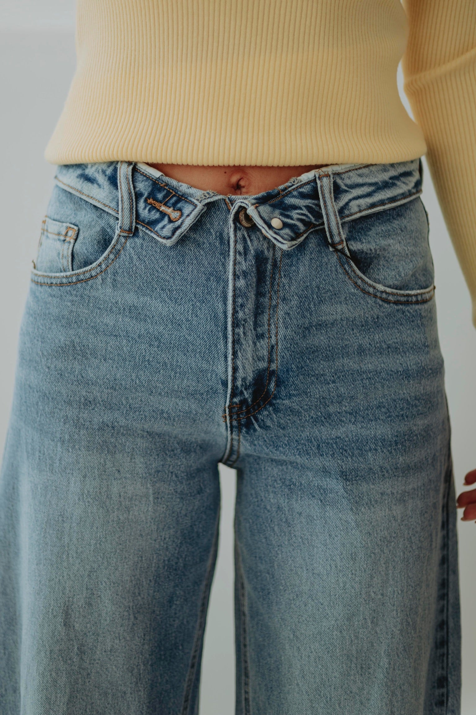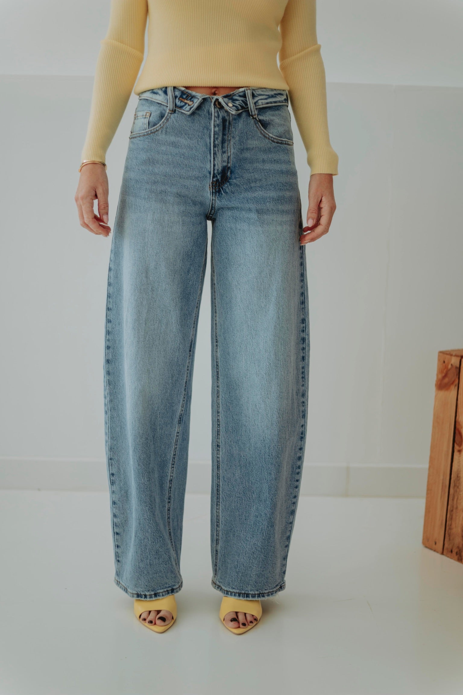 Deze jeans valt soepel en losjes om het lichaam en krijgt een speelse twist door de bijzondere omslag aan de taille. De frisse blauwe wassing geeft een luchtige lentesfeer en laat zich makkelijk combineren. Een comfortabel statement piece met nét dat beetje extra.