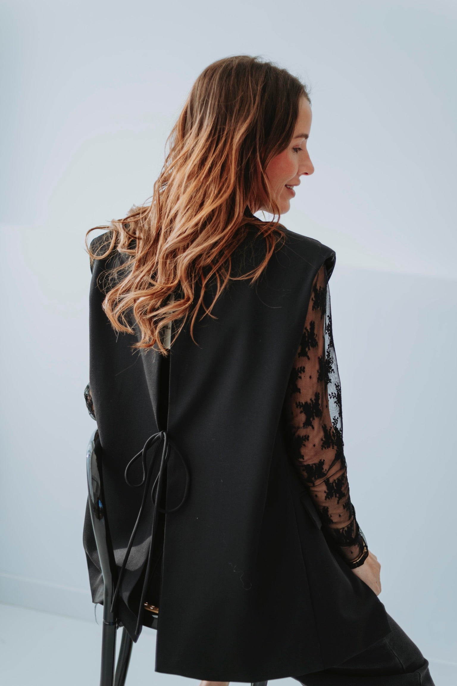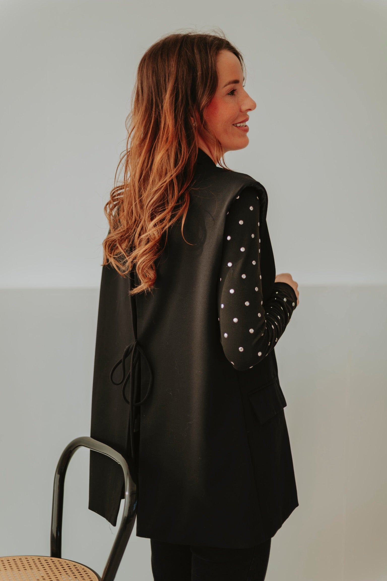 Een mouwloze blazer in tijdloos zwart die elke outfit meteen een moderne uitstraling geeft. Licht en stijlvol, perfect om te dragen over een top of blouse tijdens lentedagen. Chic, veelzijdig en ideaal voor een speelse gelaagde look.