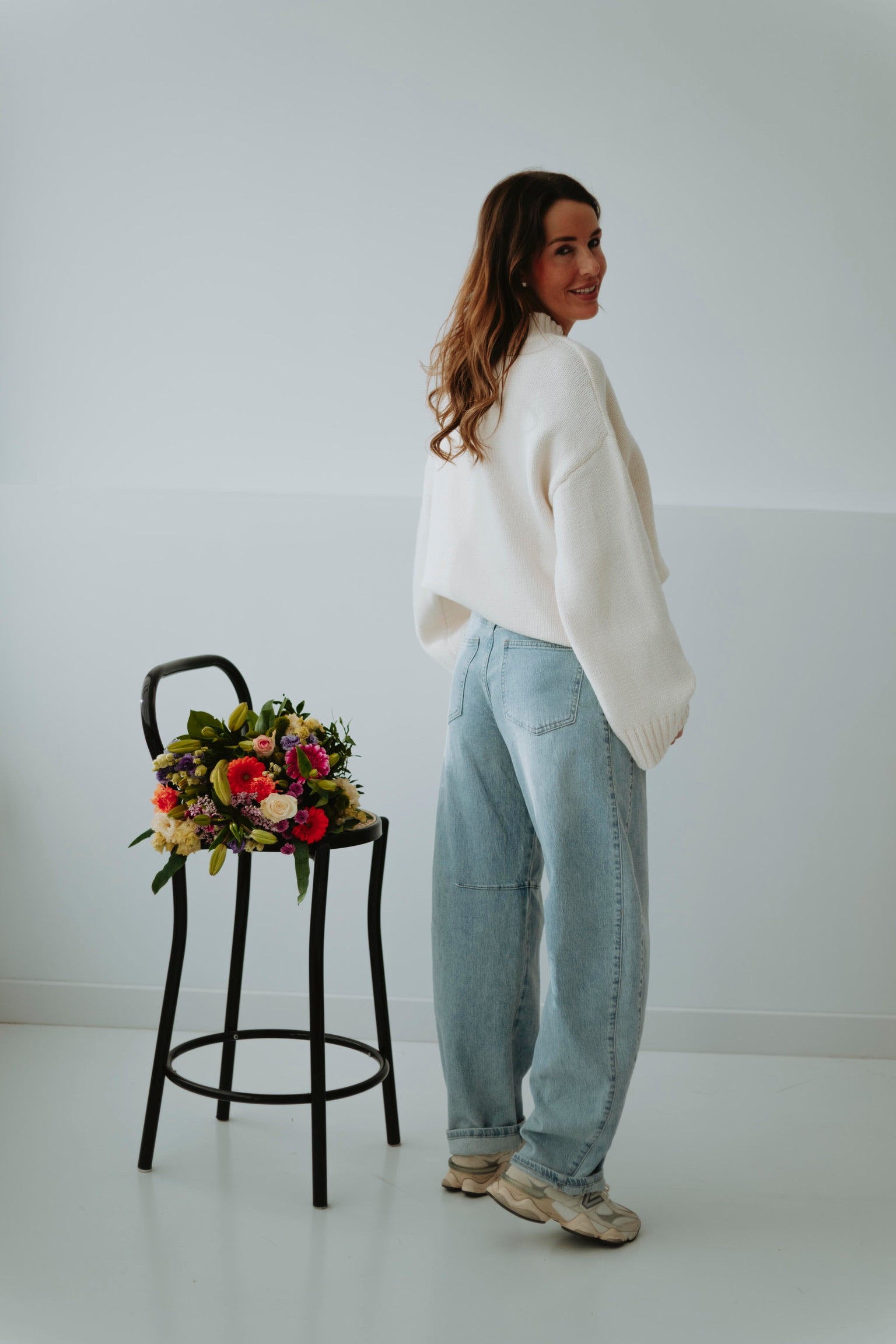 Een zachte knit die meteen aanvoelt als je nieuwe favoriete trui. Comfortabel en makkelijk te combineren, perfect voor frisse lentedagen. Een tijdloos item waar je steeds opnieuw naar grijpt.