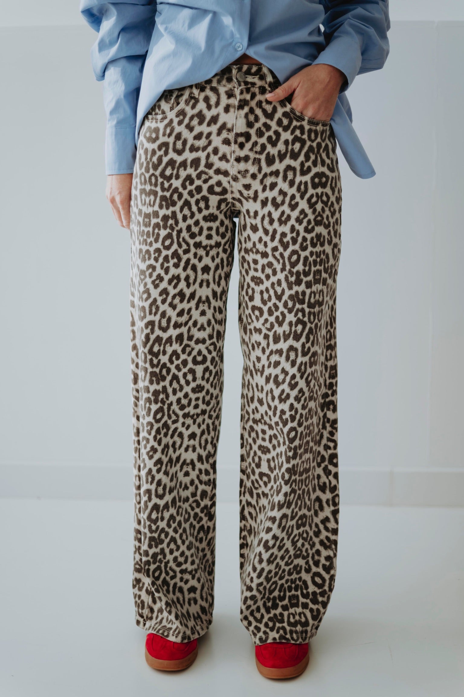 Een stoere jeans met een wijd silhouet en een speelse leopardprint voor een opvallende lentelook. Comfortabel en luchtig, ideaal om te combineren met een basic top of een zachte trui. Trendy, speels en perfect om je outfit direct karakter te geven.