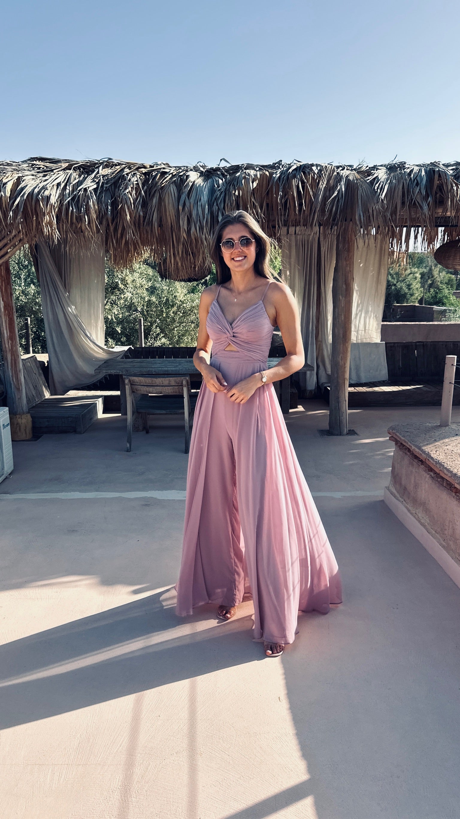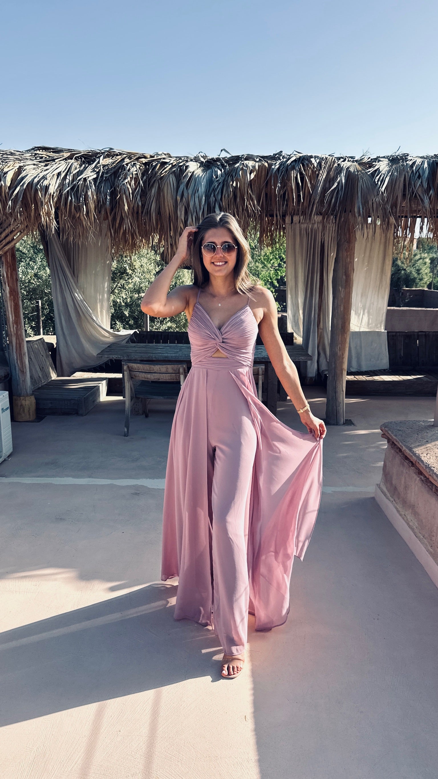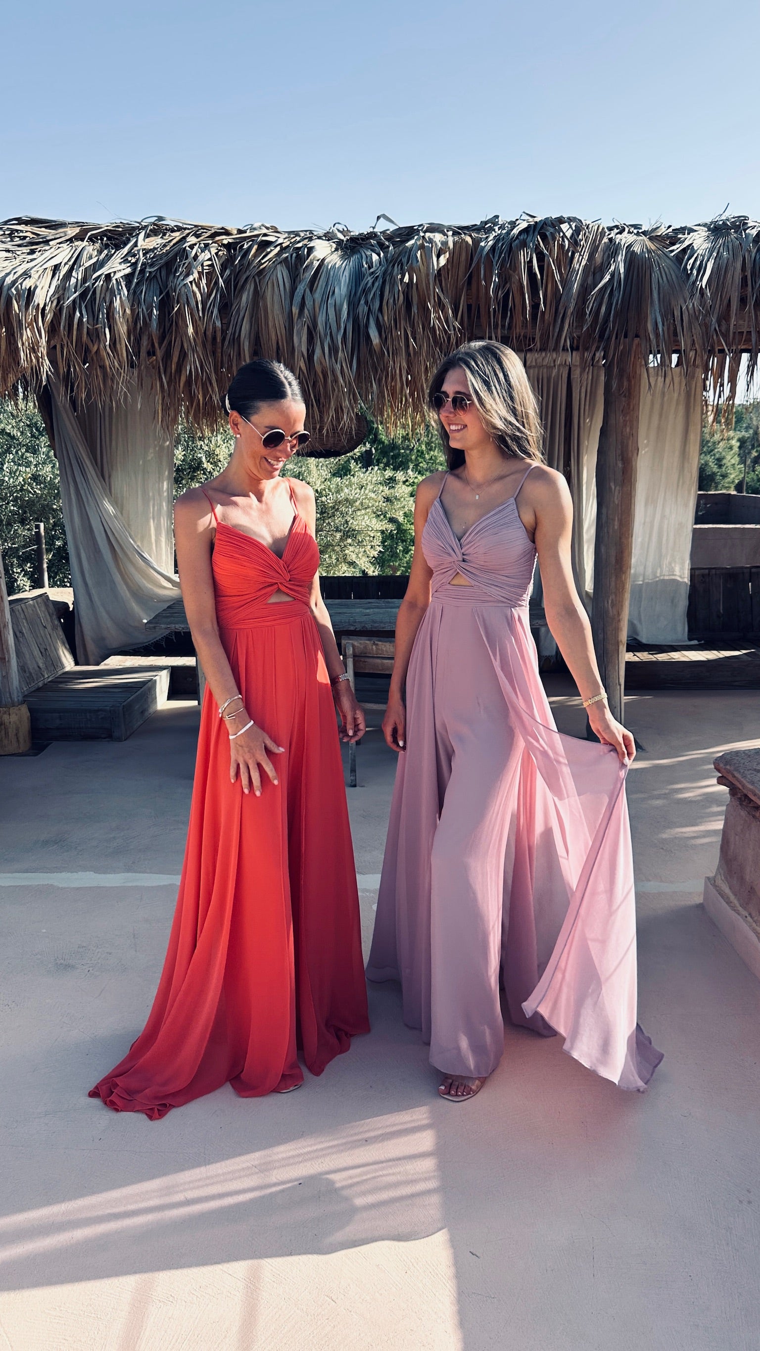 Deze elegante jumpsuit met sleep is dé perfecte keuze als je twijfelt tussen een jurk en een jumpsuit. Feestelijk, stijlvol én verrassend – beschikbaar in verschillende kleuren voor elke mood en gelegenheid.