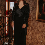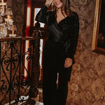 AFTERGLOW BLACK SATIN SEQUIN BLOUSE