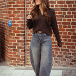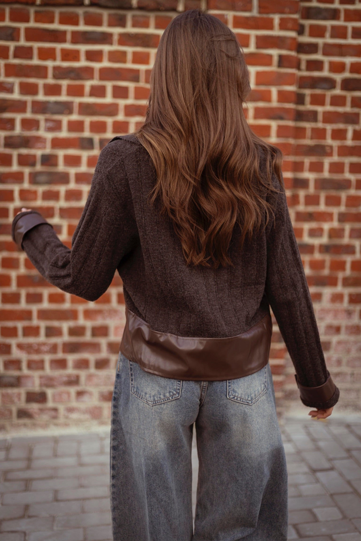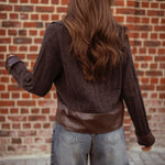De warme bruine tint en het zachte materiaal geven een klassieke herfst-wintersfeer, terwijl de leren details een stoere, moderne touch toevoegen. De comfortabele pasvorm maakt het ideaal voor laagjes op koude dagen. Combineer met jeans of een rok voor een stijlvolle, seizoenproof look.
