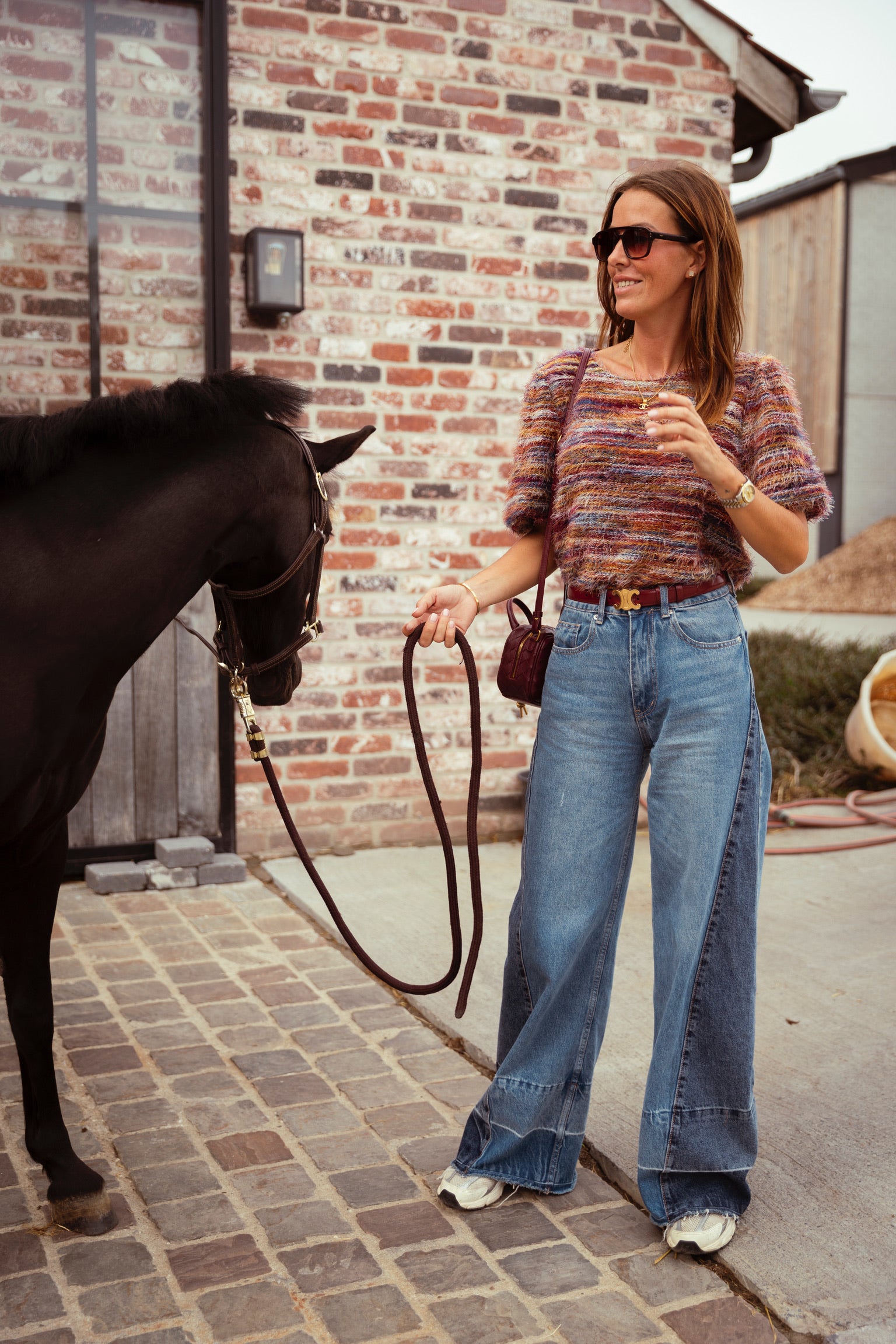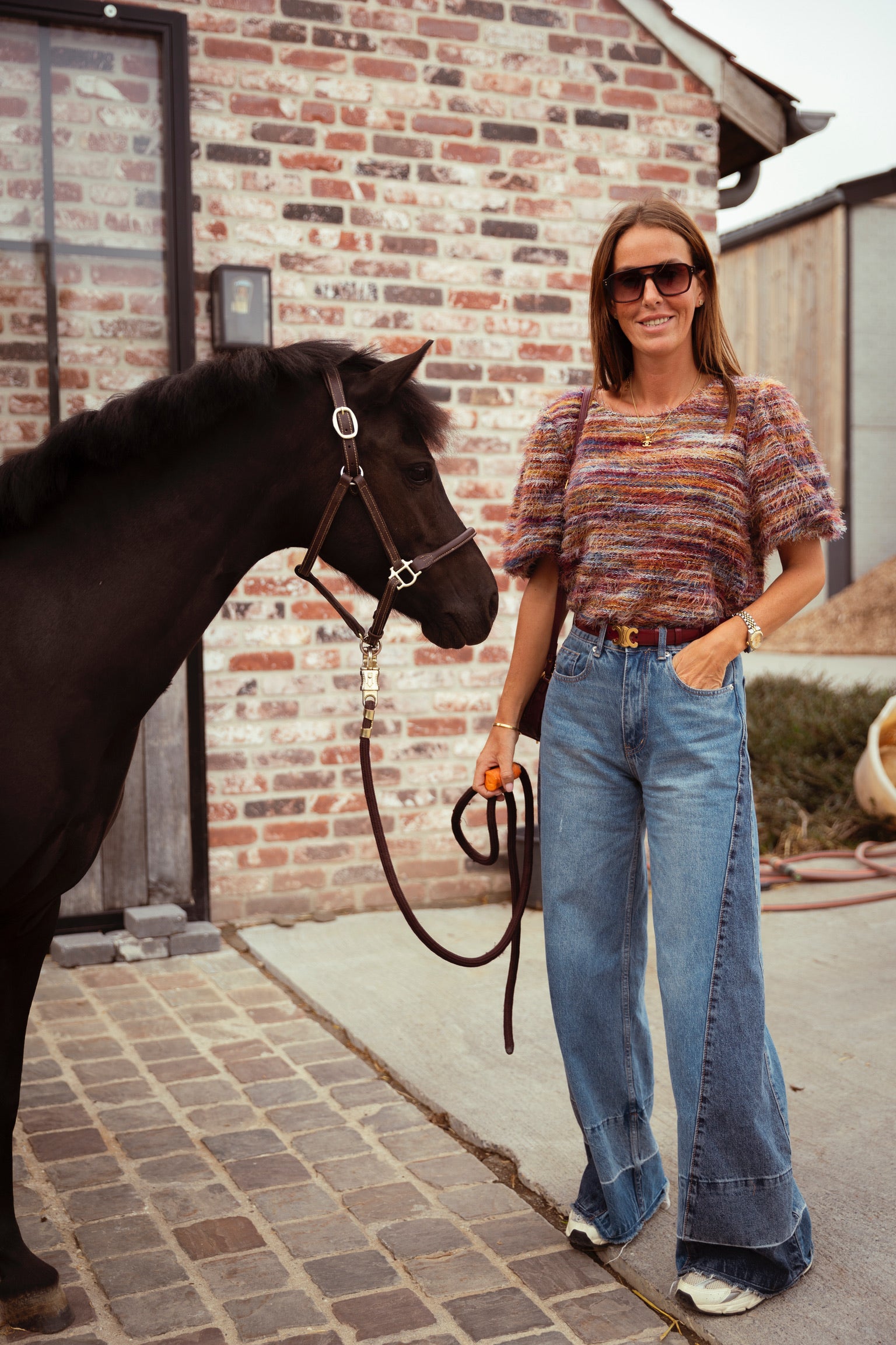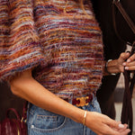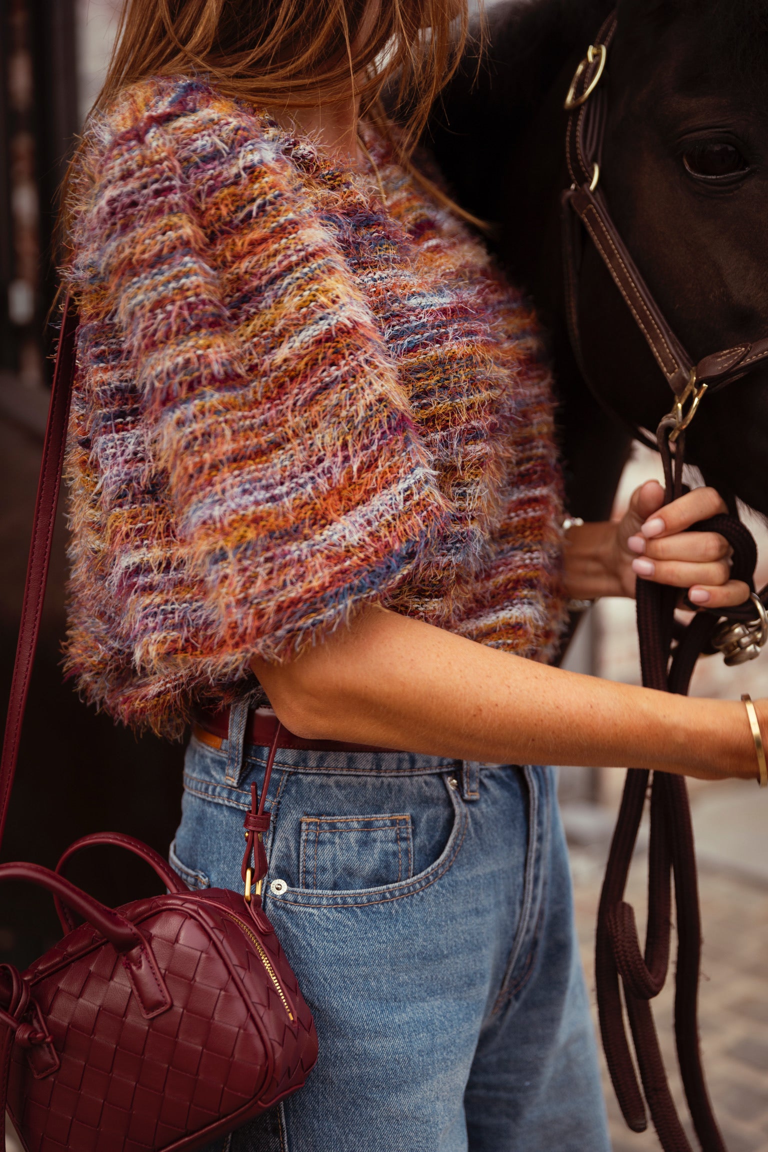 Een speelse blouse met een zachte, pluizige textuur die meteen warmte en comfort uitstraalt. De levendige kleurenmix brengt een vrolijke noot in de herfst, ideaal om een basic jeans of rok op te vrolijken. Perfect voor wie de herfstdagen graag met een knipoog en stijl tegemoet gaat.